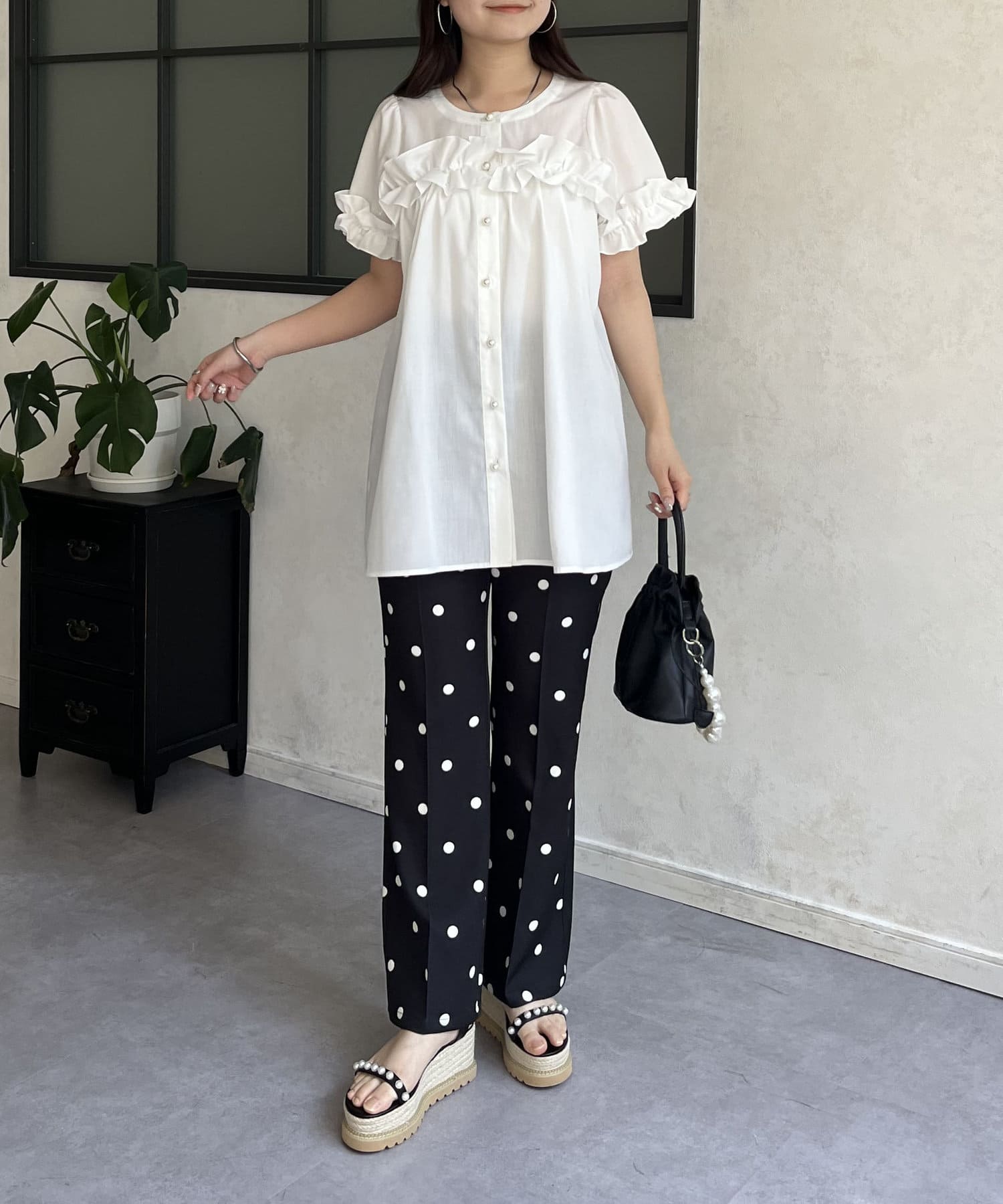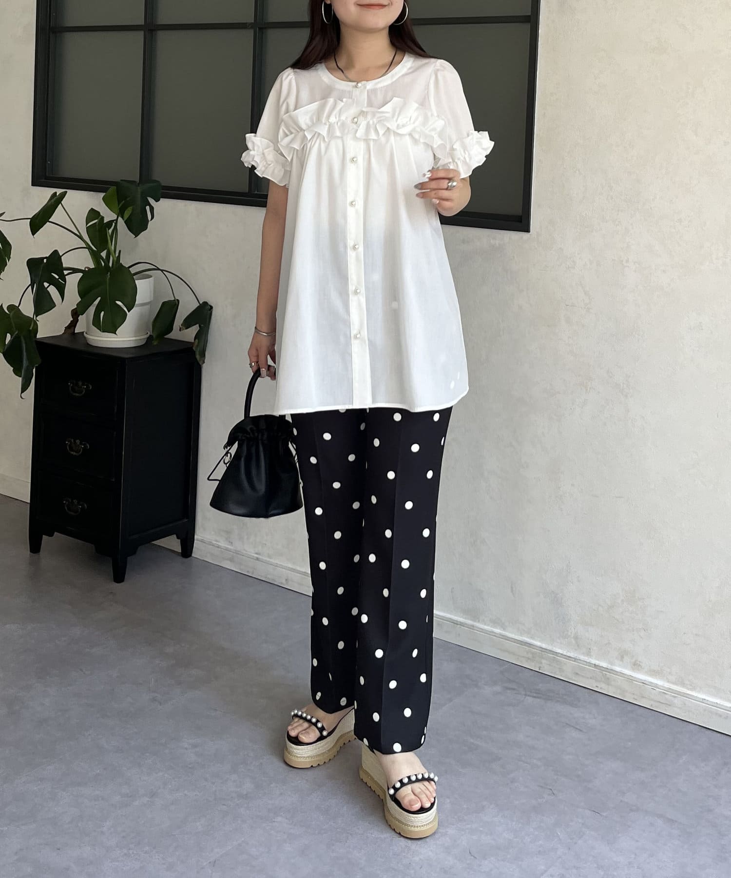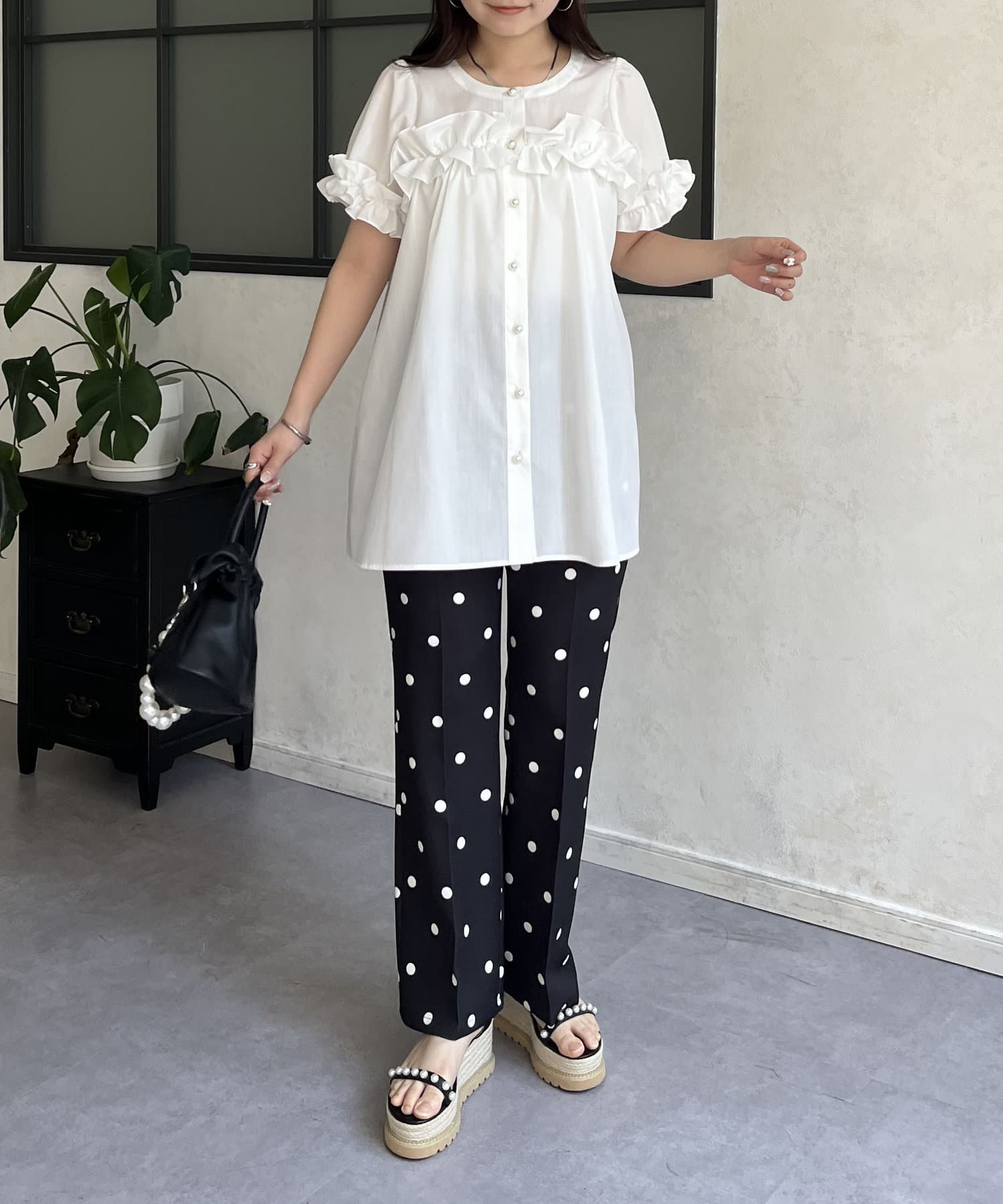 ●胸元と袖口のフリルがポイント