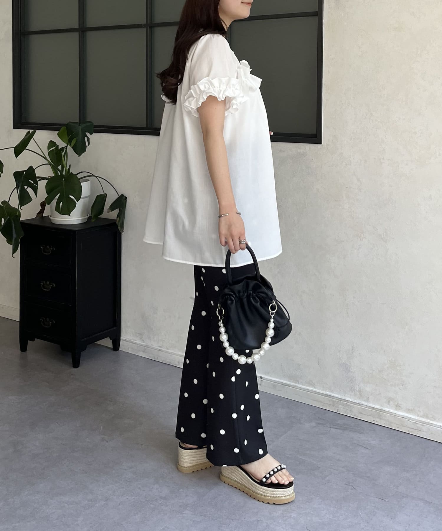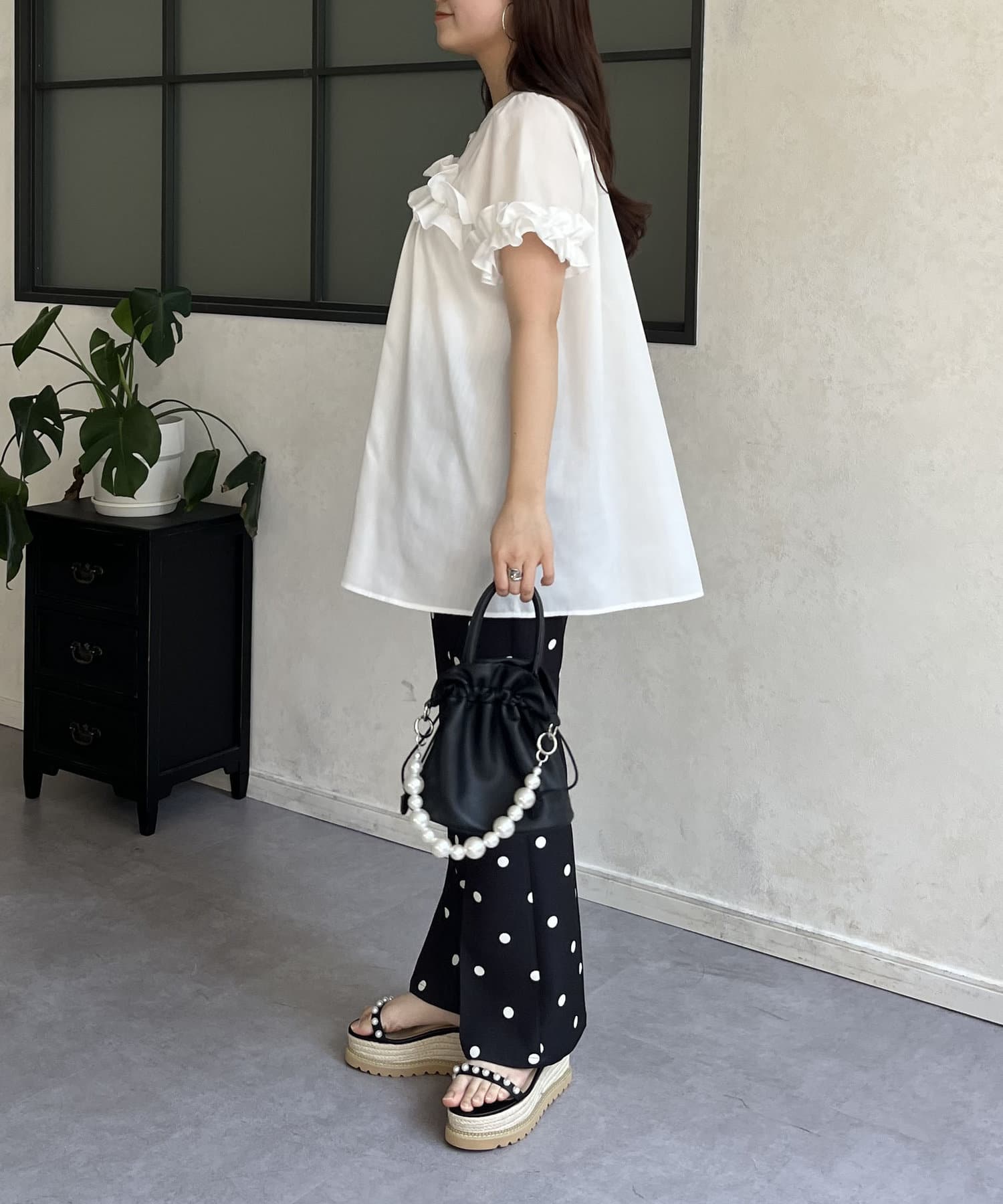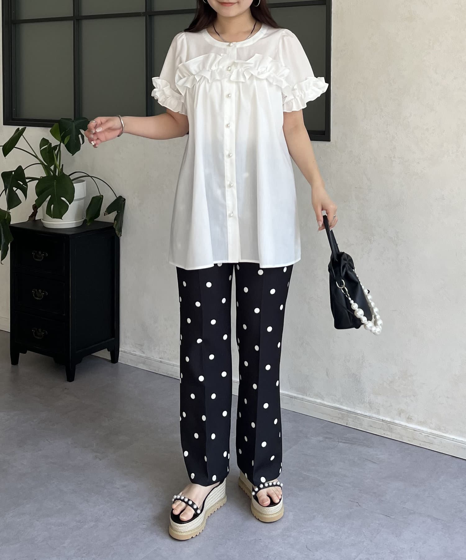 ●胸元と袖口のフリルがポイント