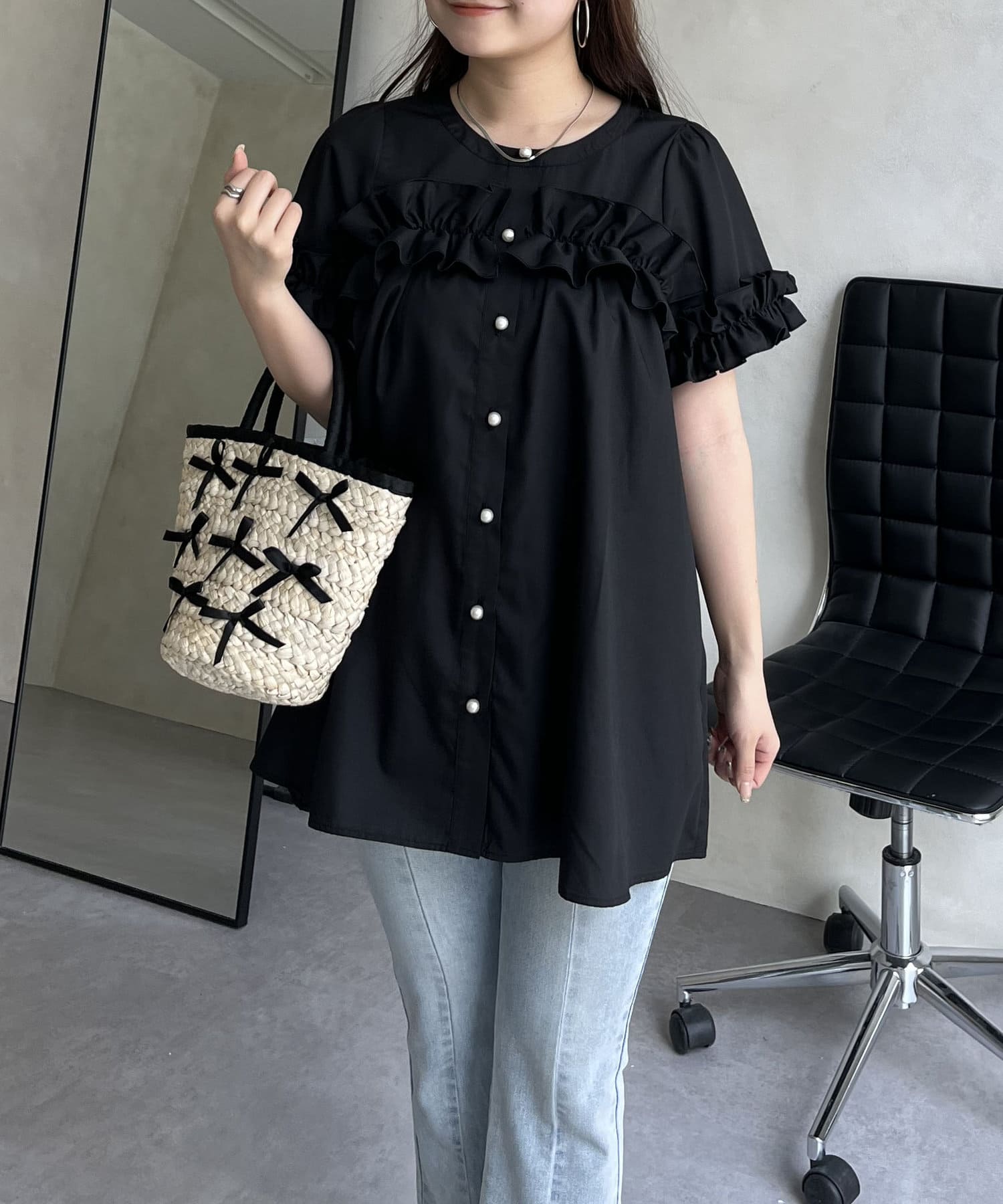 フリル/ブラウス/体型カバー/きれいめ/大人可愛い