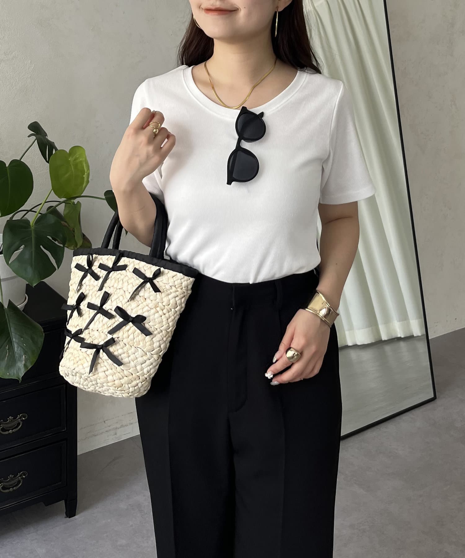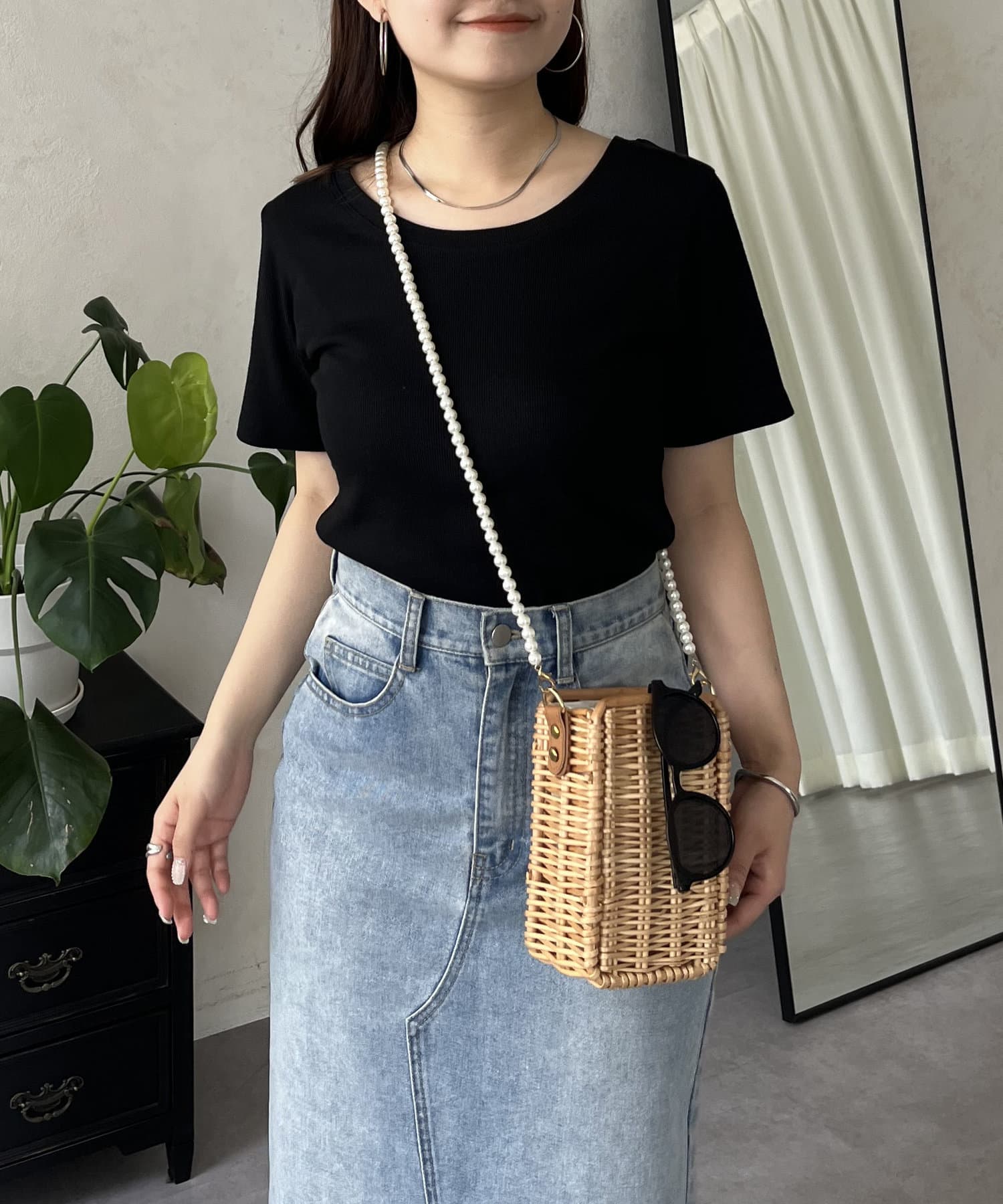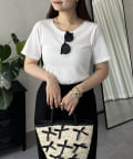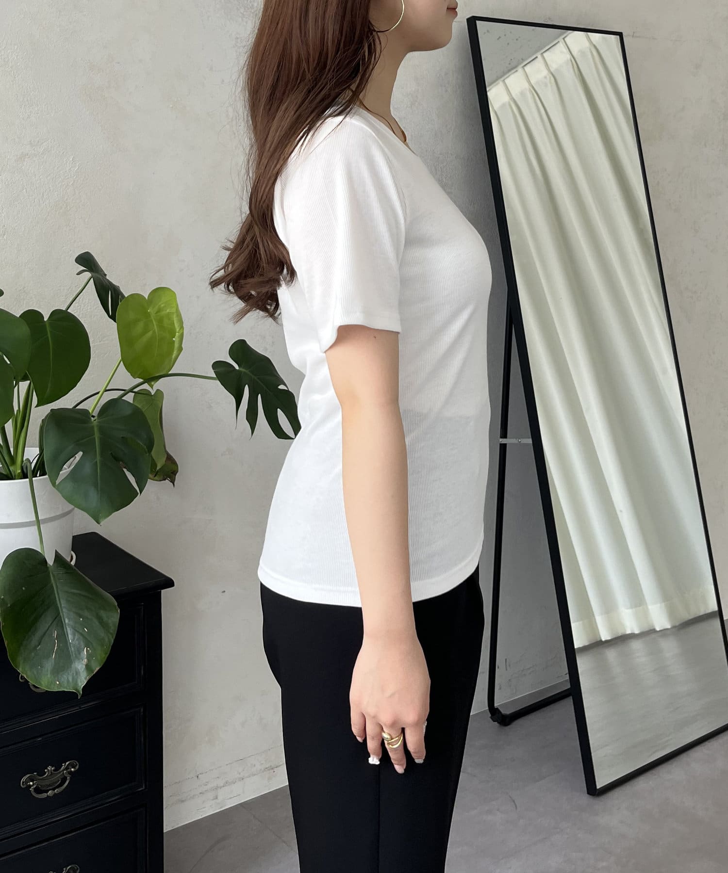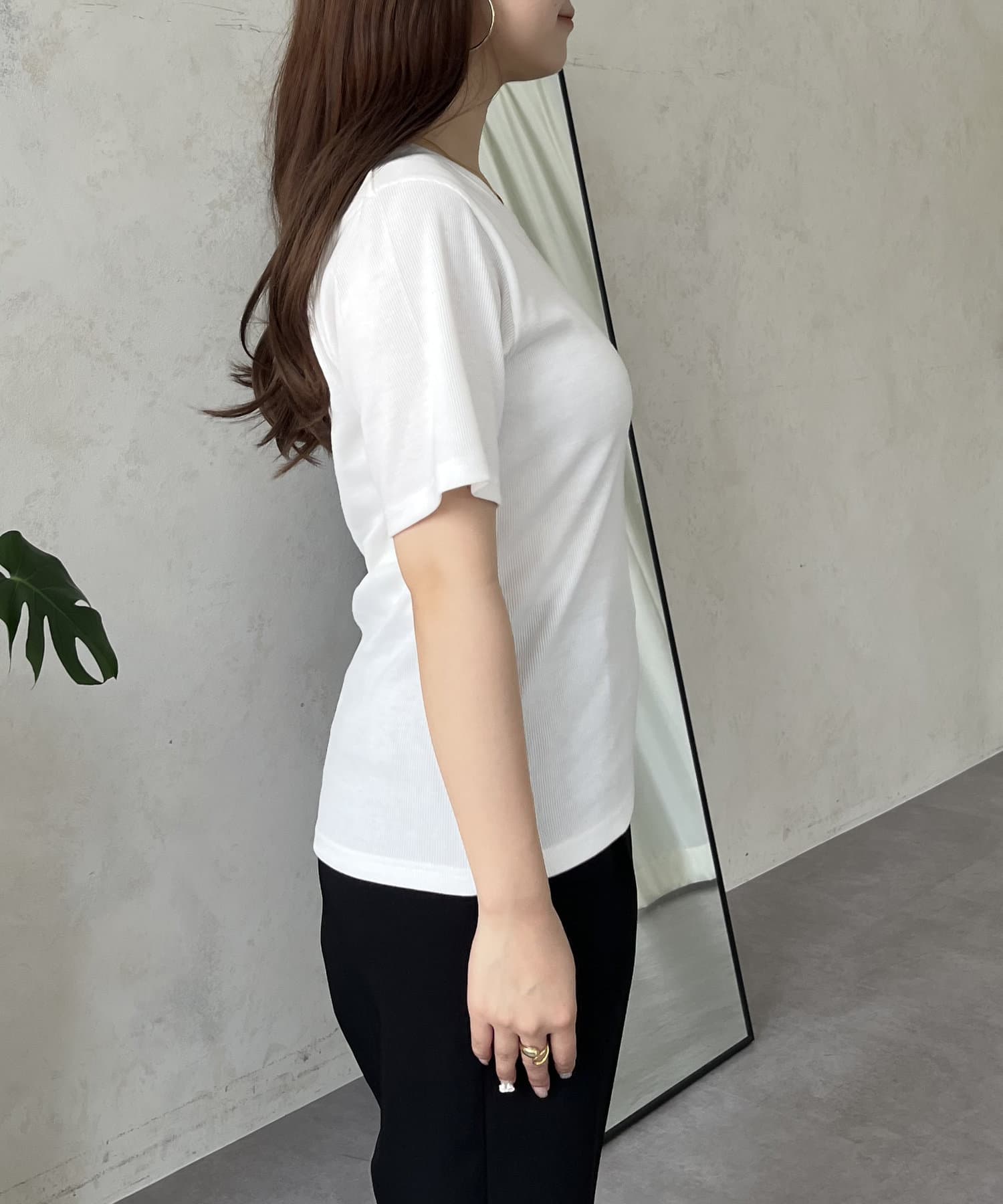 リブTシャツ/シンプル/着回し/夏シャツ