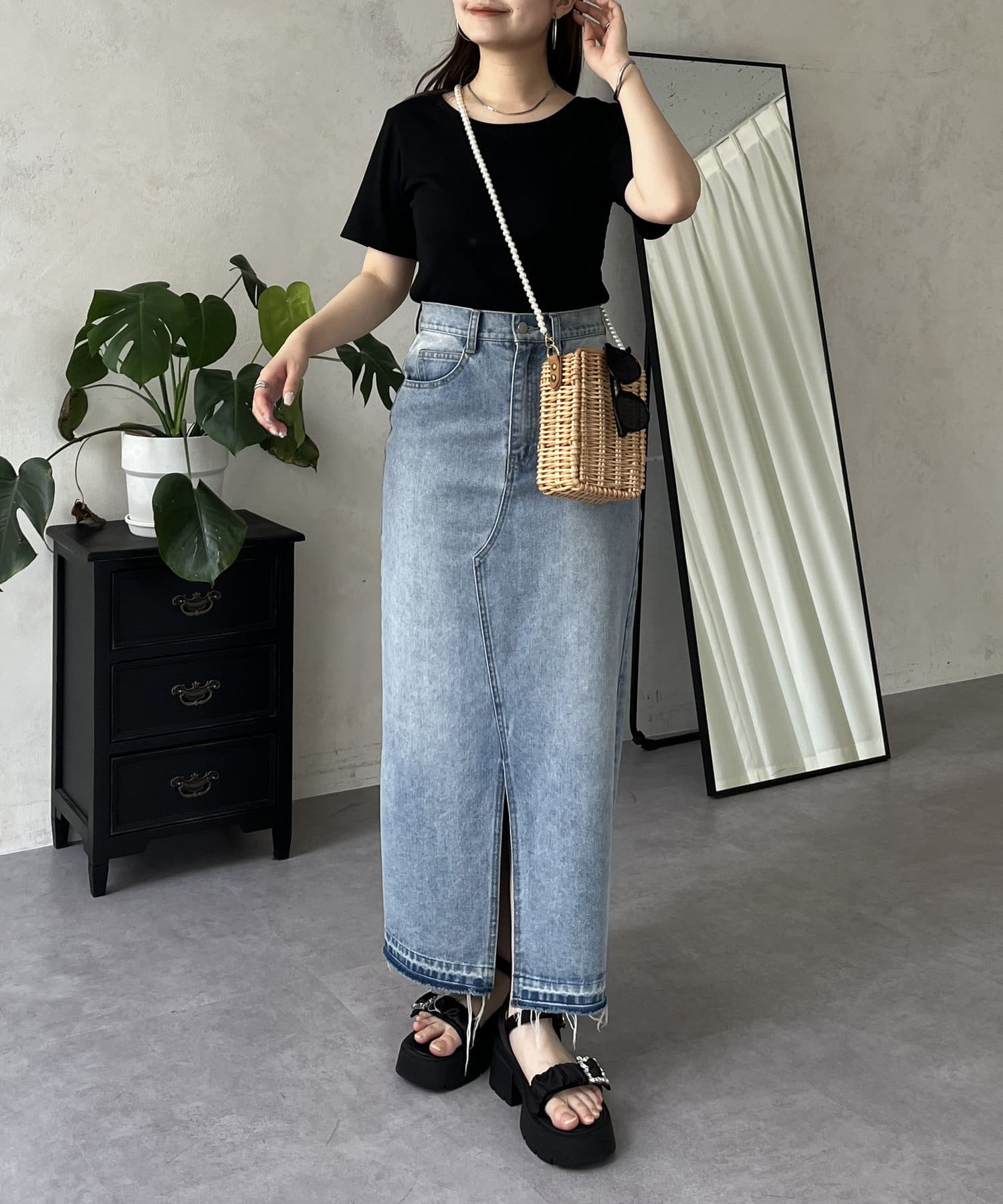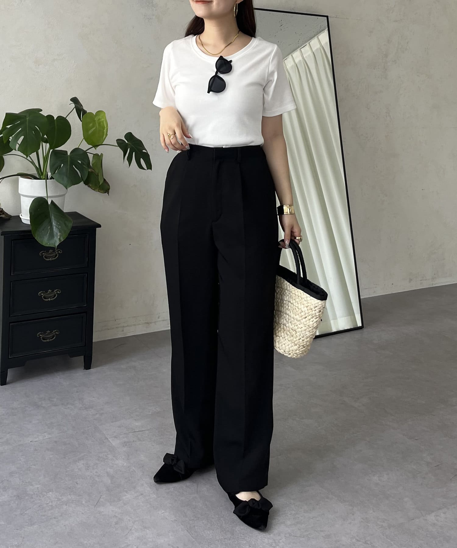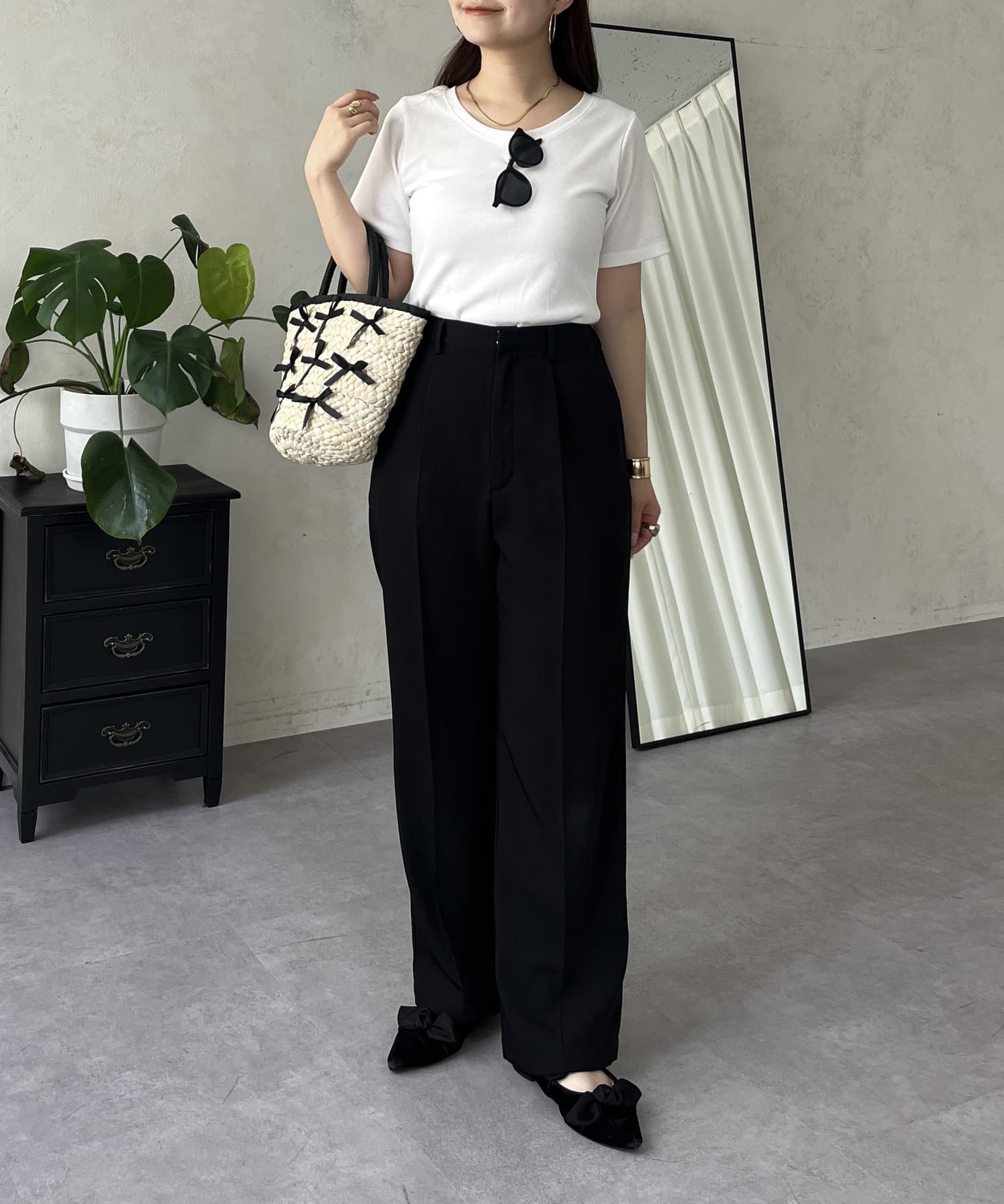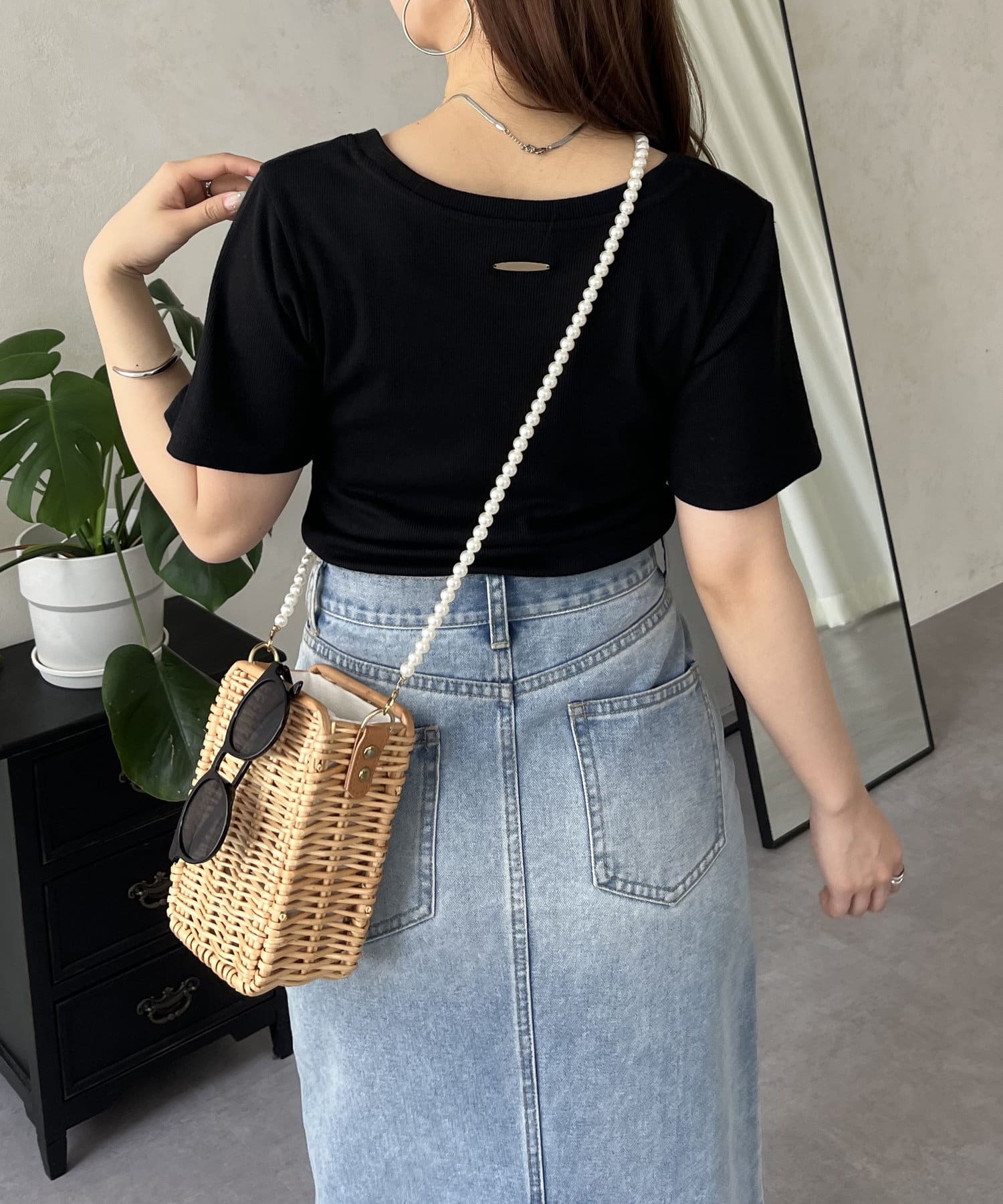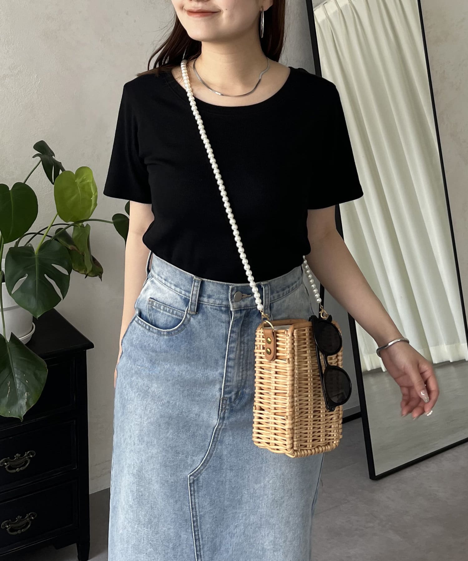 リブTシャツ/シンプル/着回し/夏シャツ