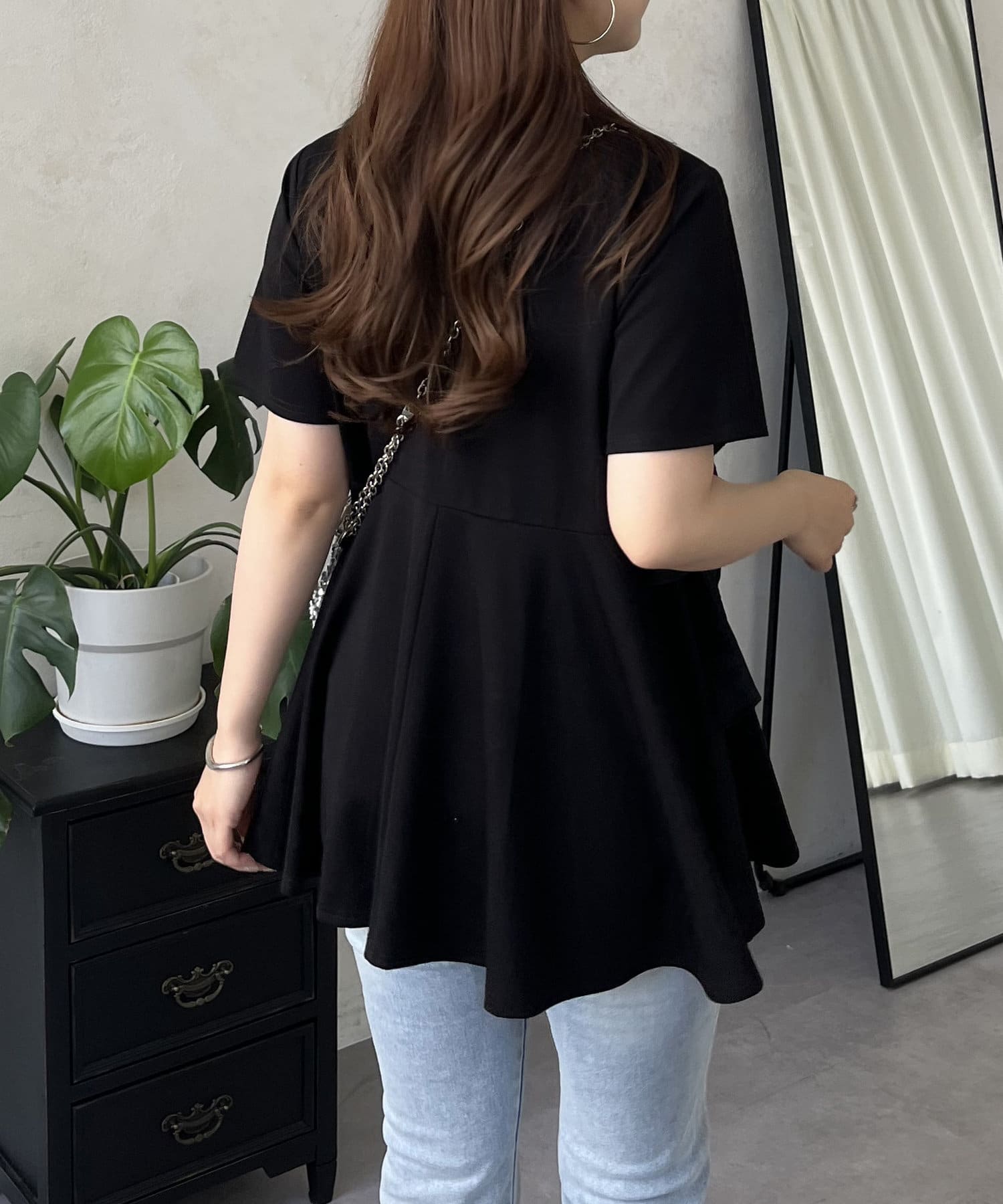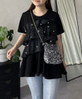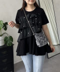 パールフリルペプラムTシャツ