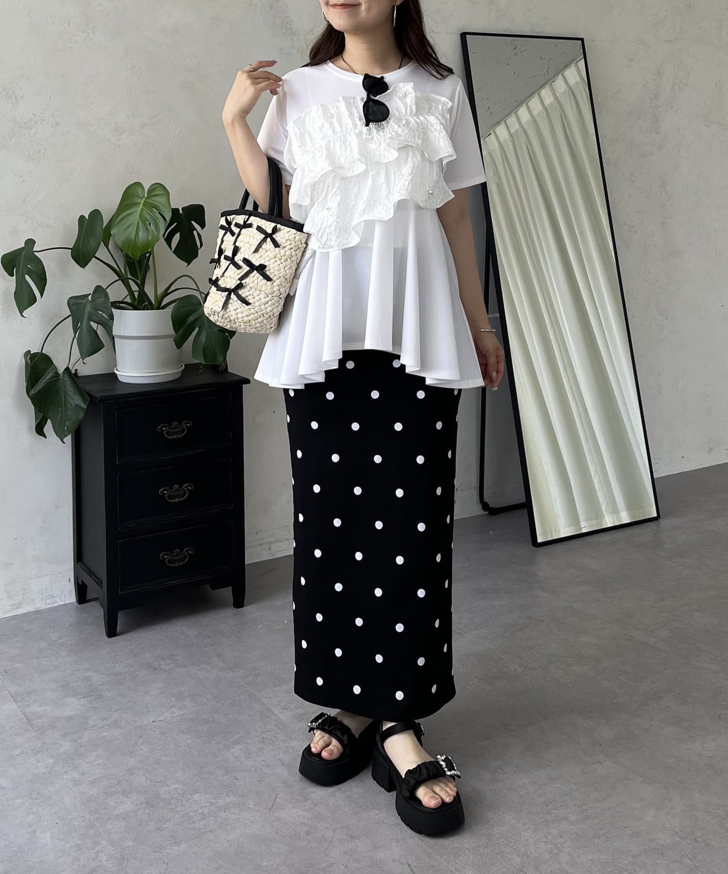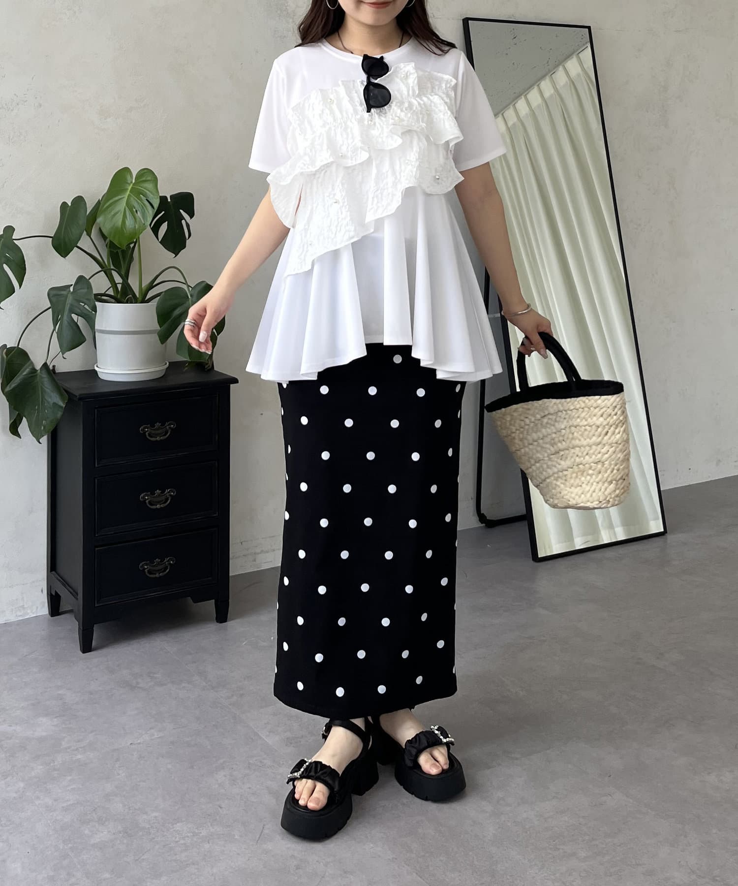 体型カバー/ペプラム/パール/フリル/こなれ感