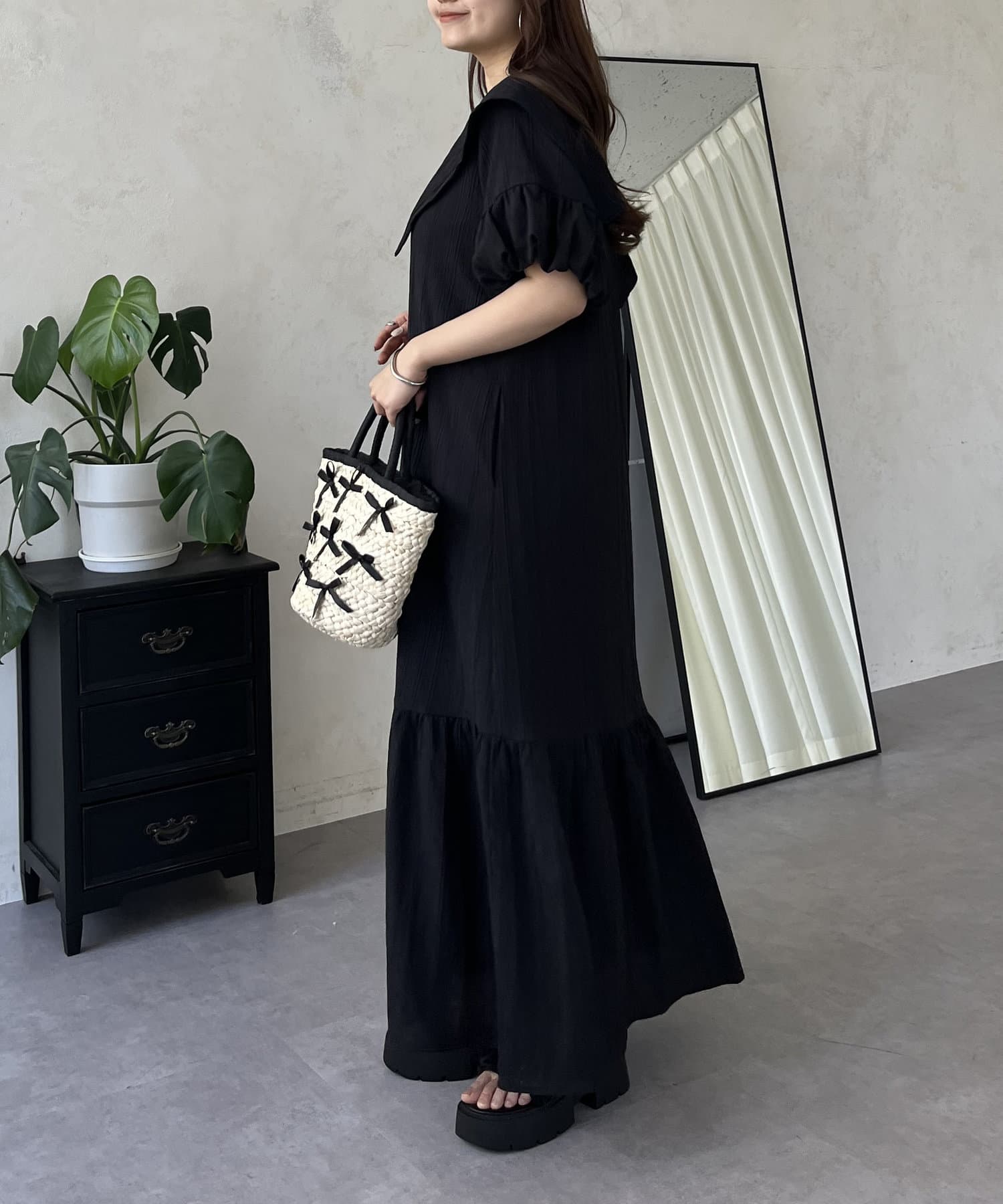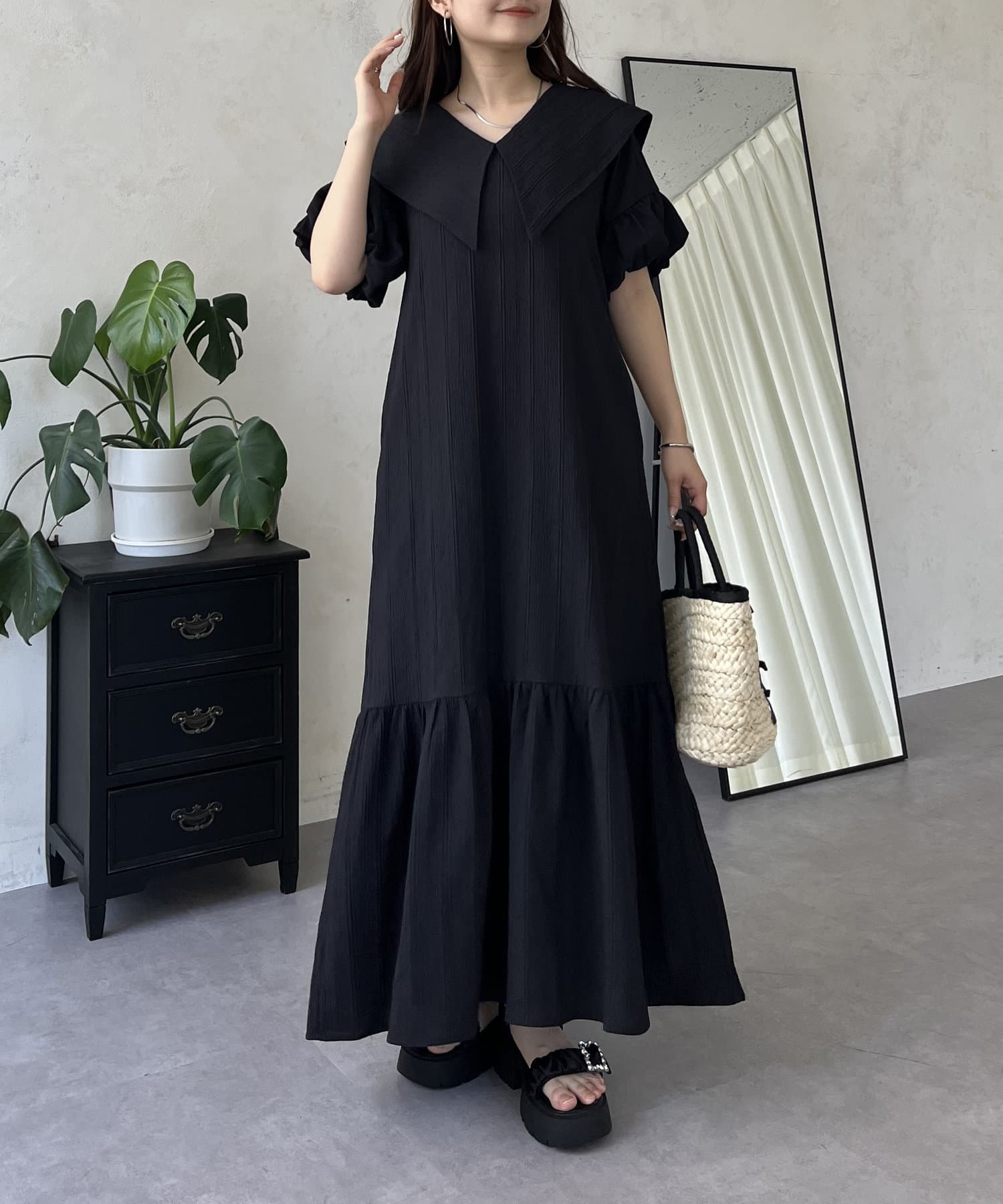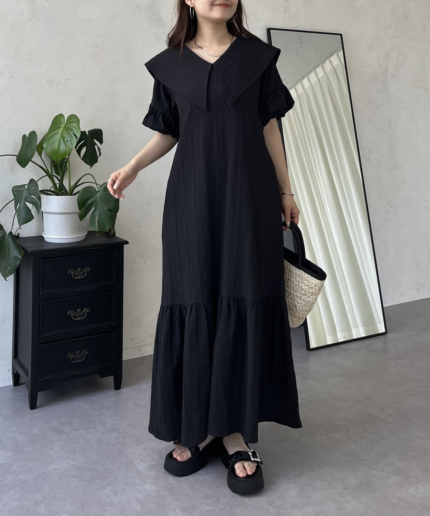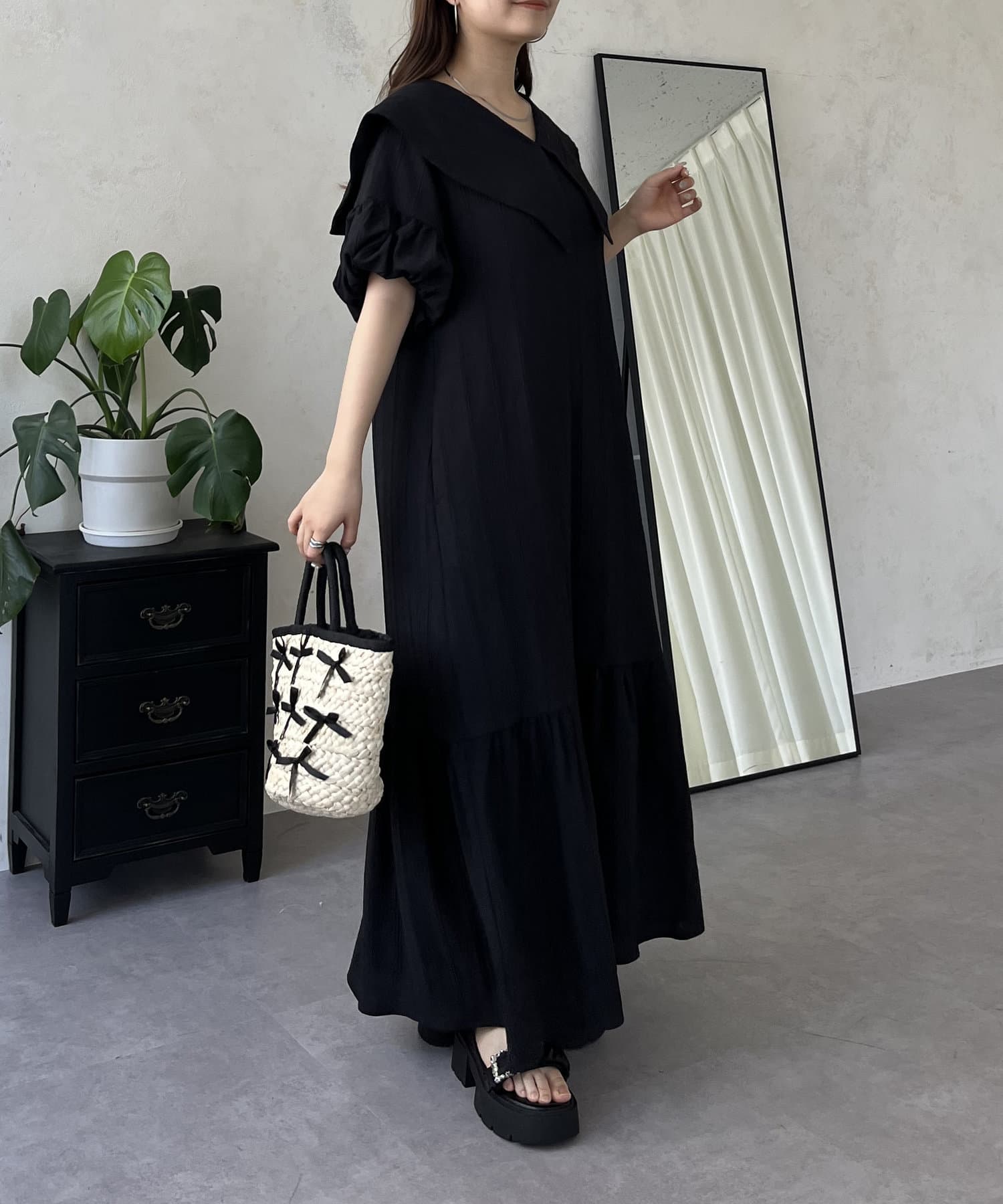 バルーンスリーブセーラーカラーワンピース