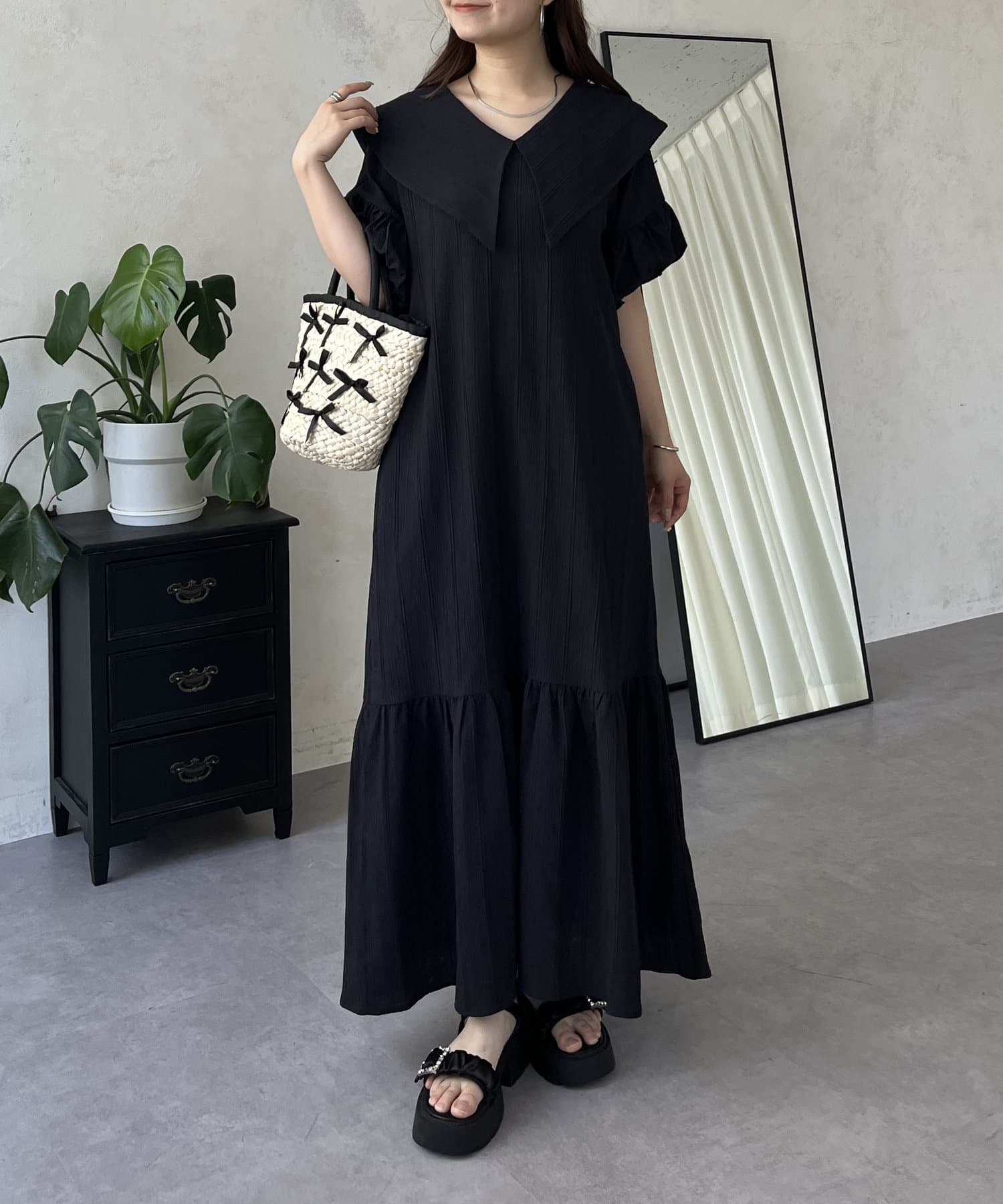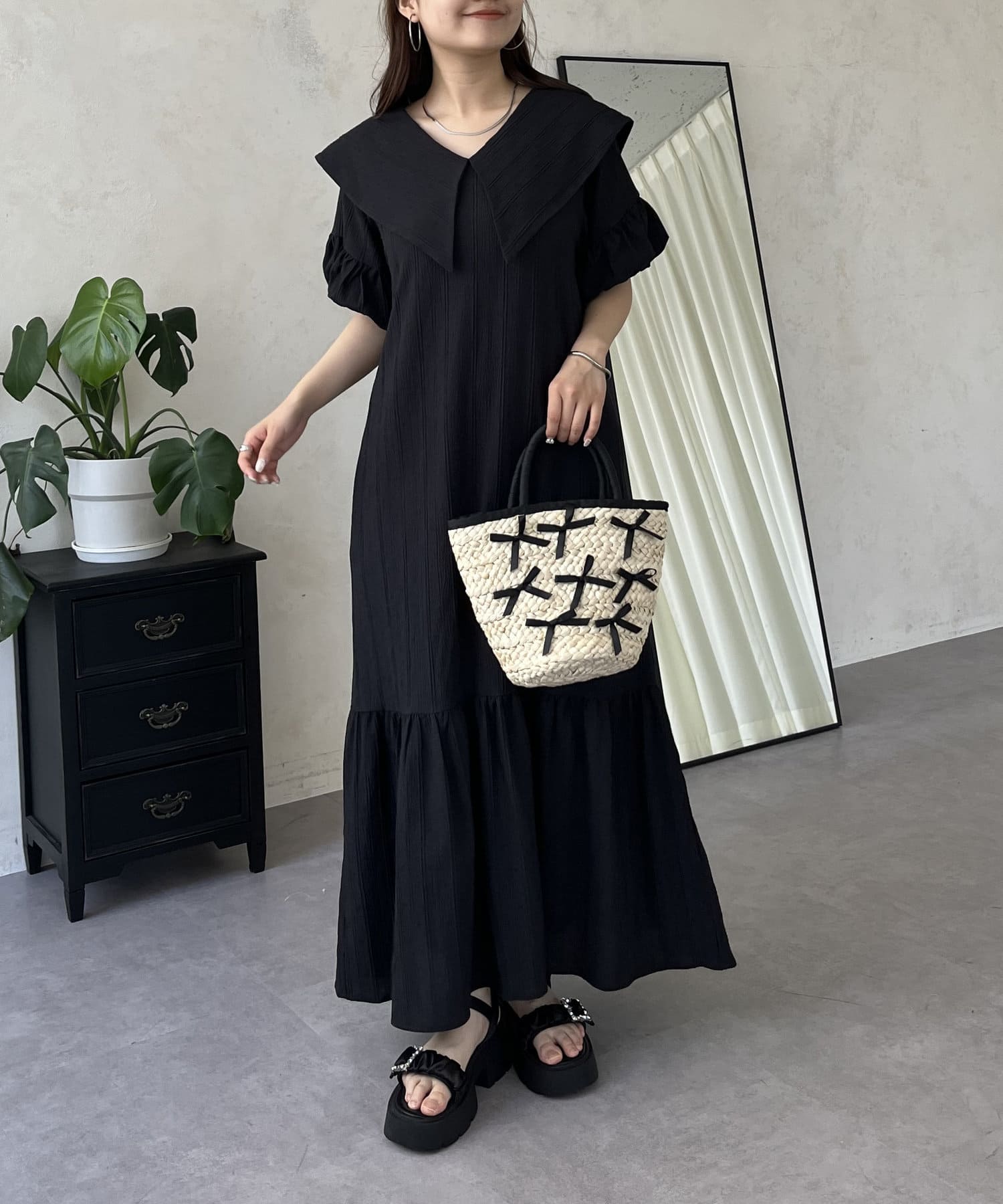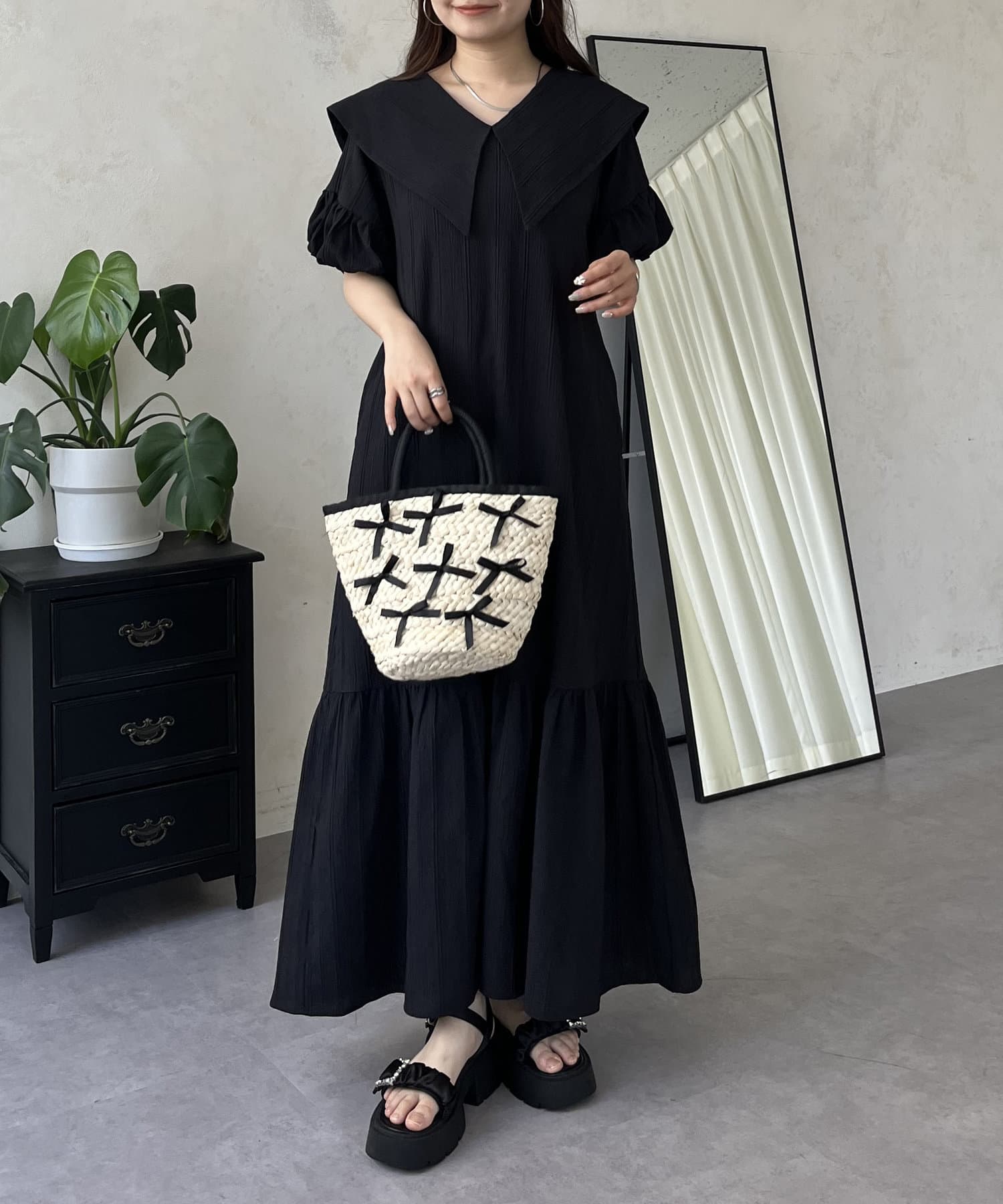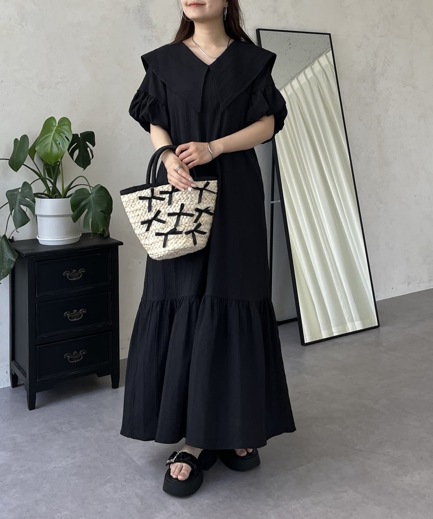 バルーンスリーブセーラーカラーワンピース