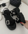 厚底/サンダル/ビジュー/シンプル/大人可愛い