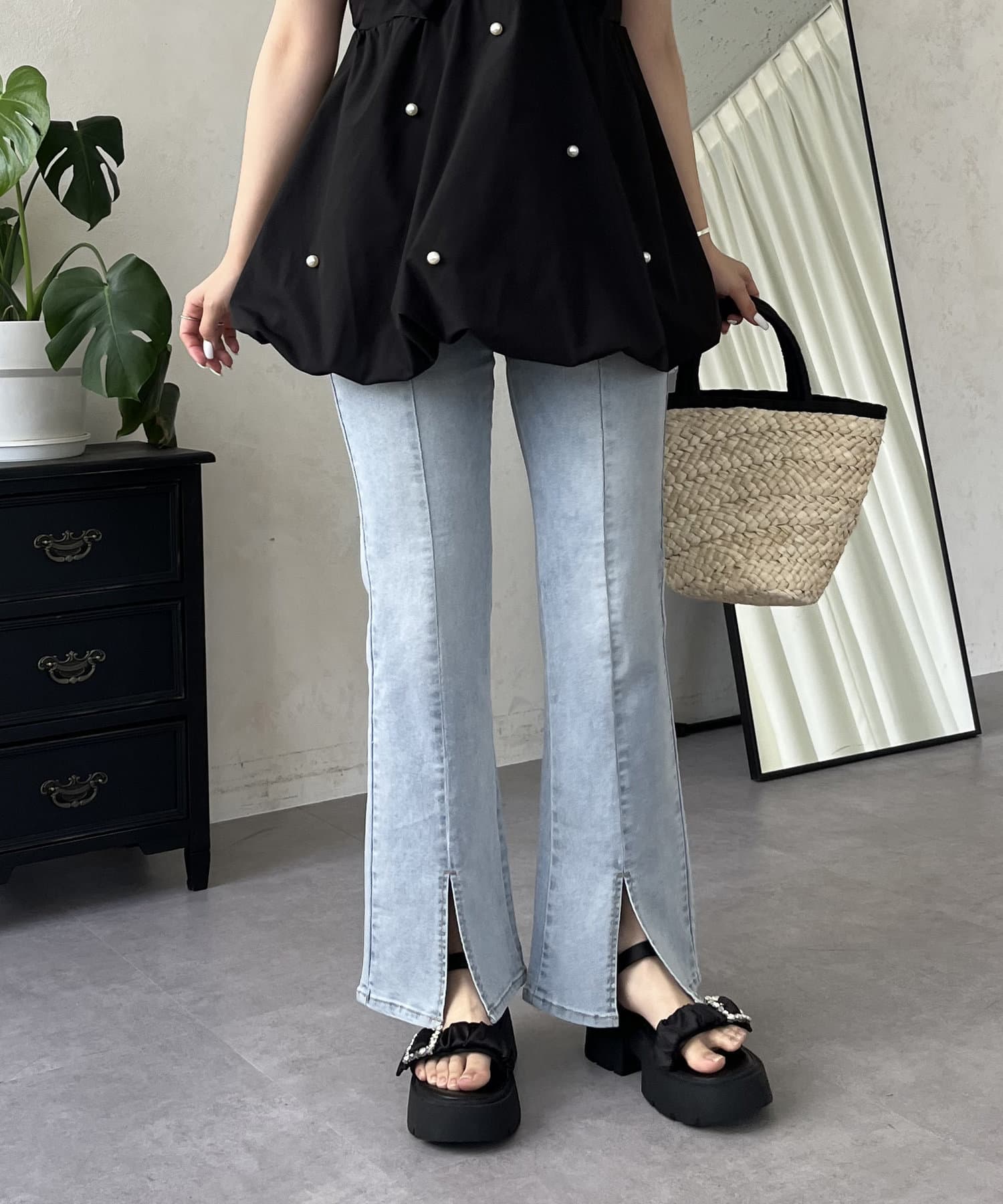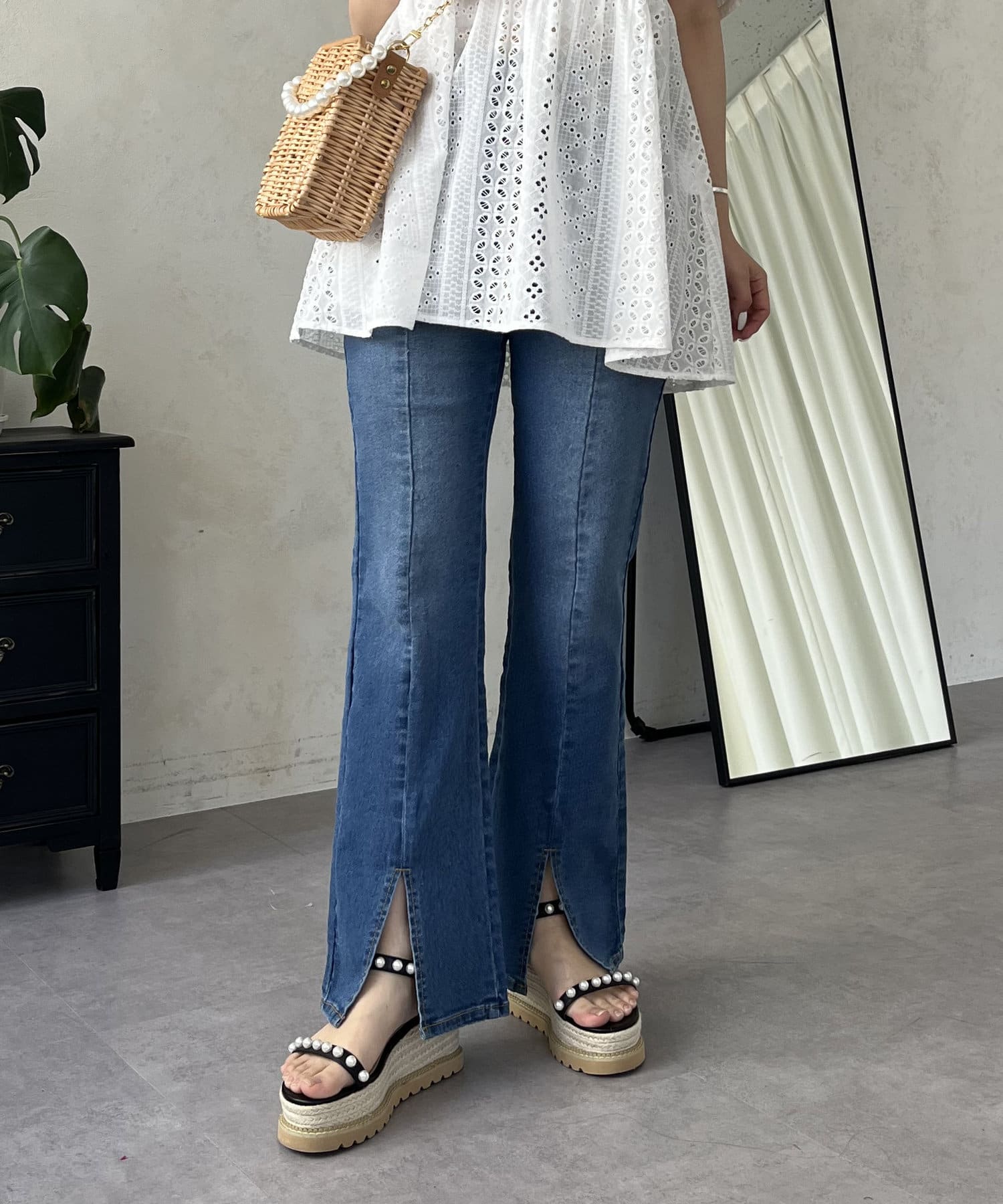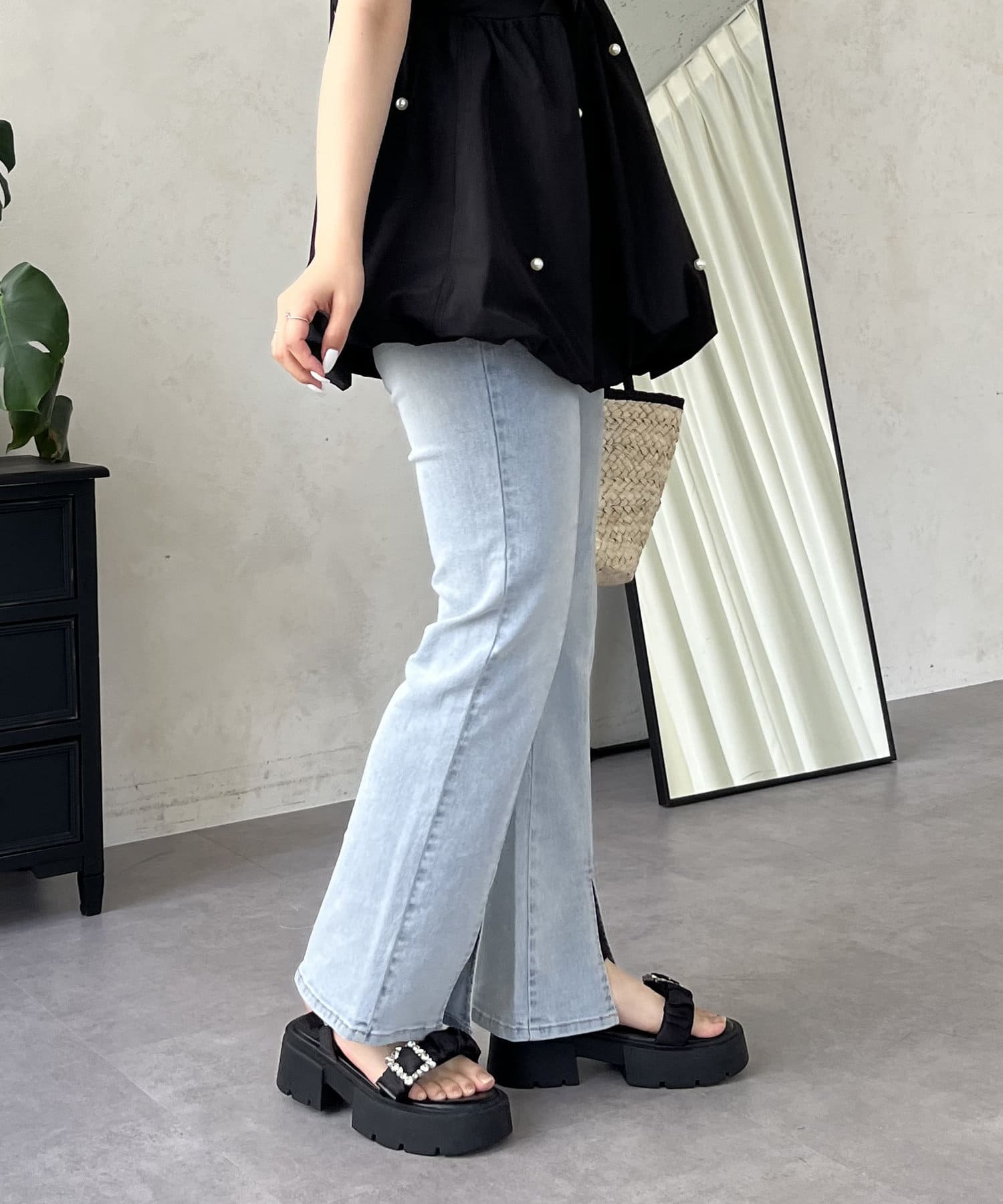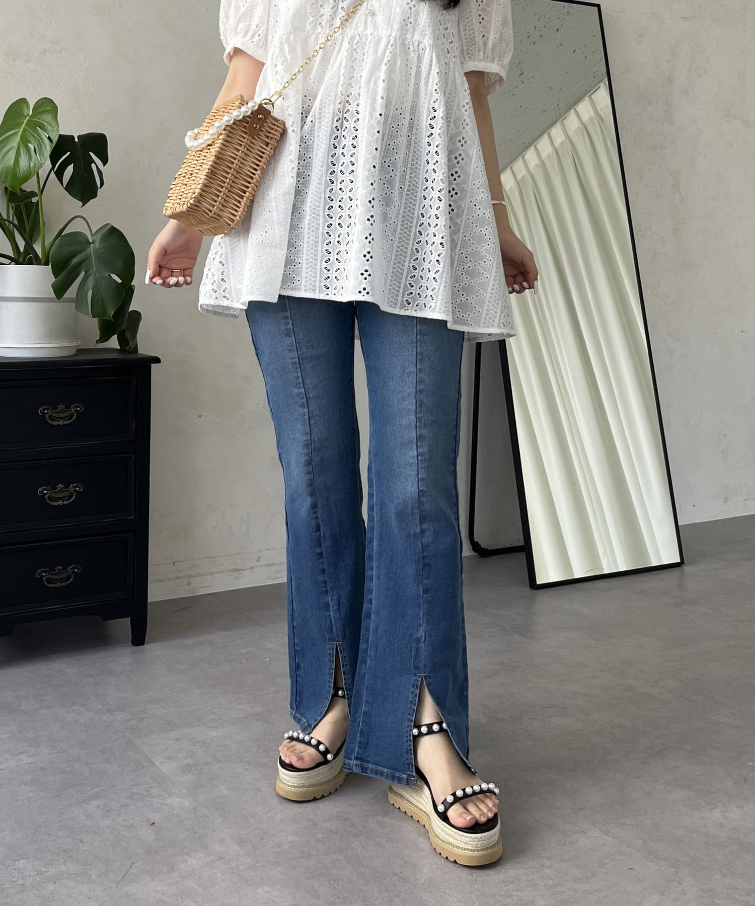 ●スリットがあるのでスッキリとしたシルエットで細見え効果!