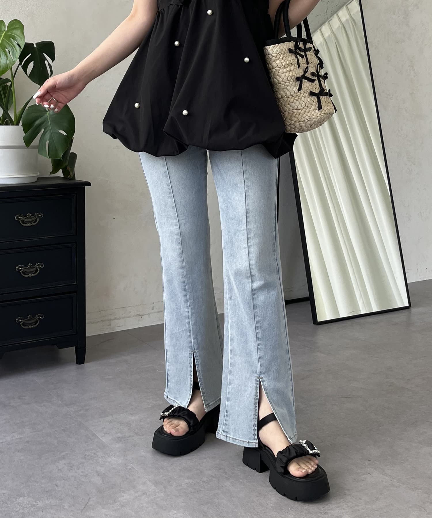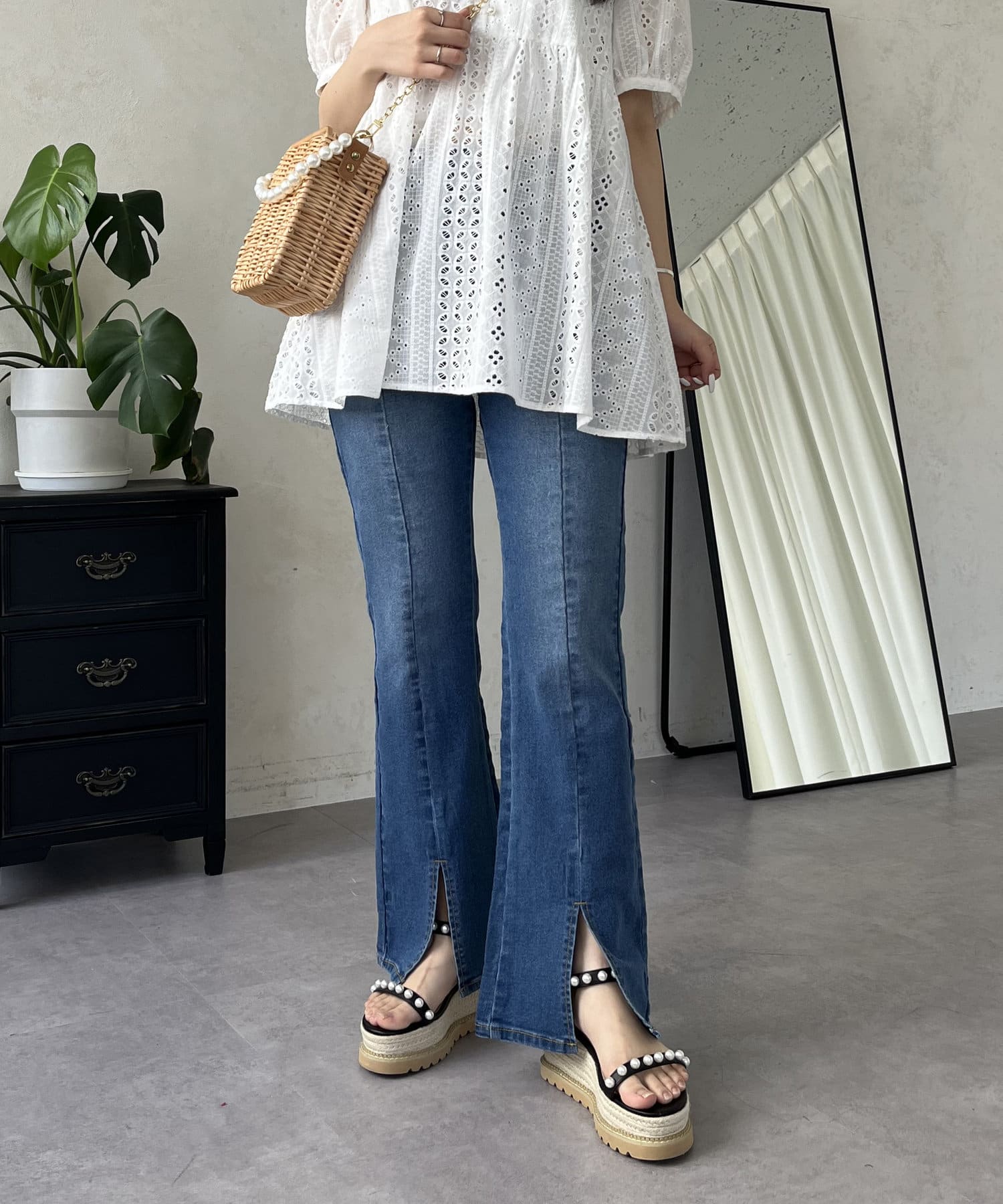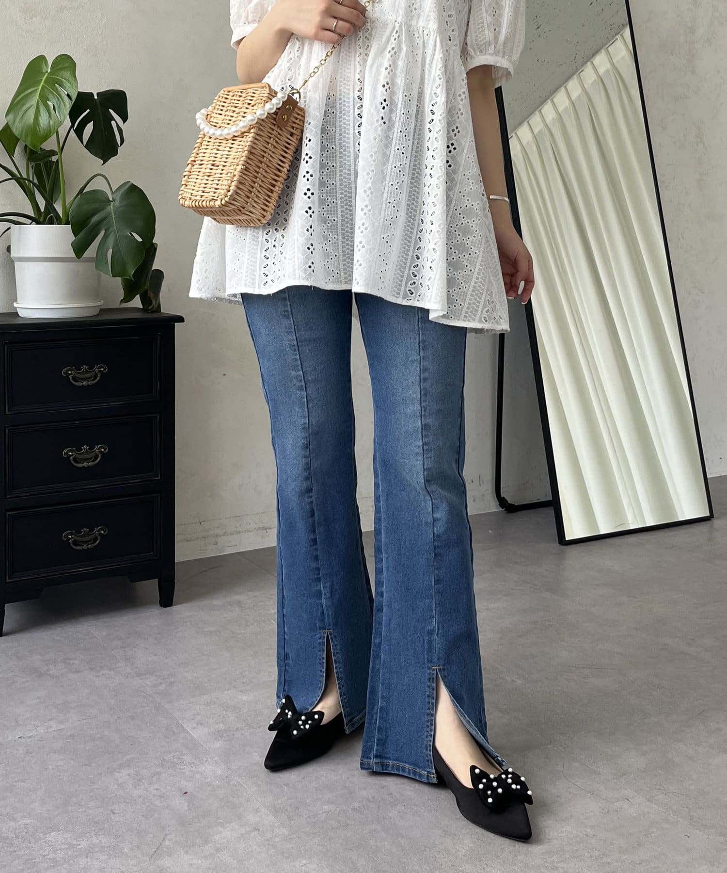 ●スリットがあるのでスッキリとしたシルエットで細見え効果!