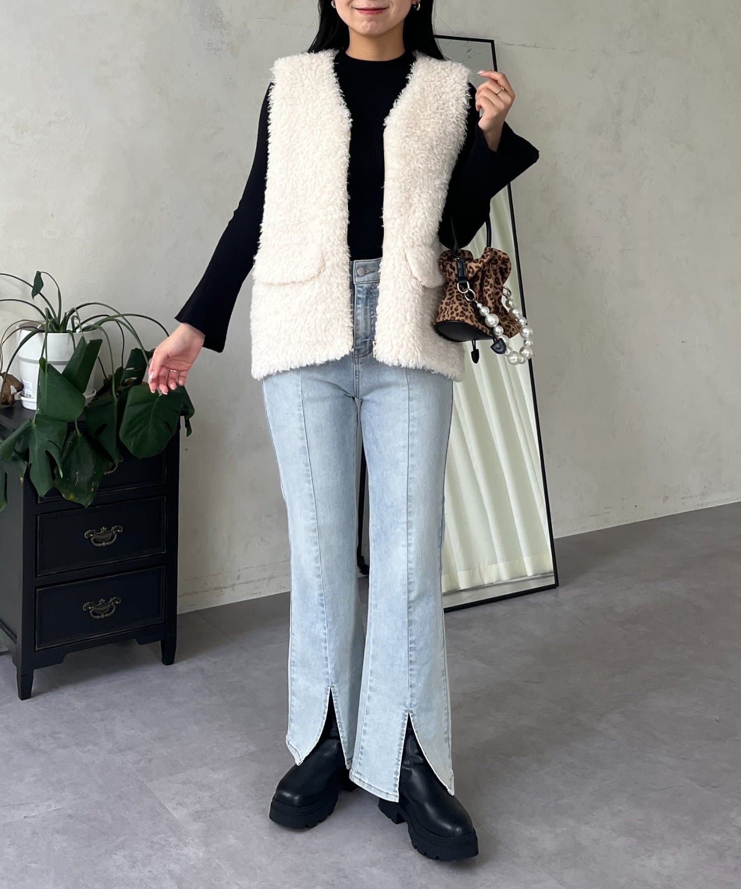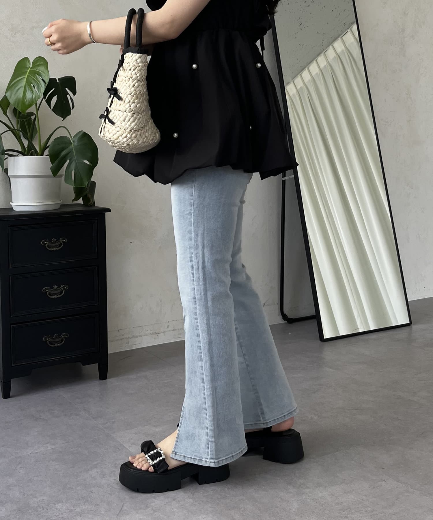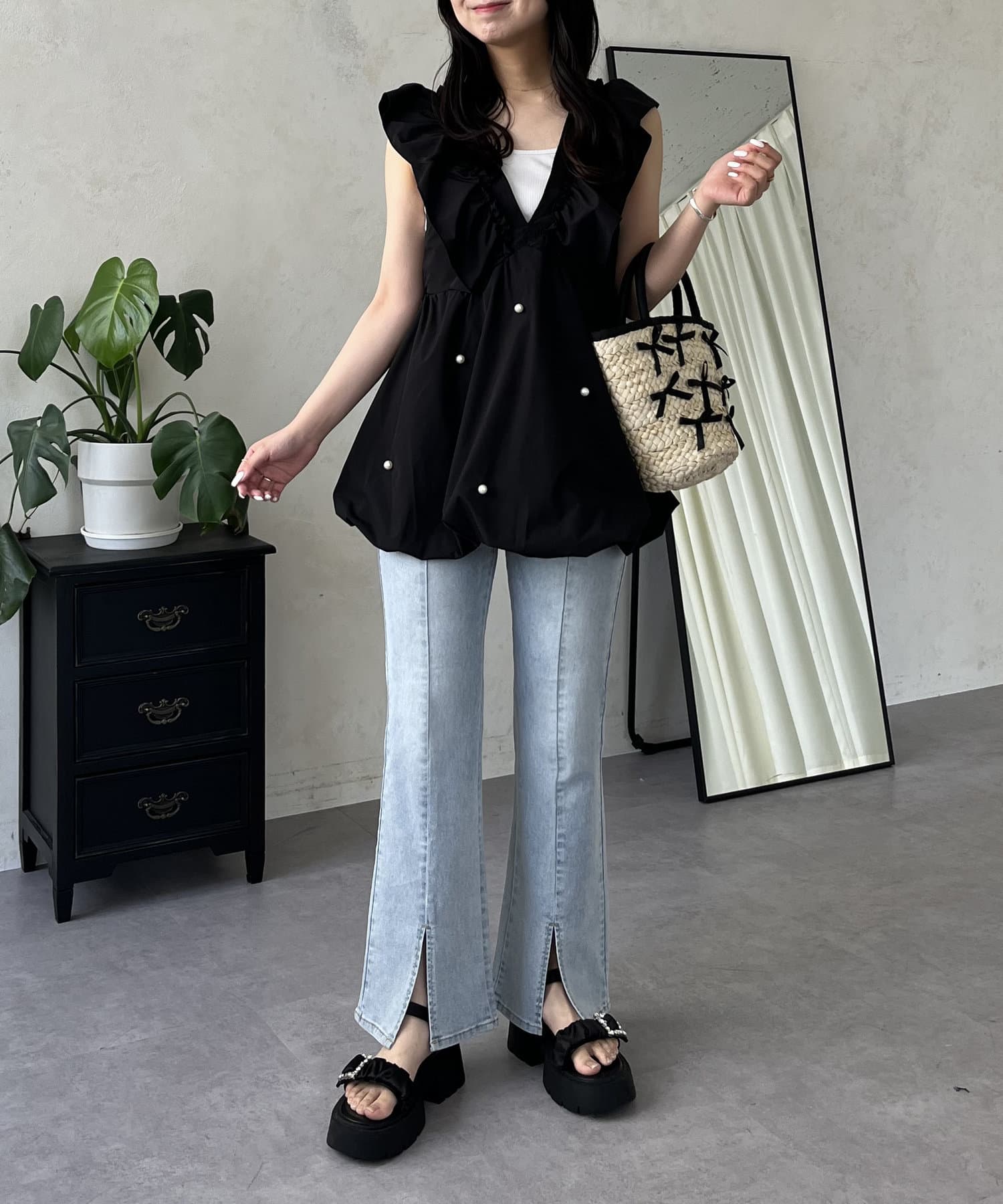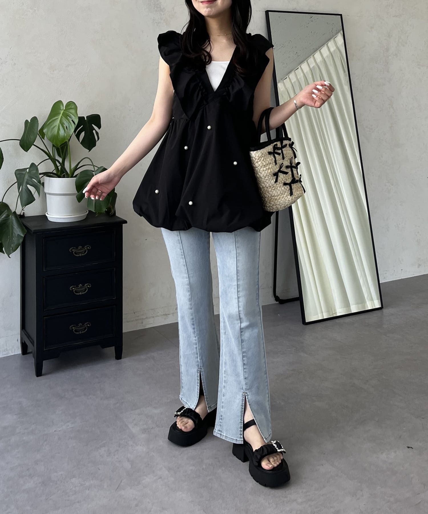 ●スリットがあるのでスッキリとしたシルエットで細見え効果!