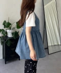 ●胸下のギャザー位置が高いので脚長に見せてくれます