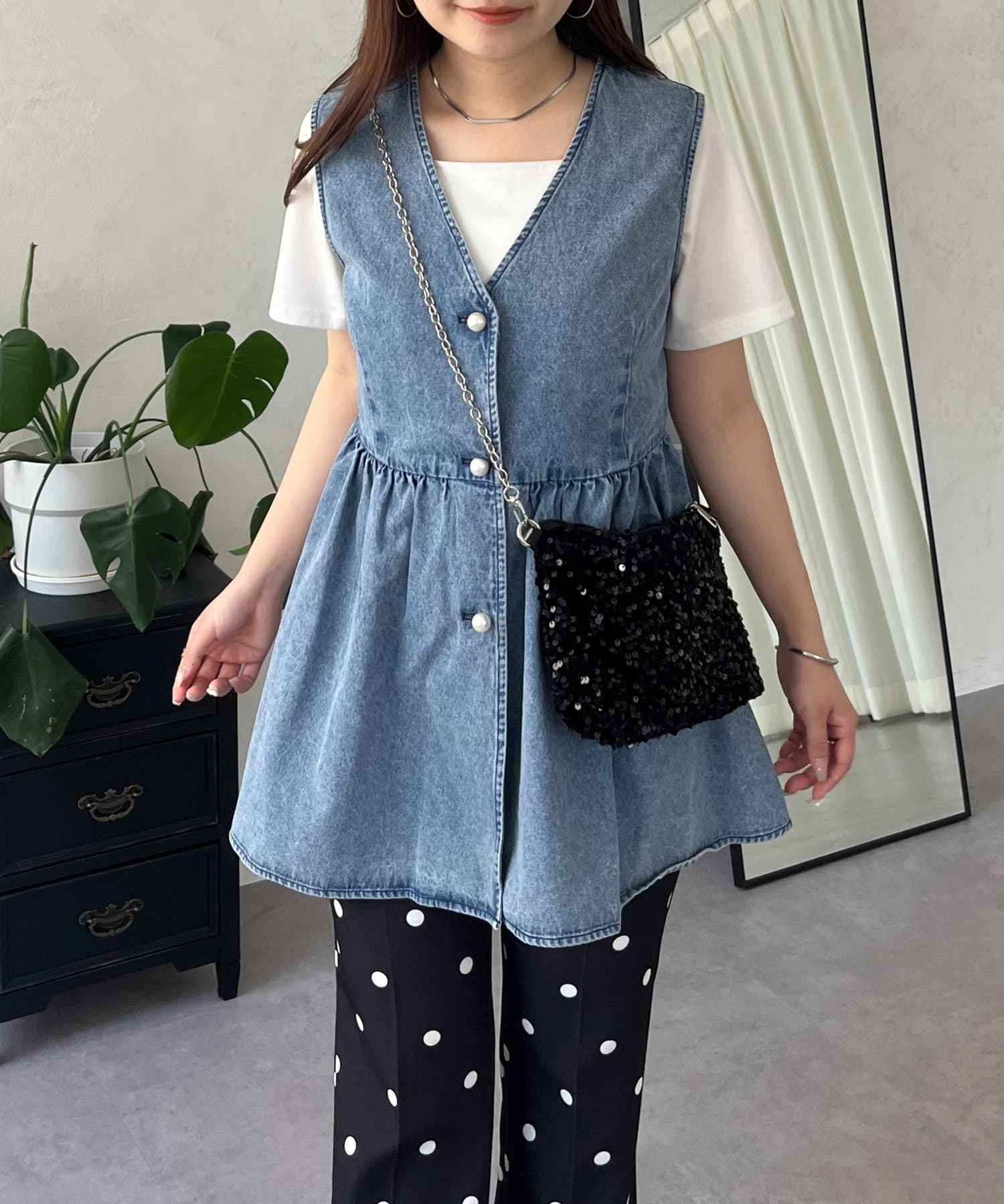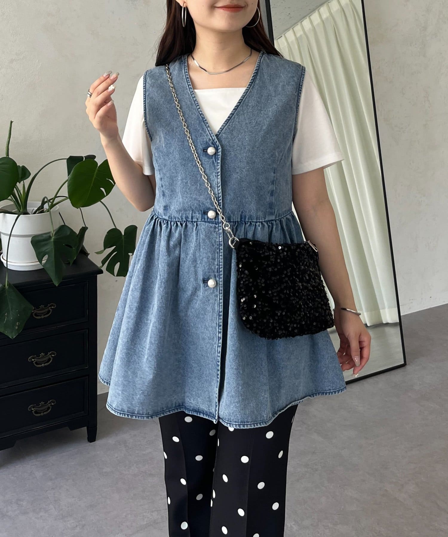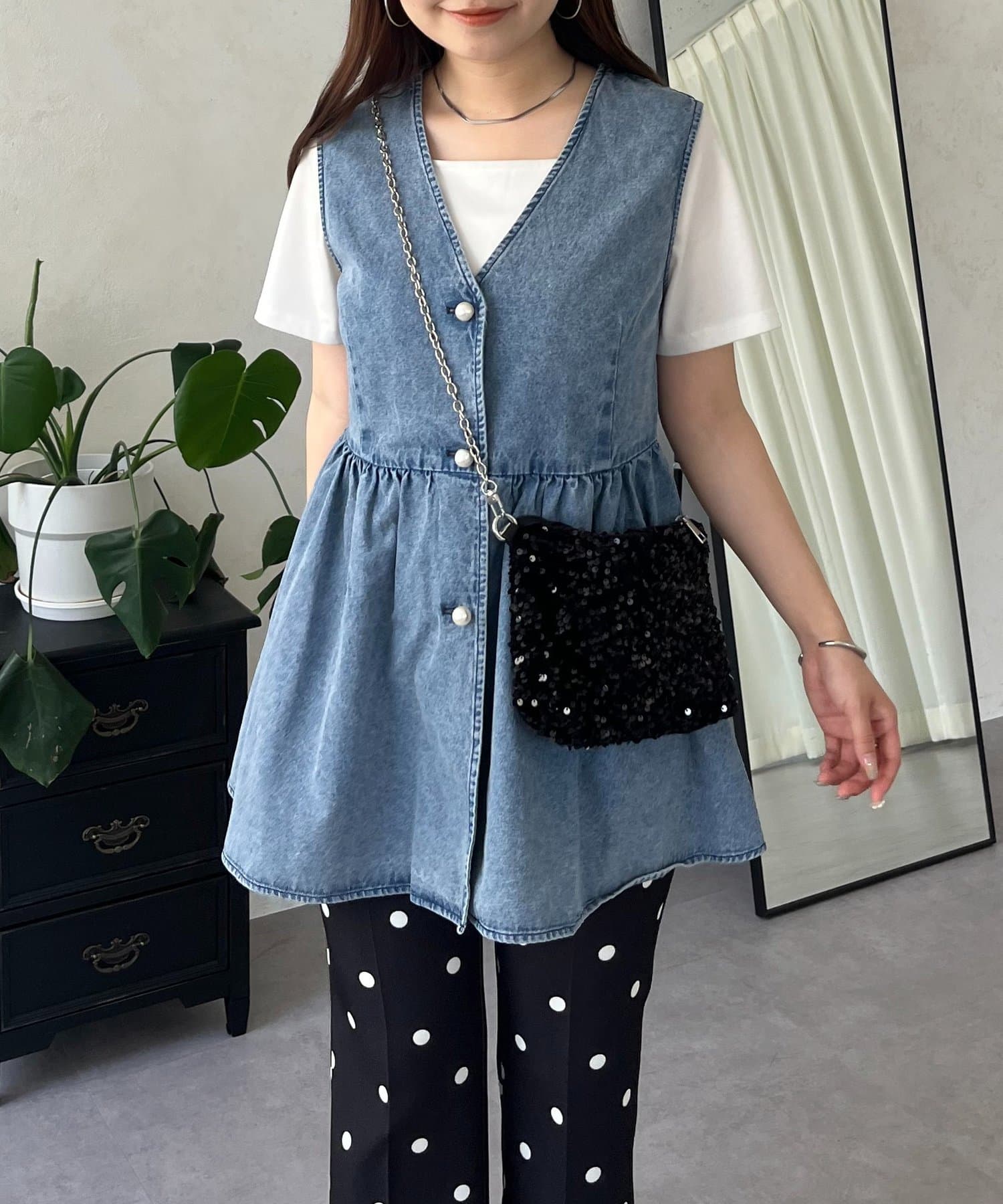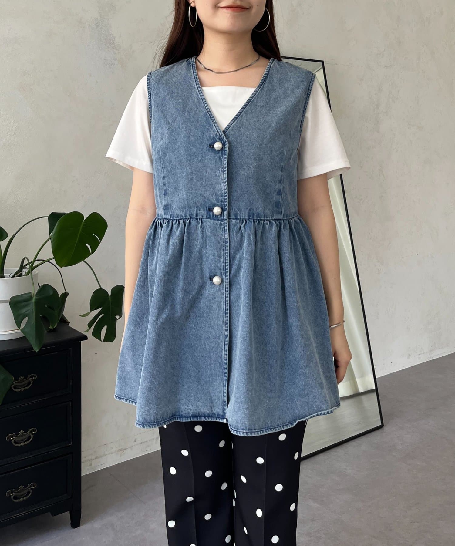 デニム/ジレ/レイヤード/体型カバー/大人可愛い