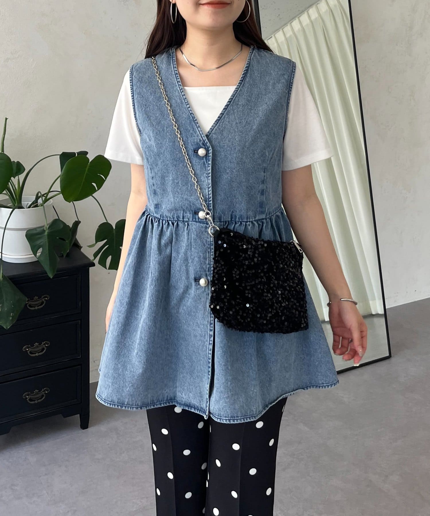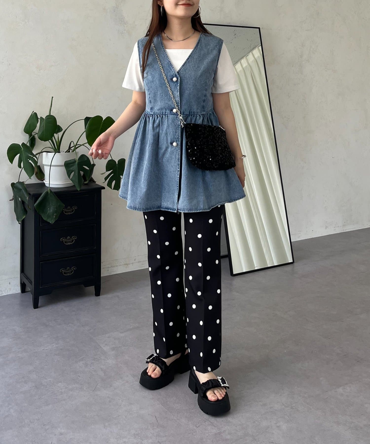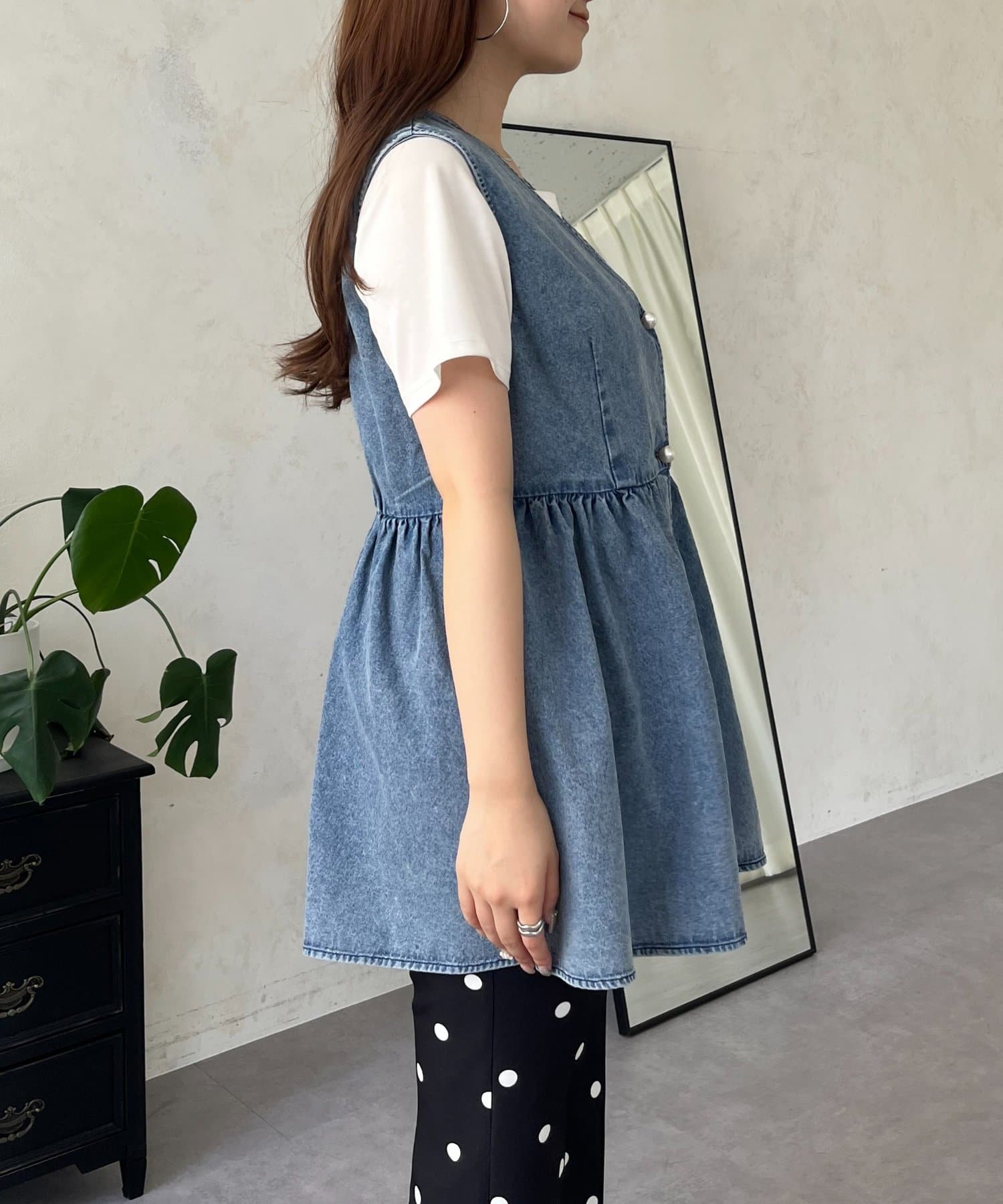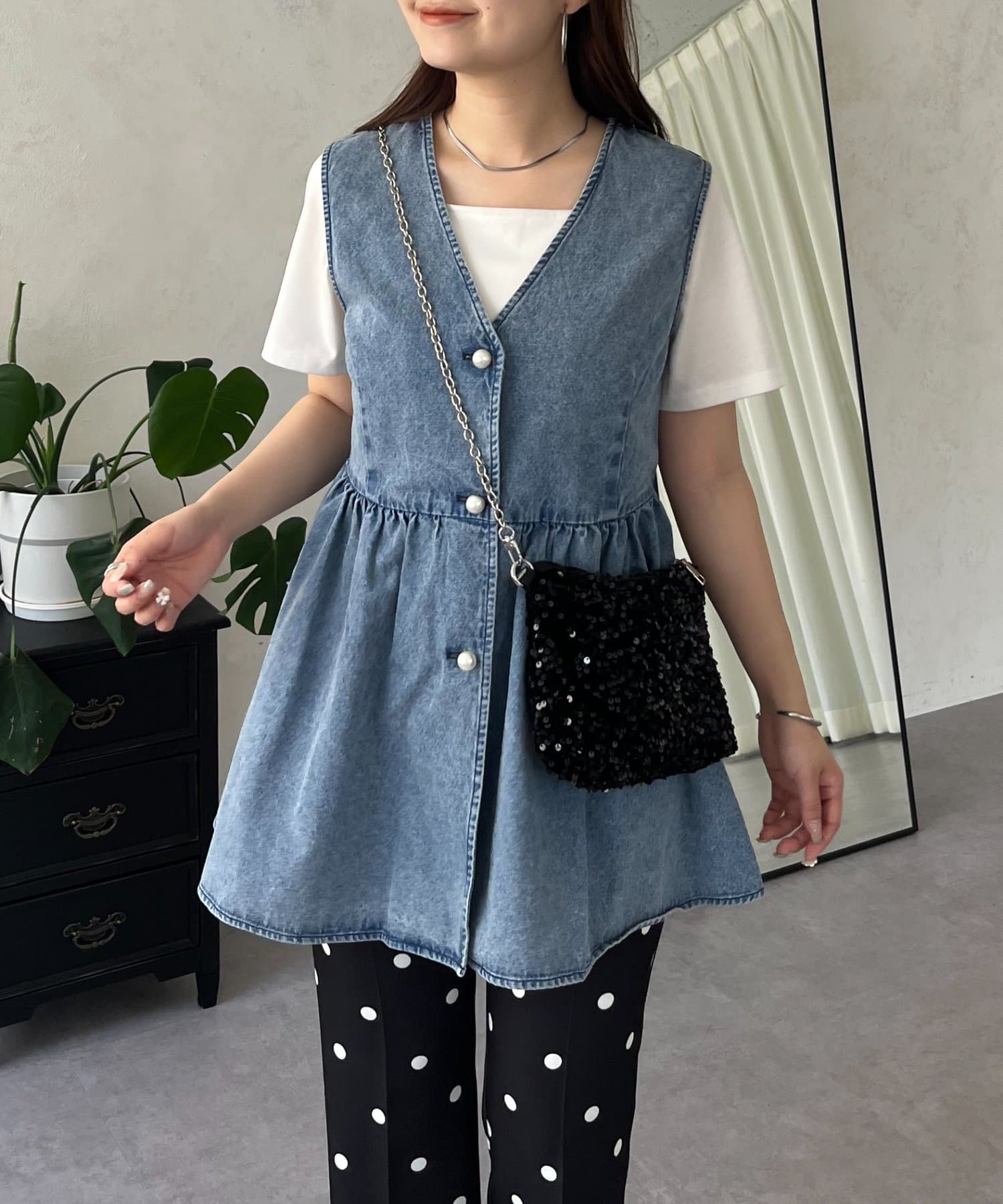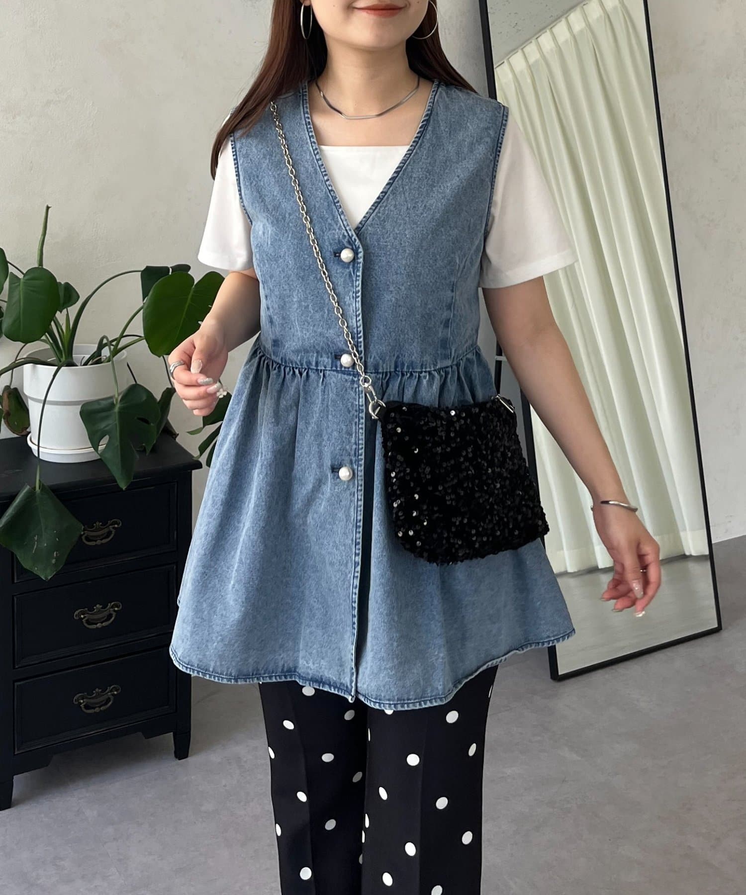 デニム/ジレ/レイヤード/体型カバー/大人可愛い