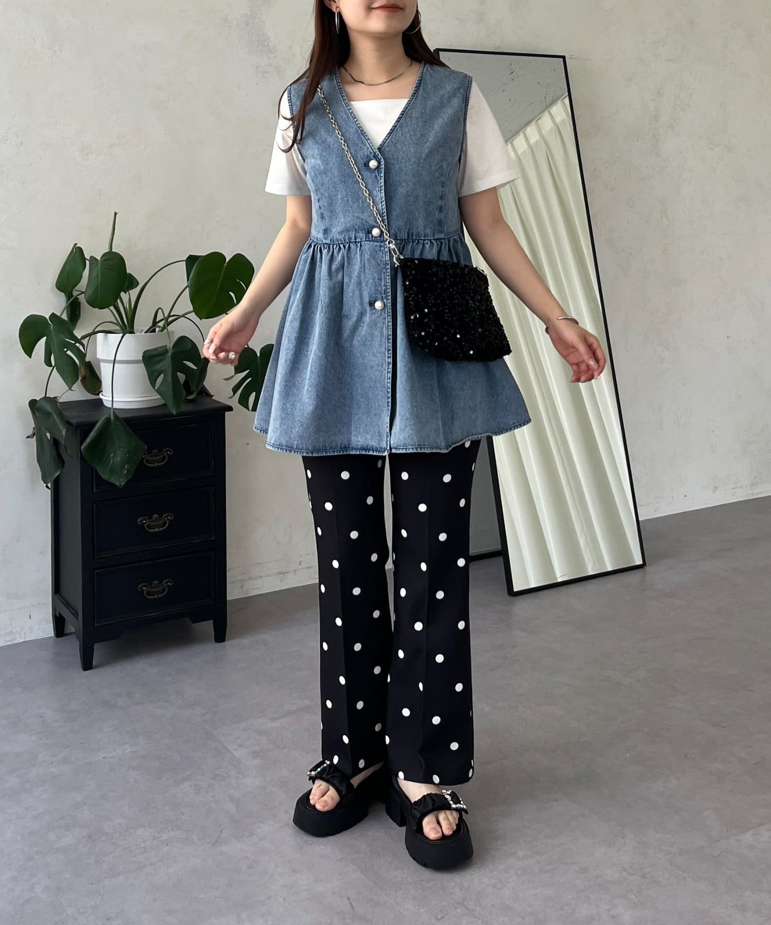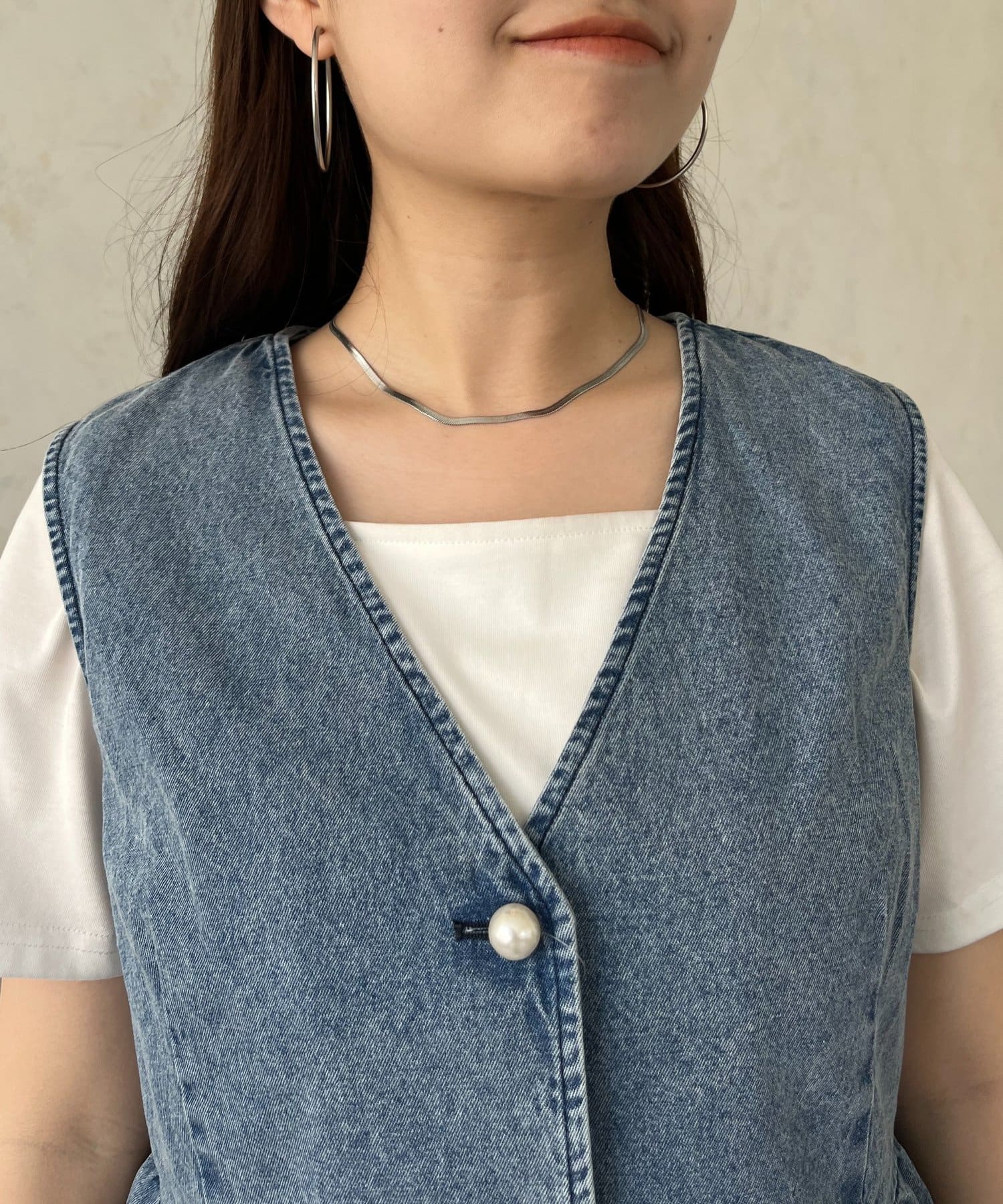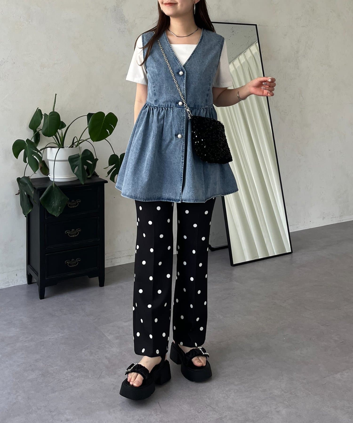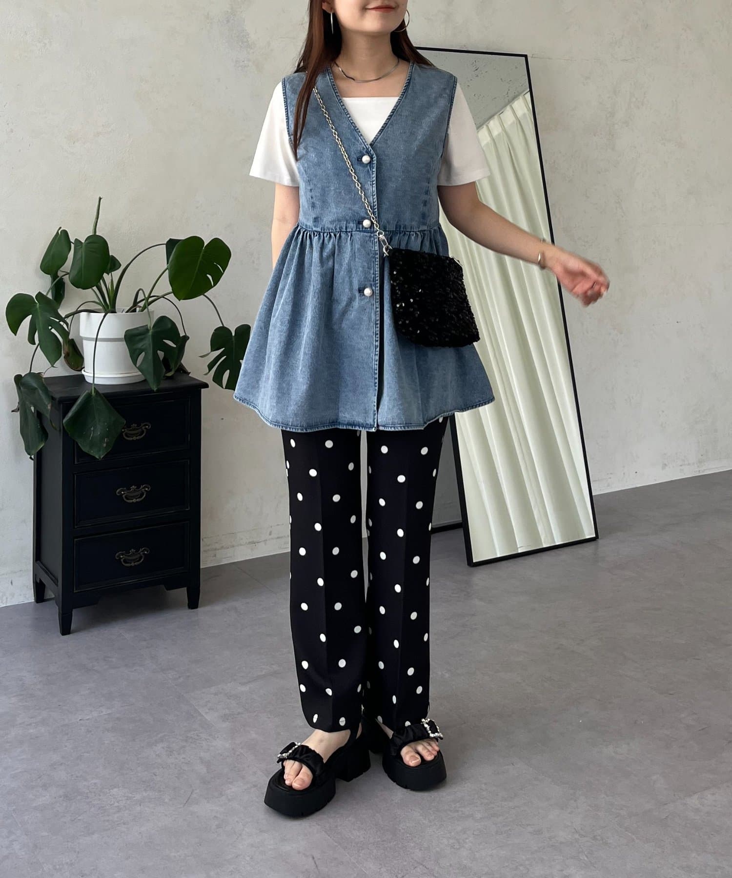 デニム/ジレ/レイヤード/体型カバー/大人可愛い