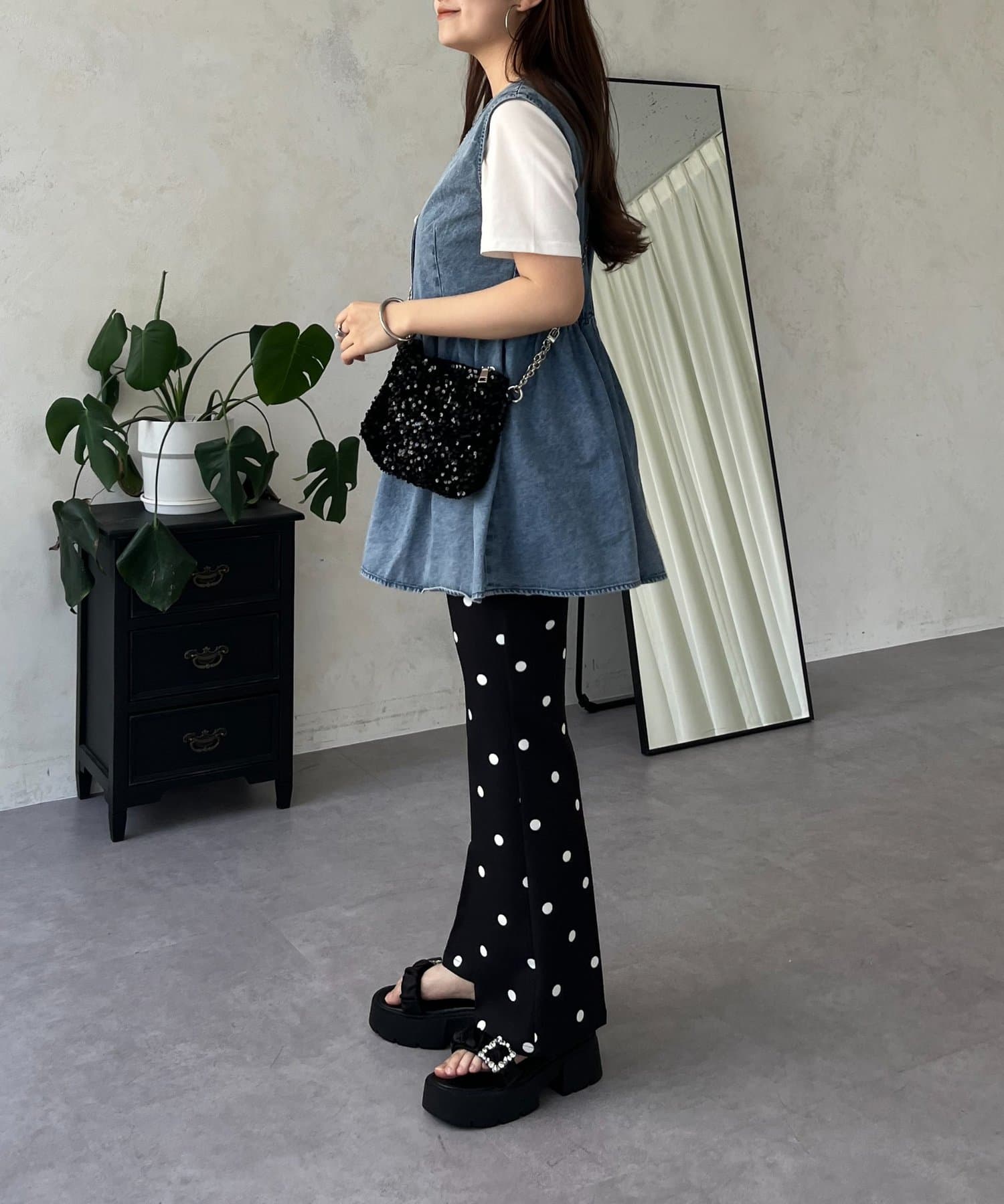 ●デニムでカジュアルだけど、パールボタンでフェミニンさをプラス◎