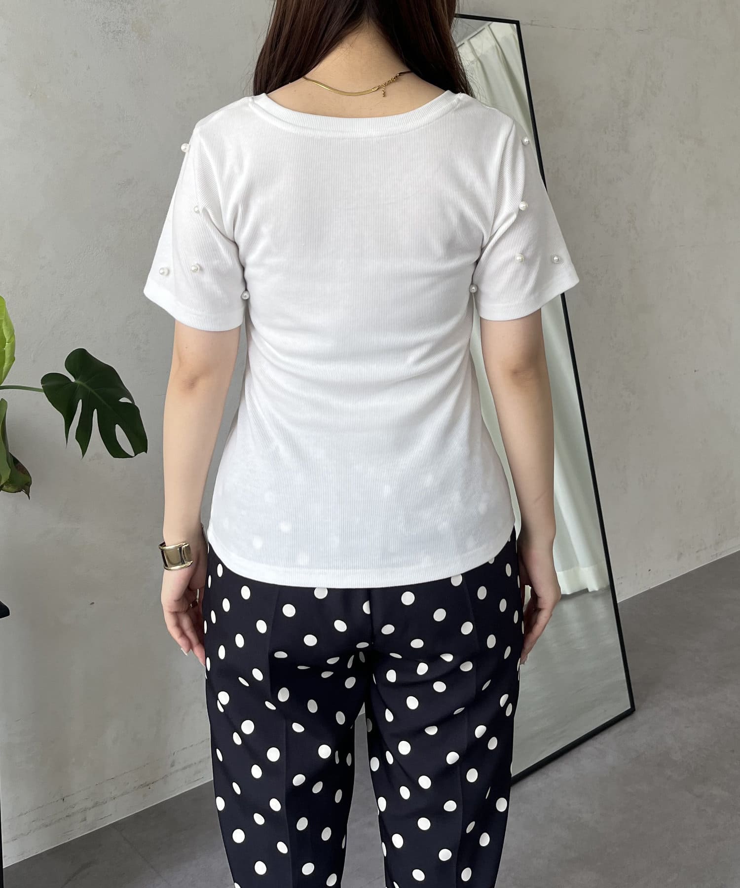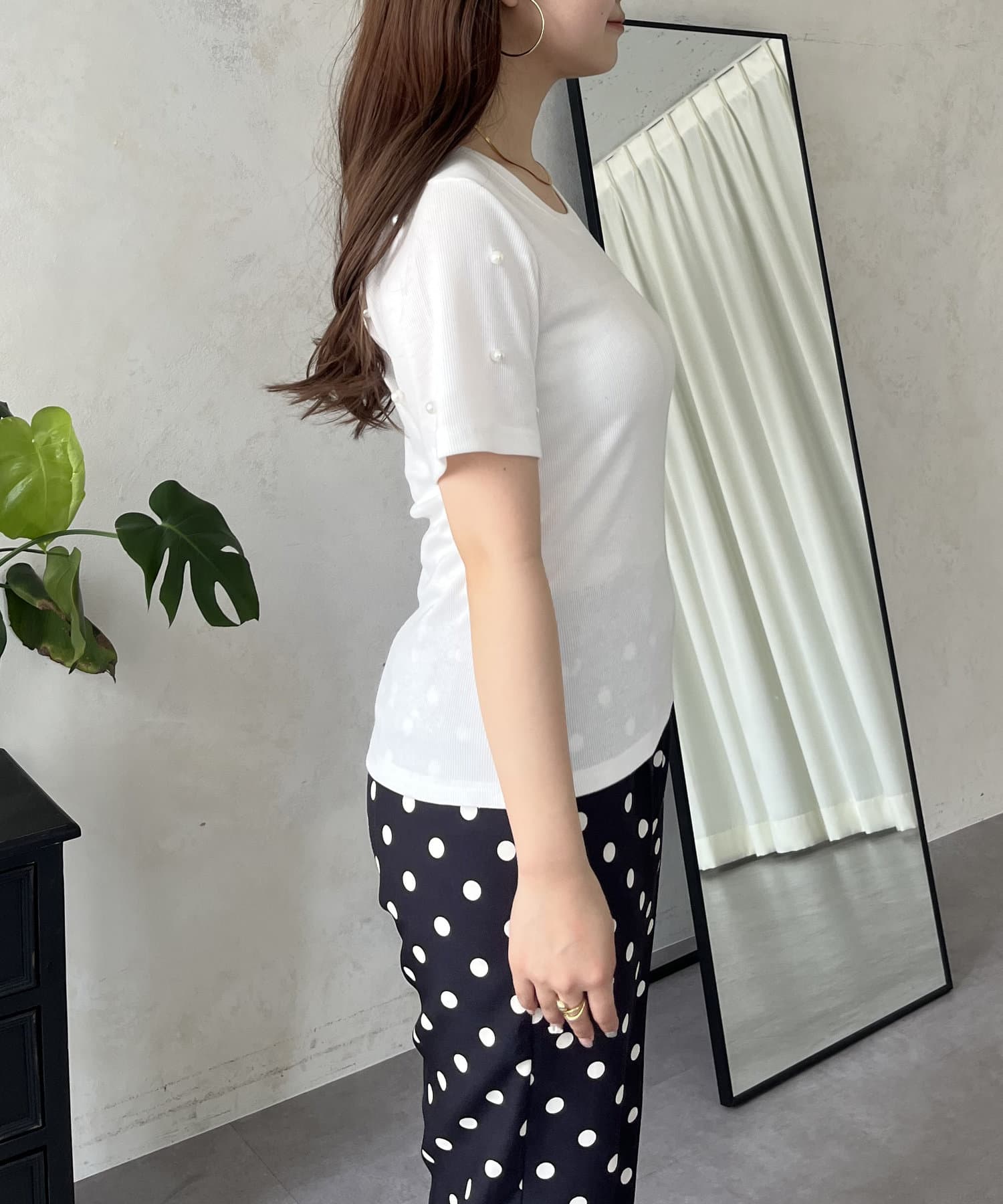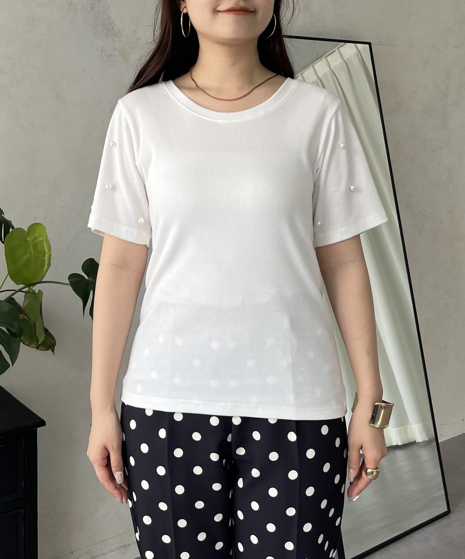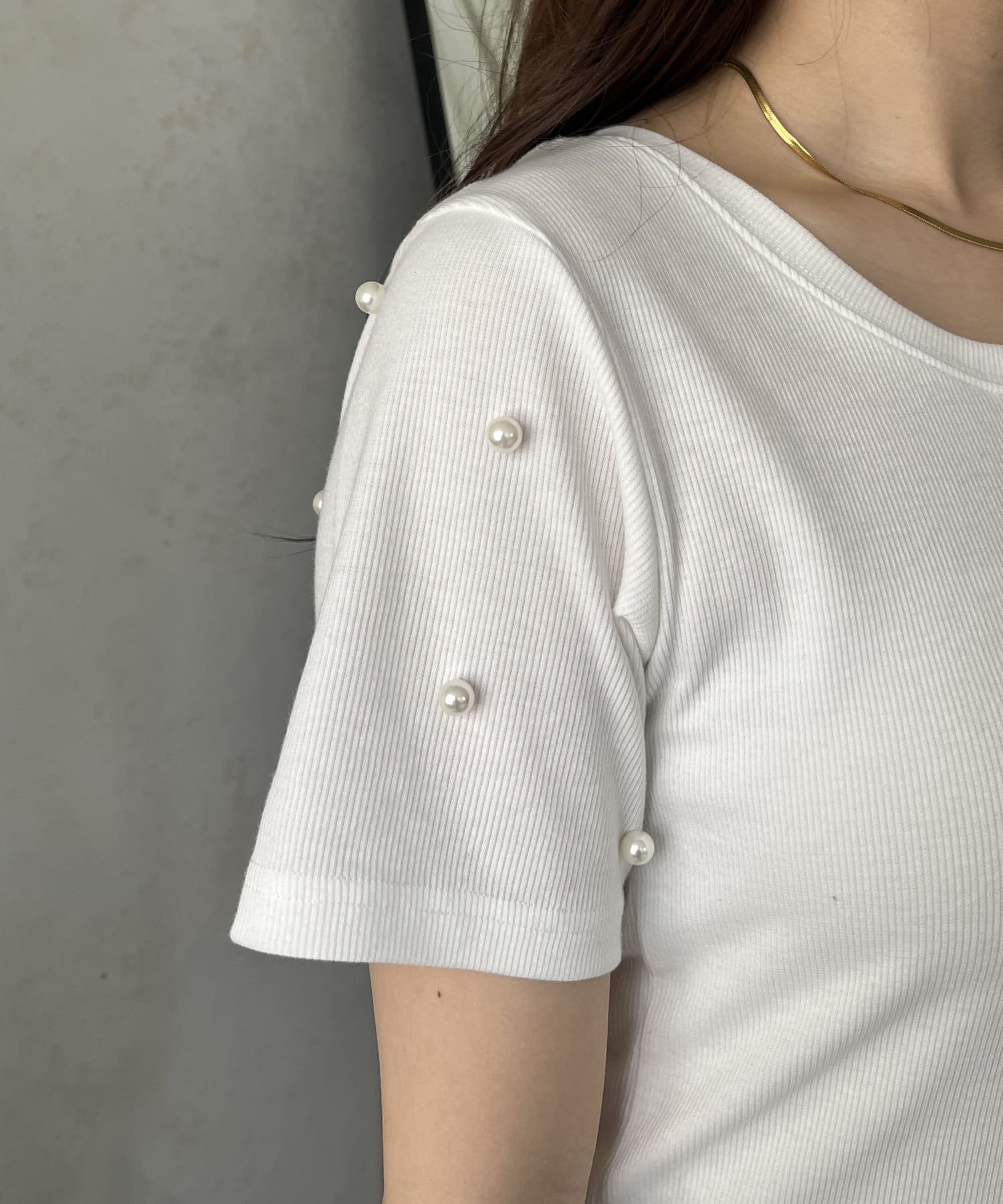 リブ/tシャツ/パール/シンプル