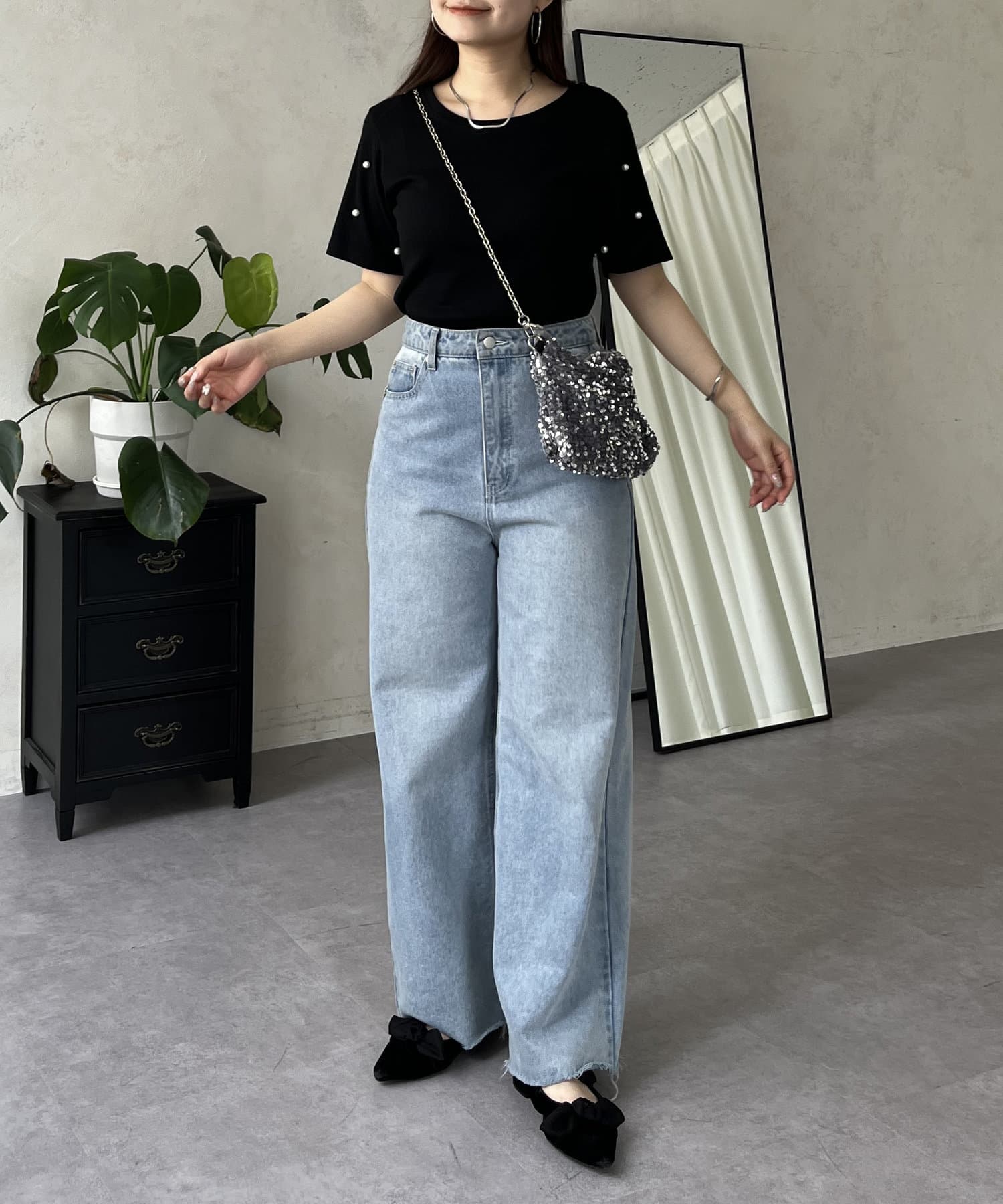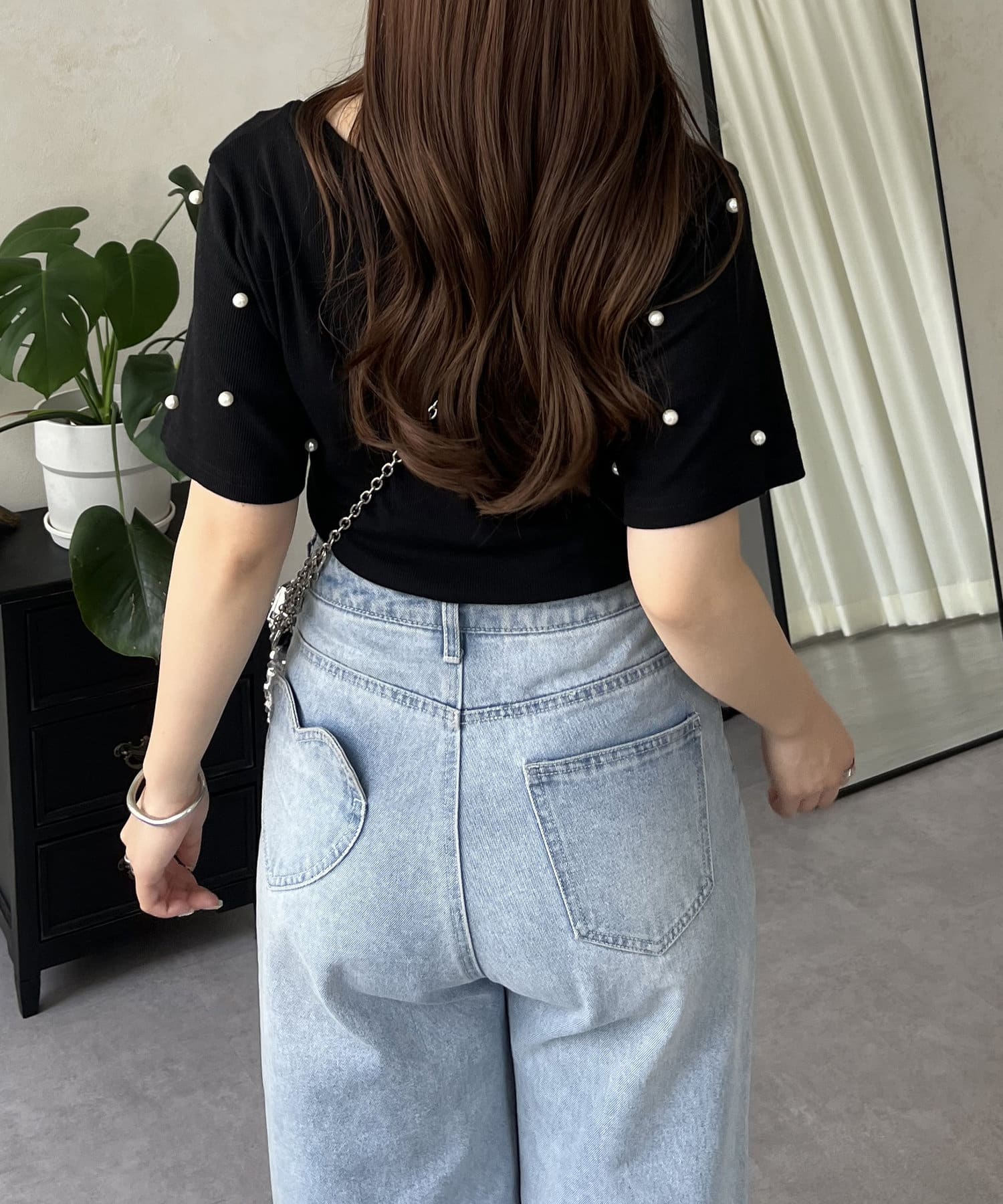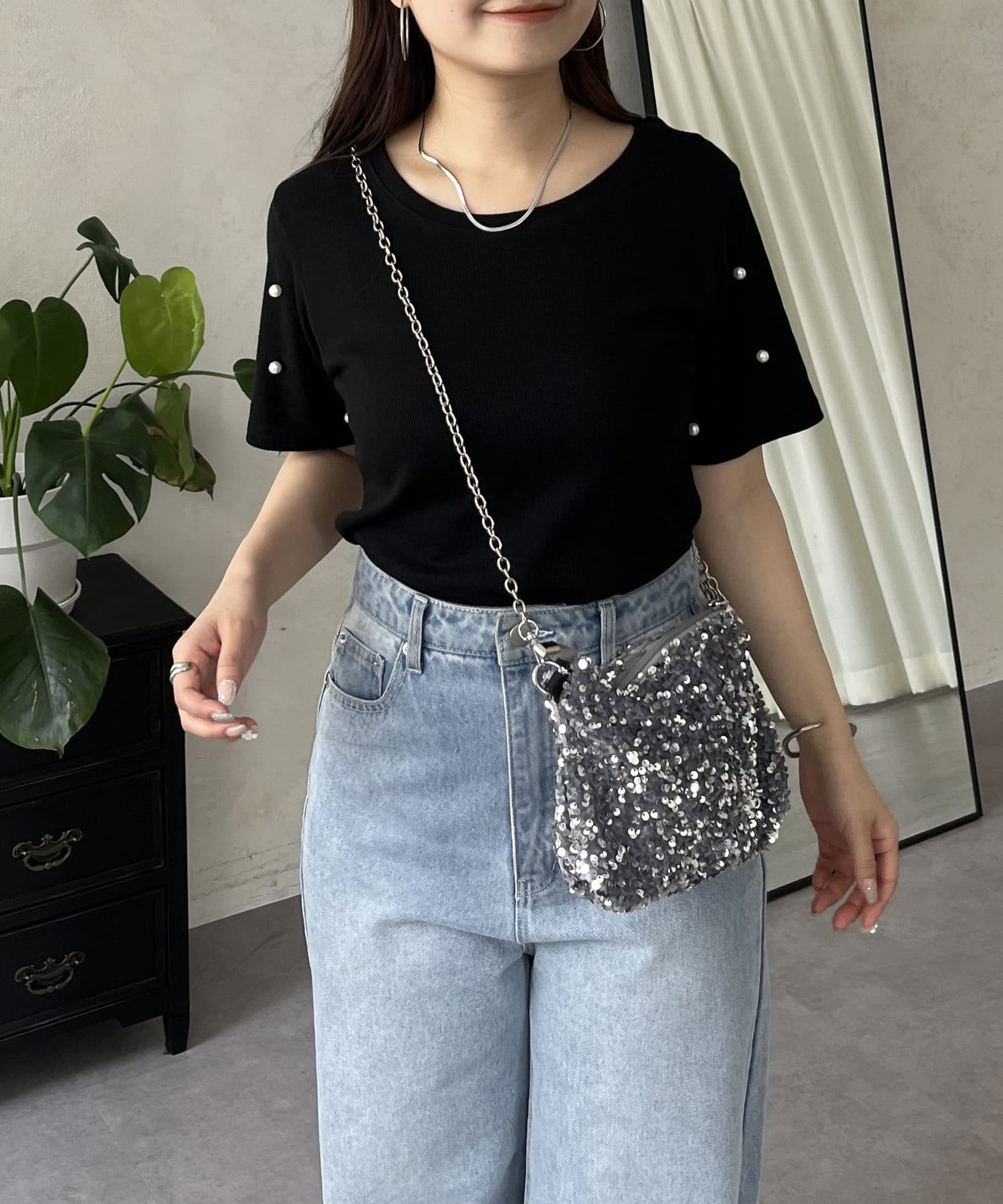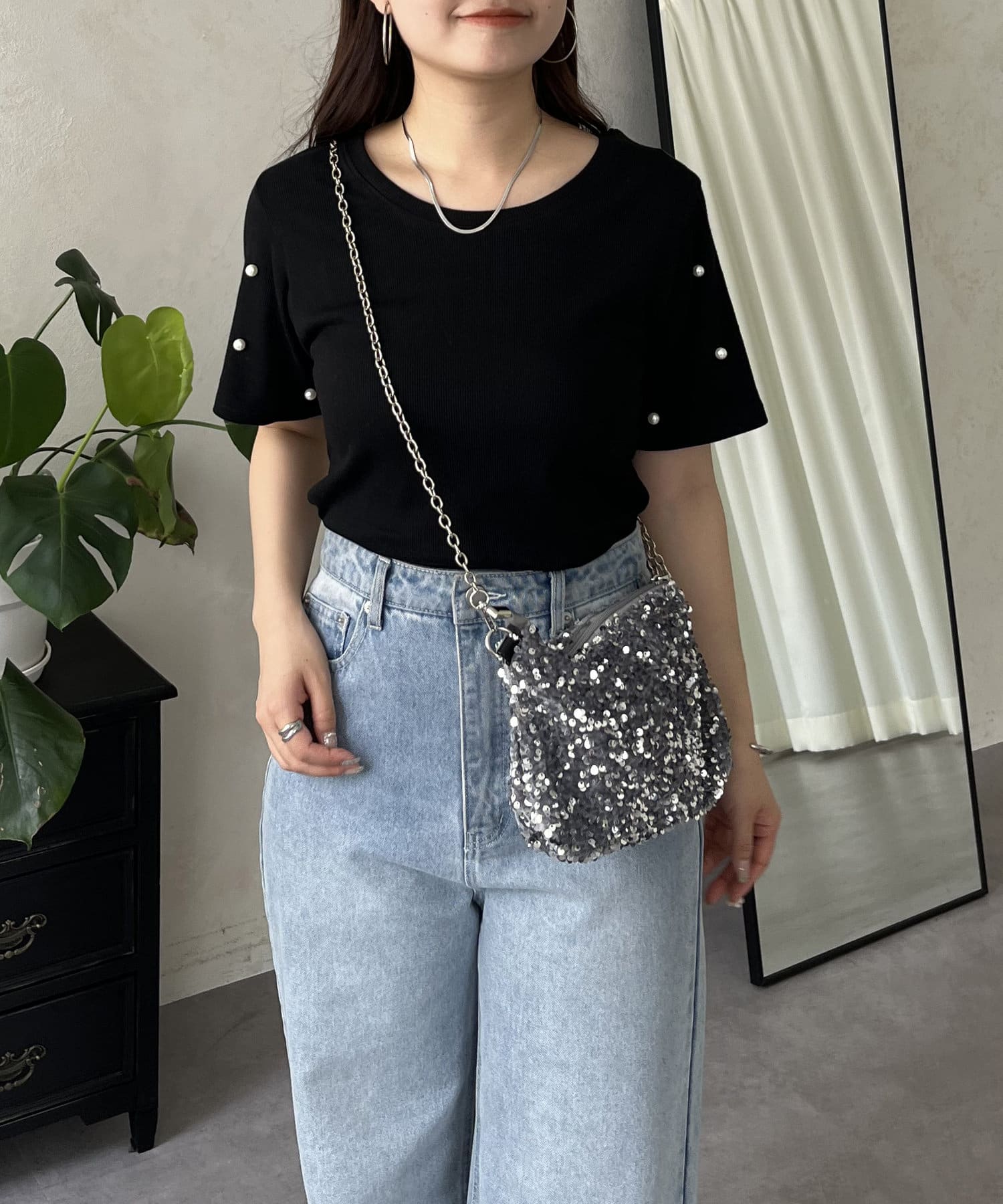 リブ/tシャツ/パール/シンプル