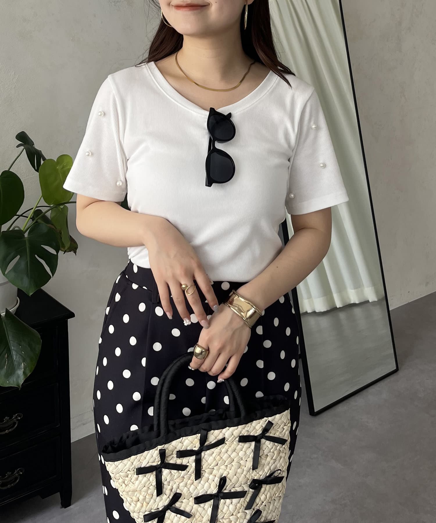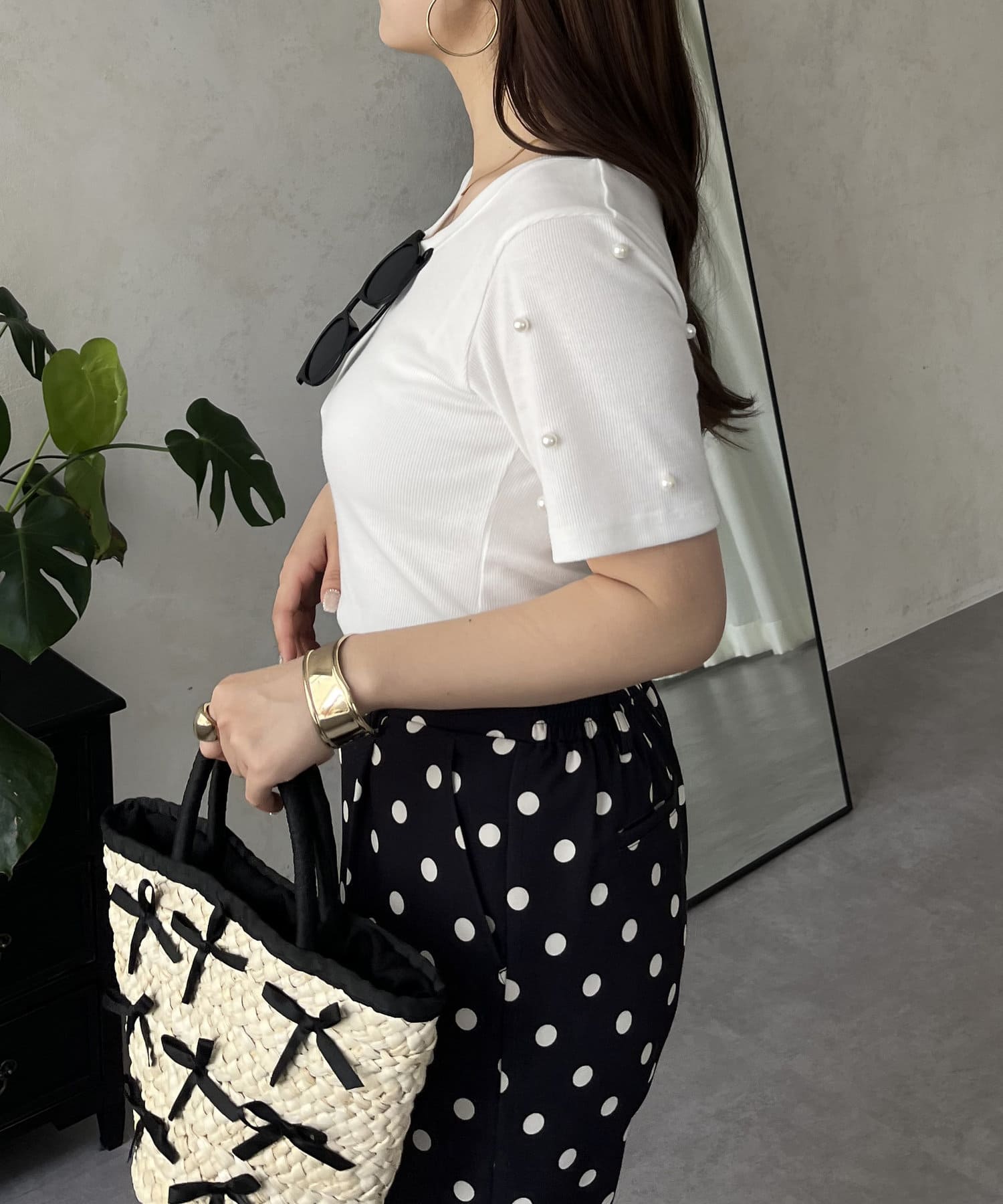 ●袖のパールが大人可愛いポイント