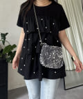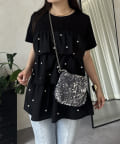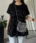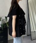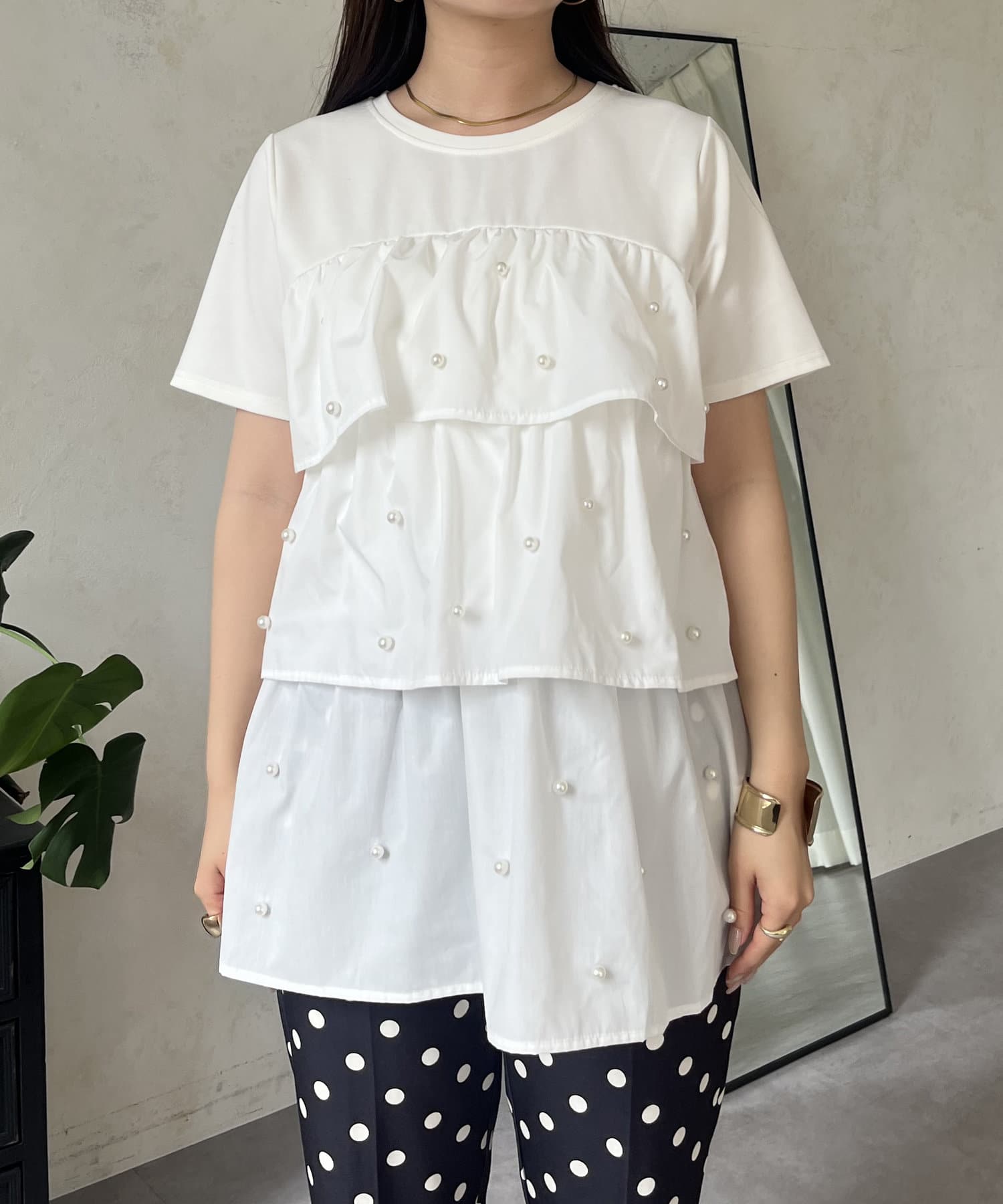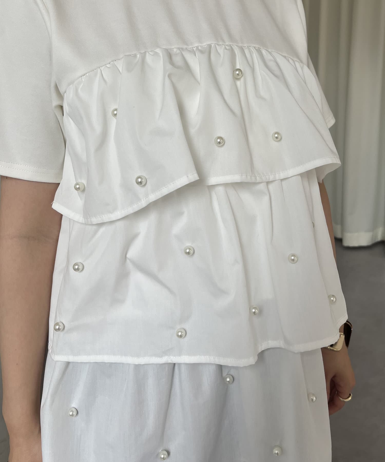 パールがアクセントになるティアードTシャツ
