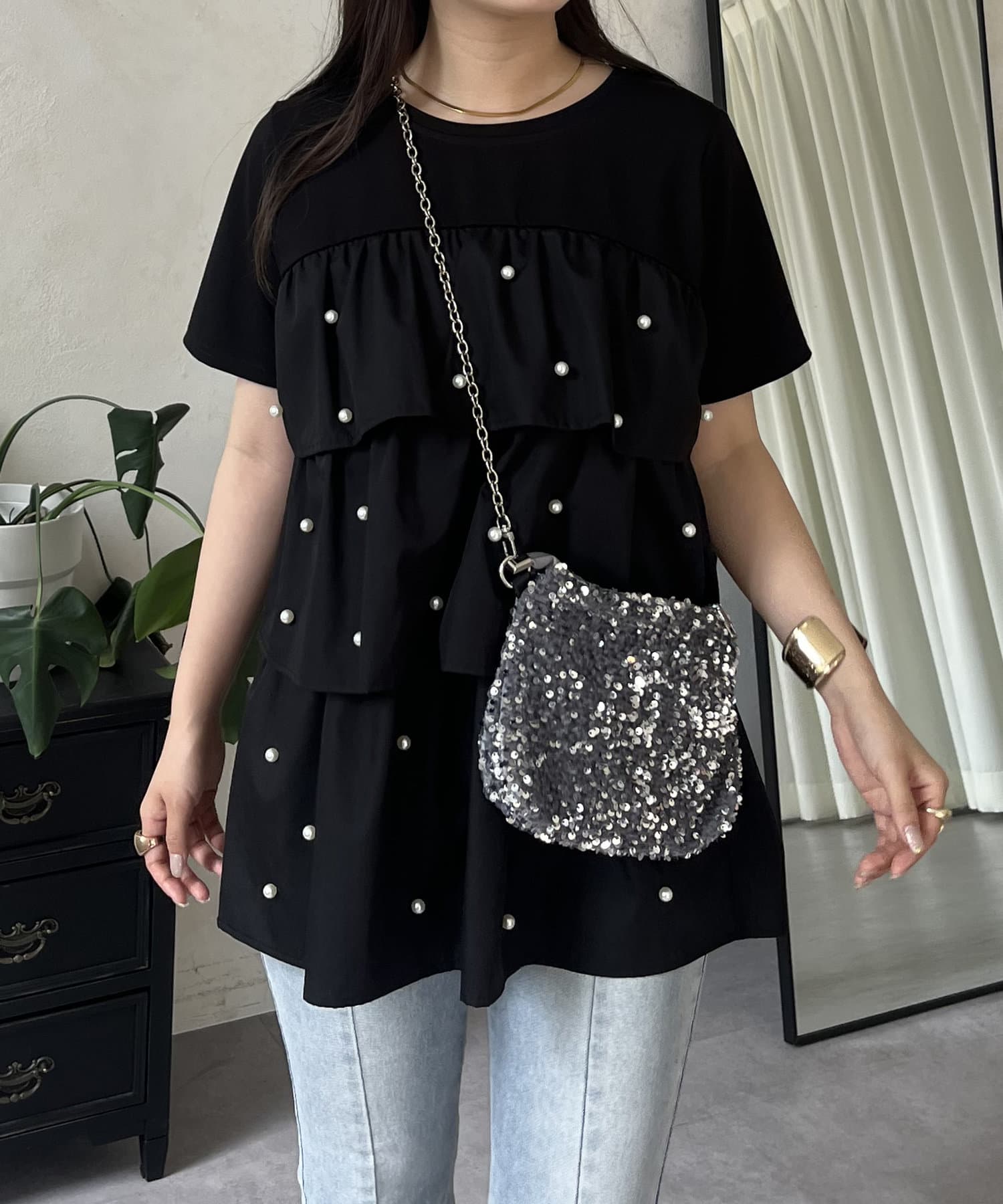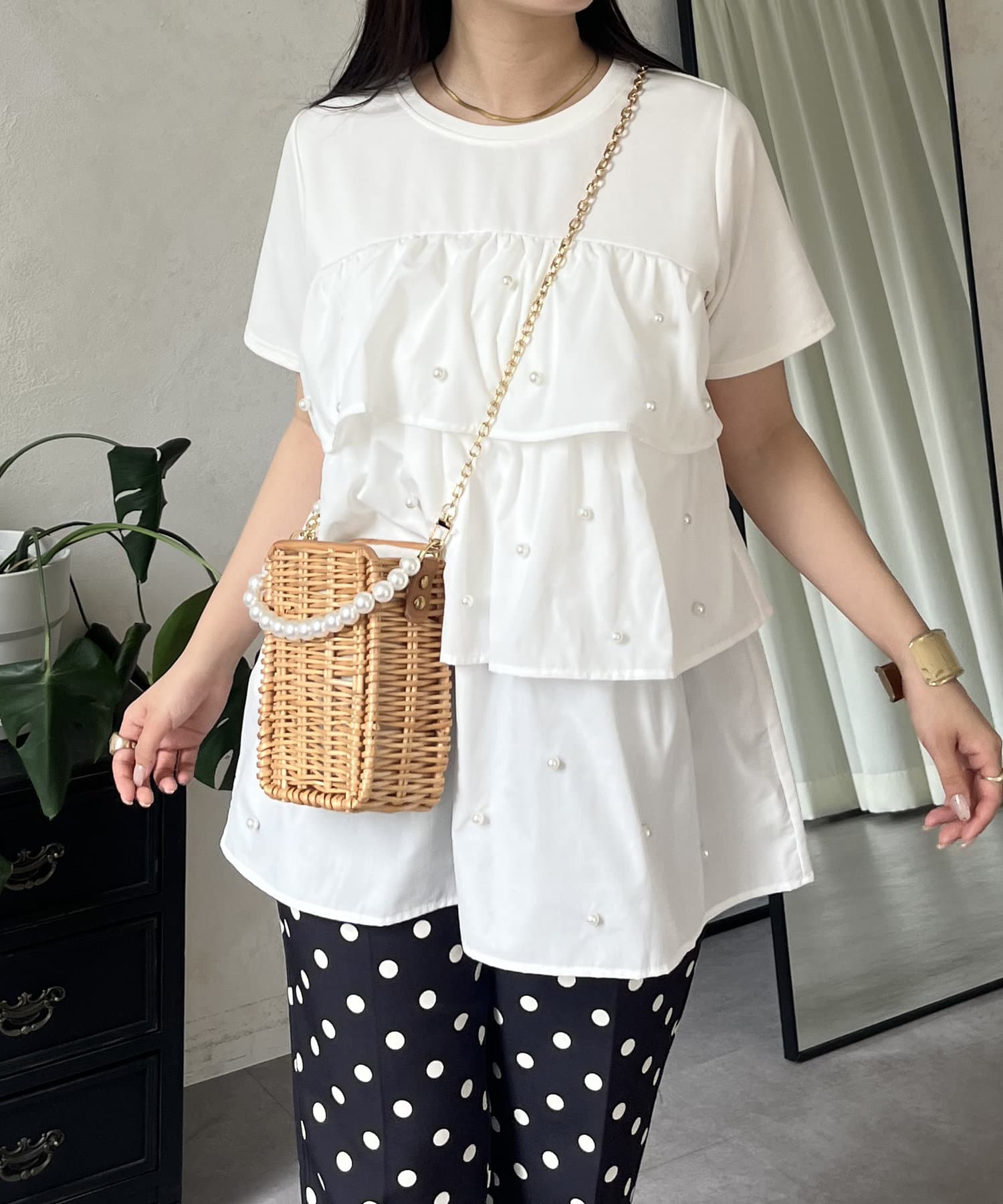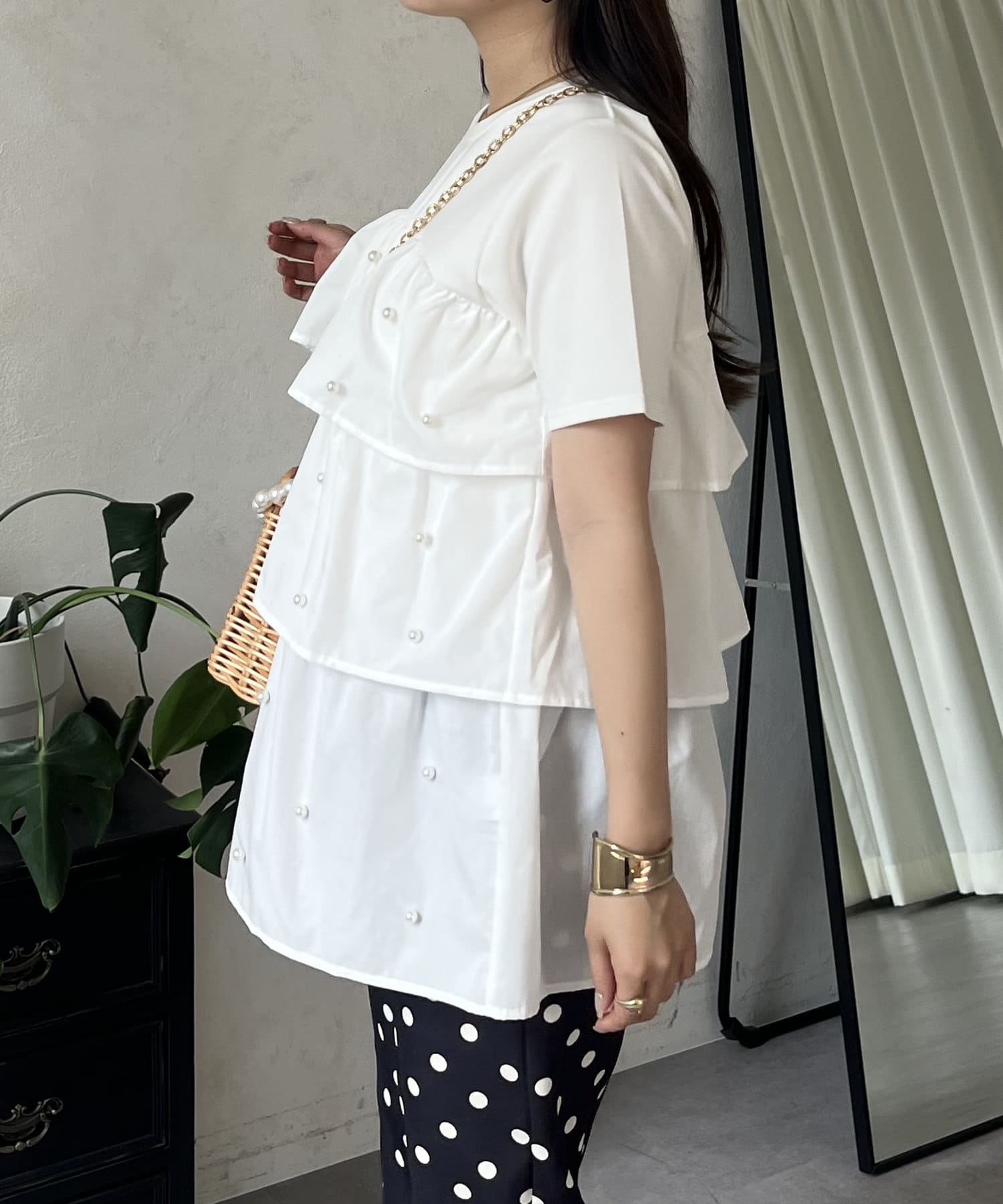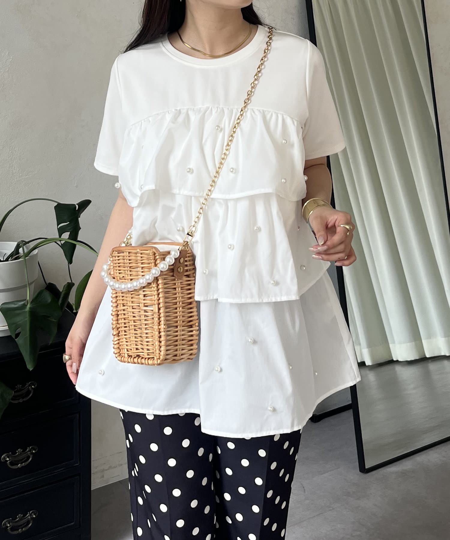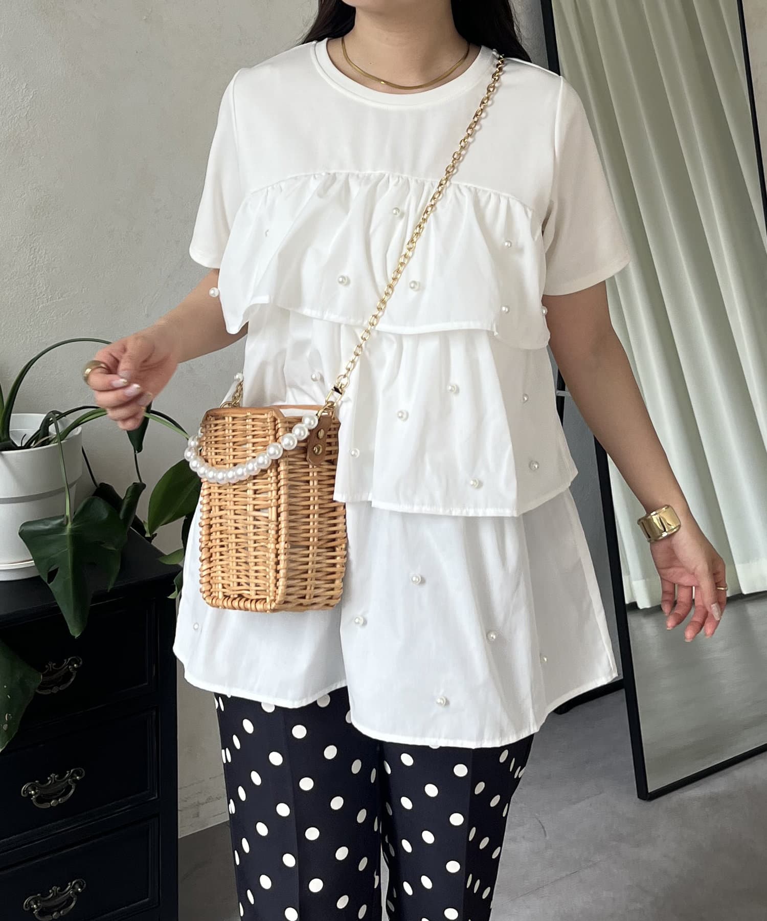 Tシャツ/パール/ティアード/大人可愛い/フェミニン