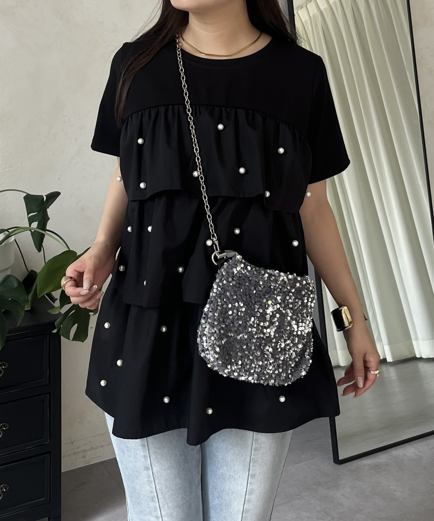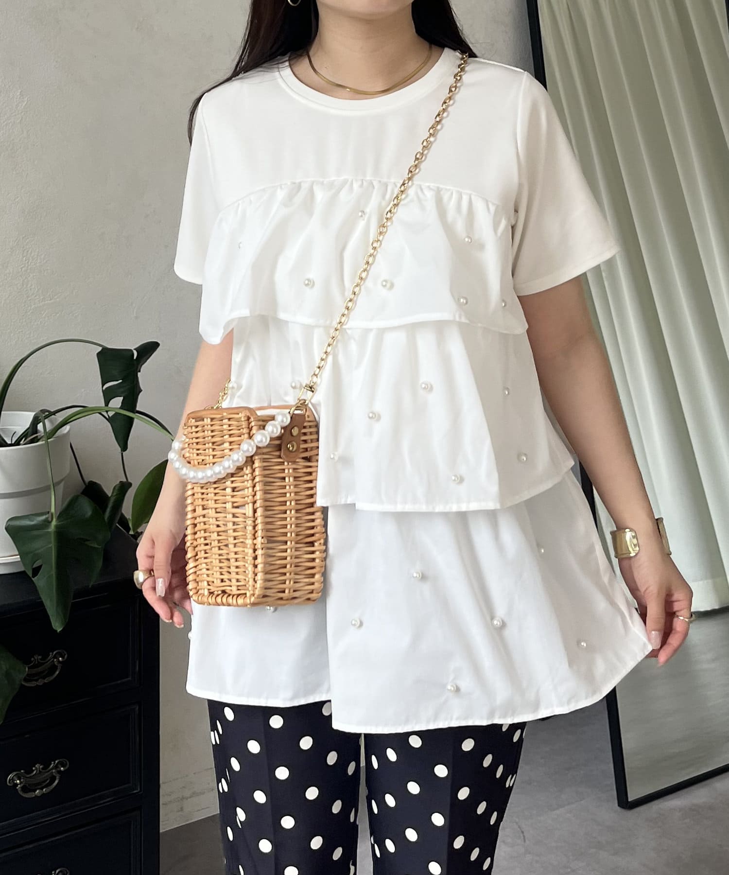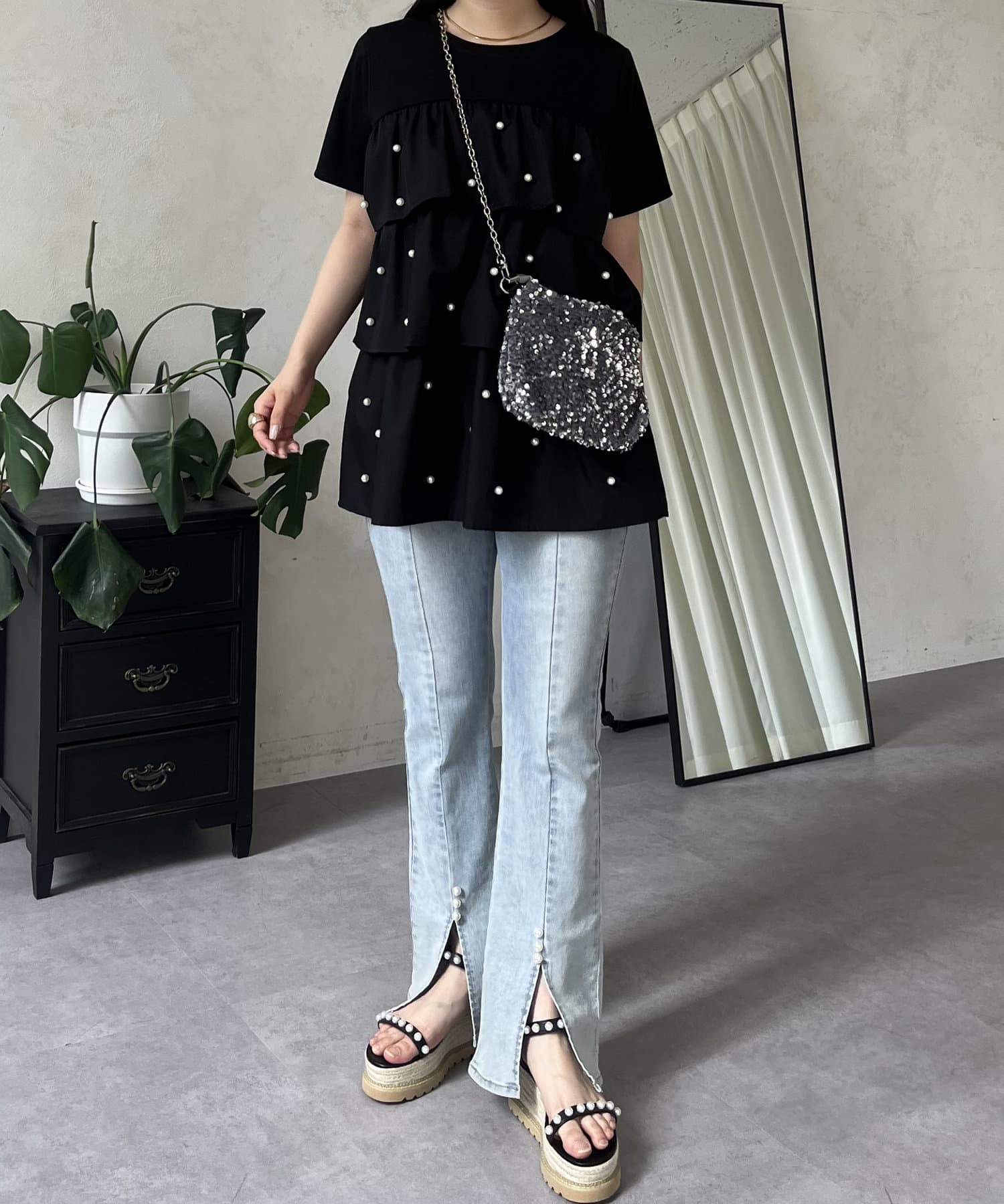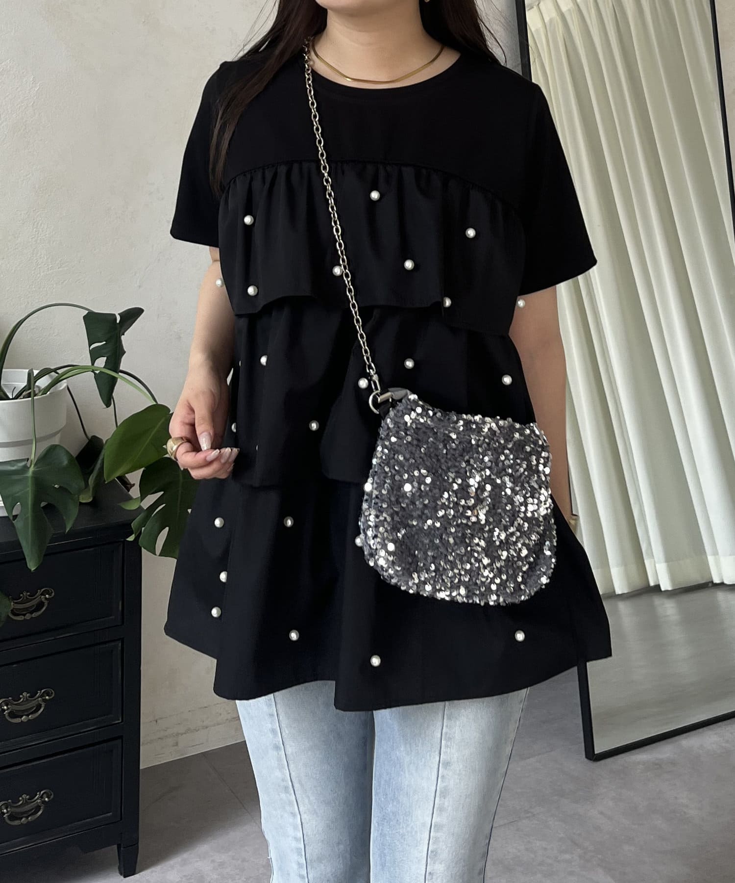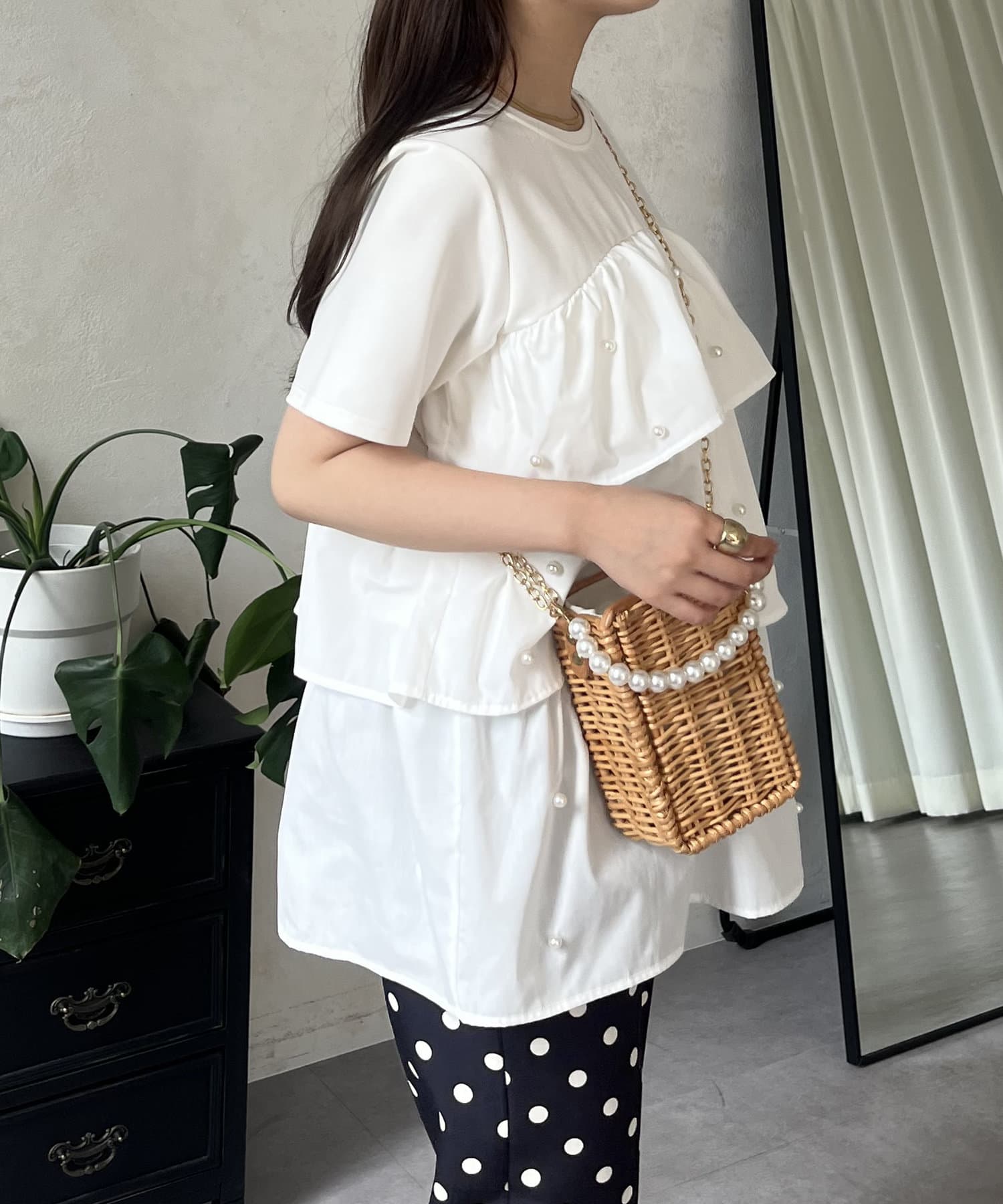 Tシャツ/パール/ティアード/大人可愛い/フェミニン