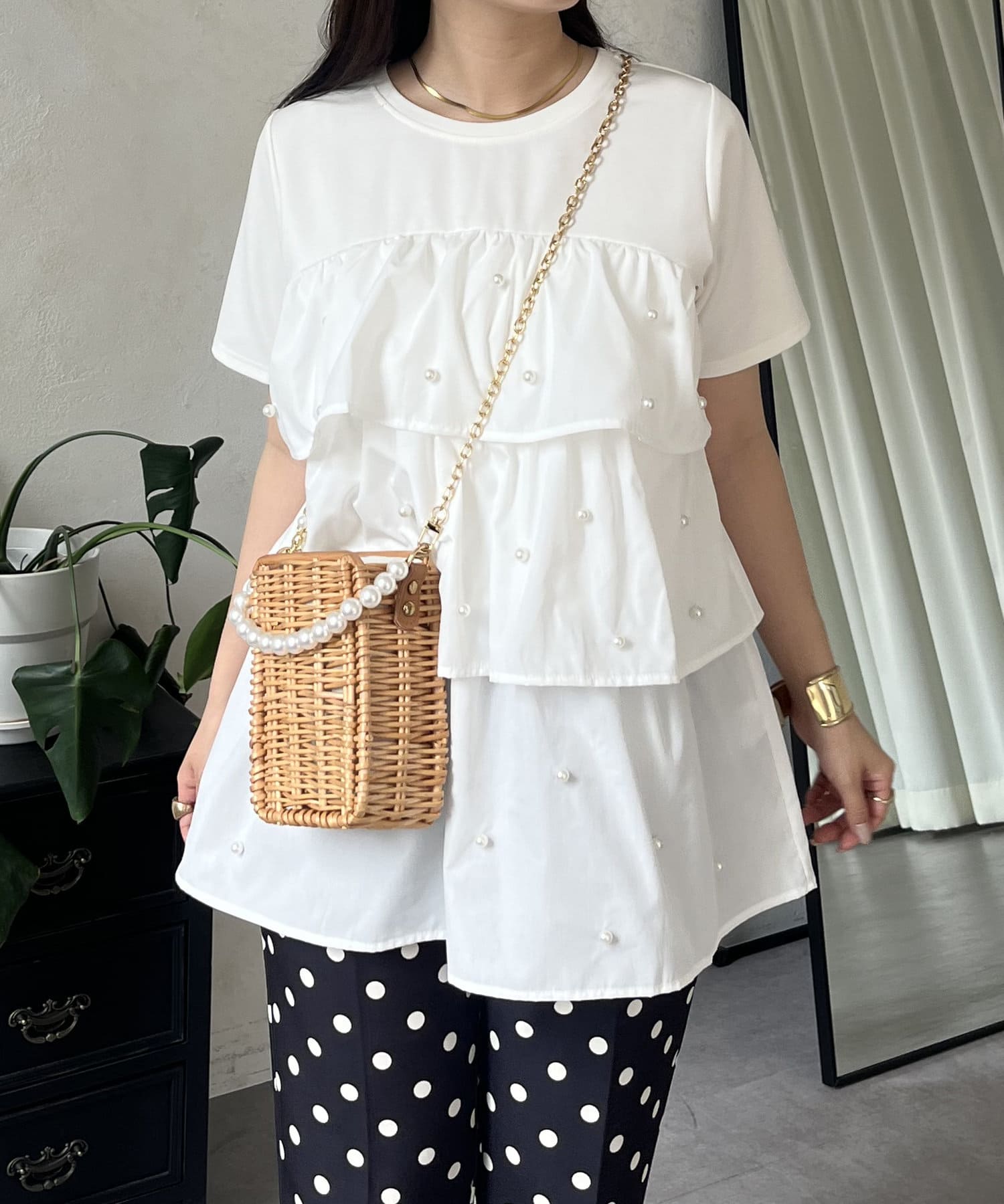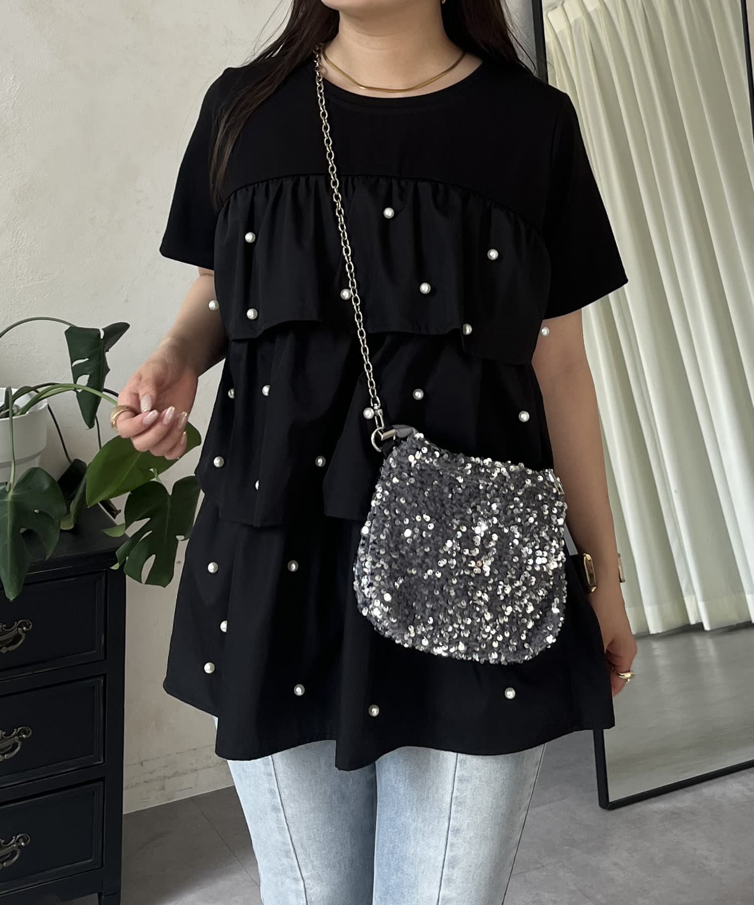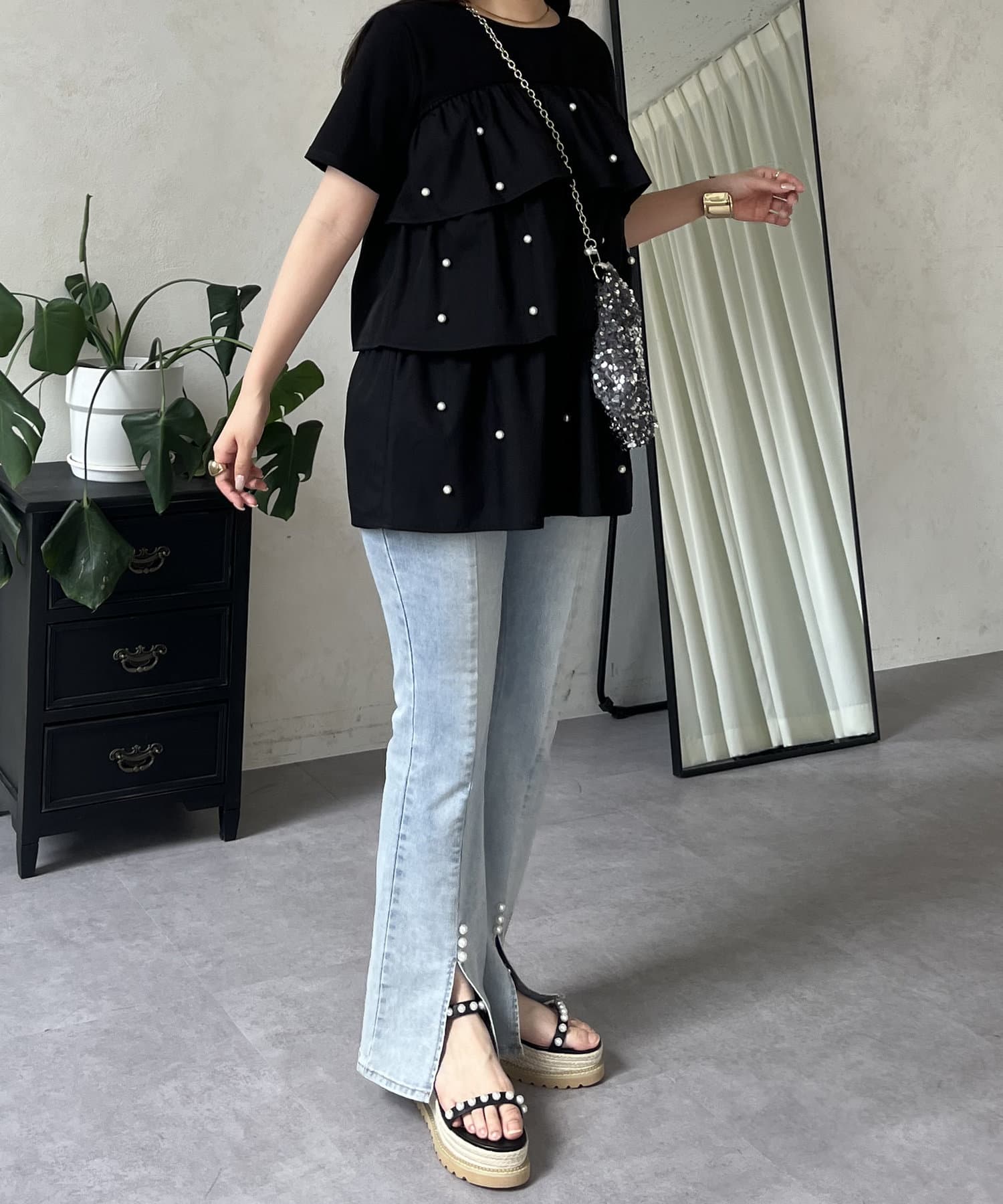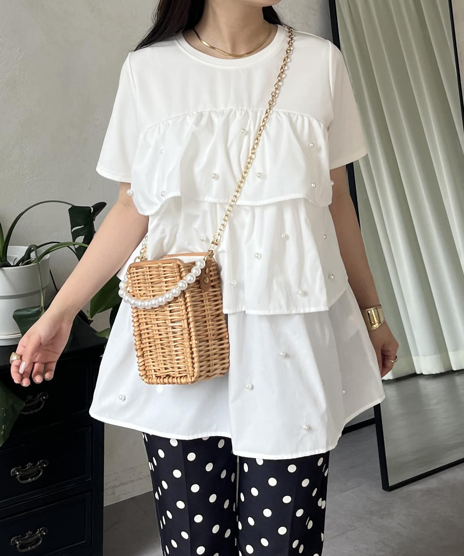 Tシャツ/パール/ティアード/大人可愛い/フェミニン