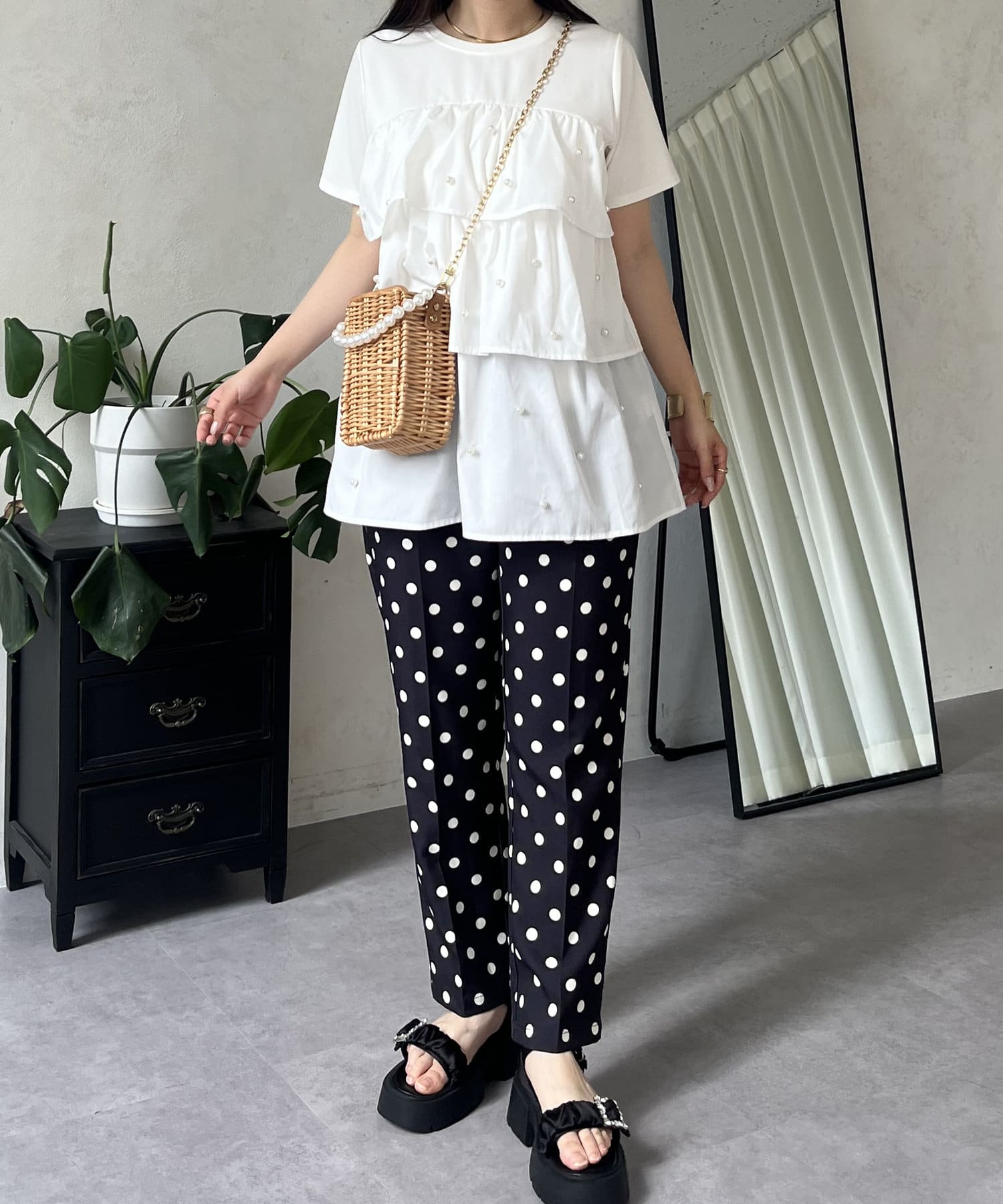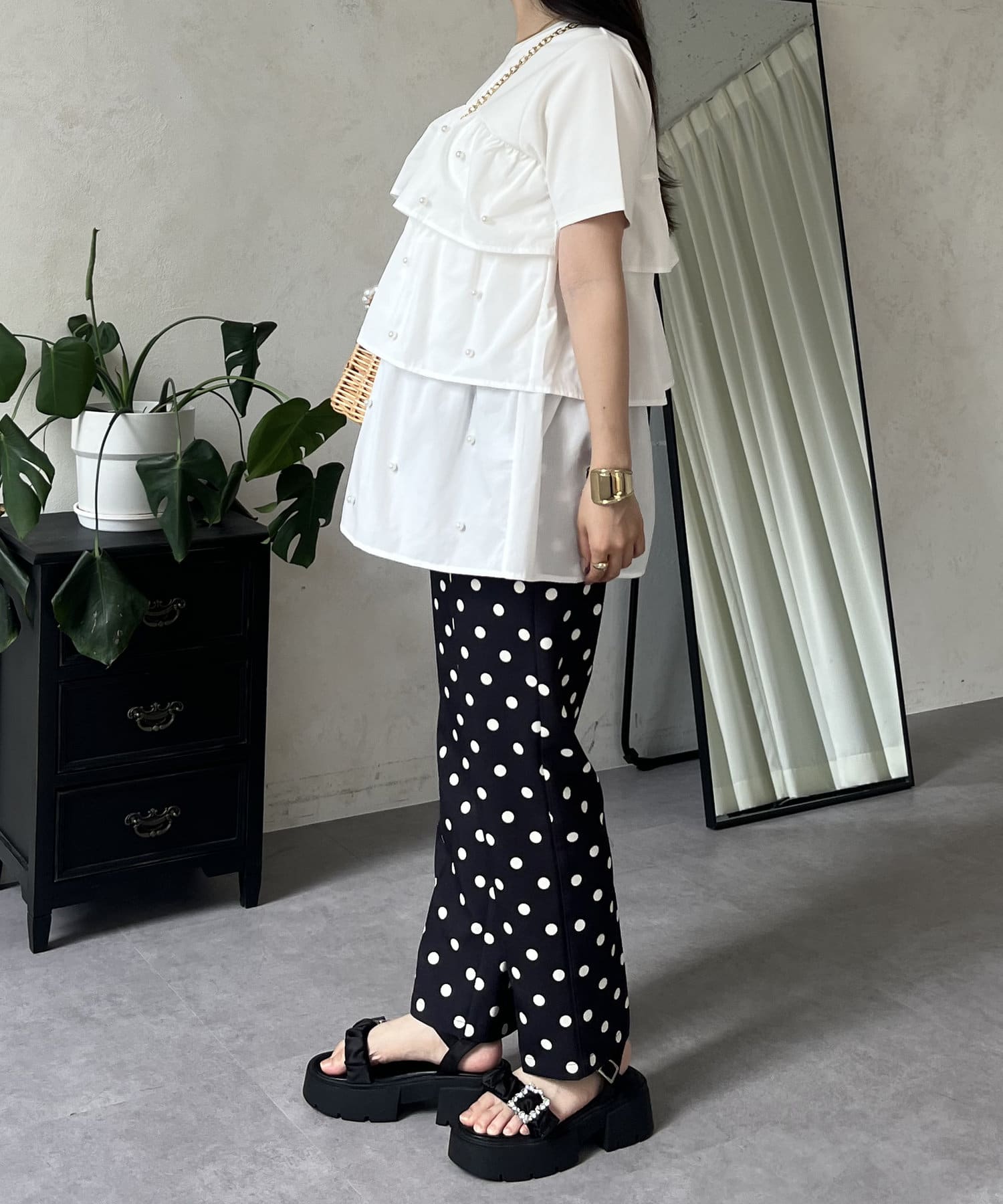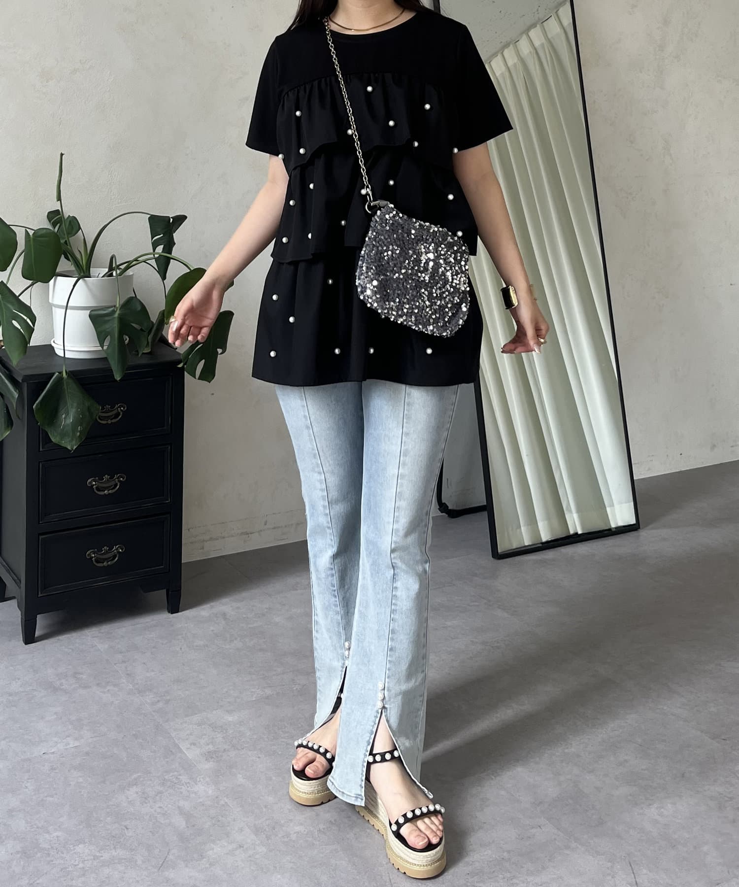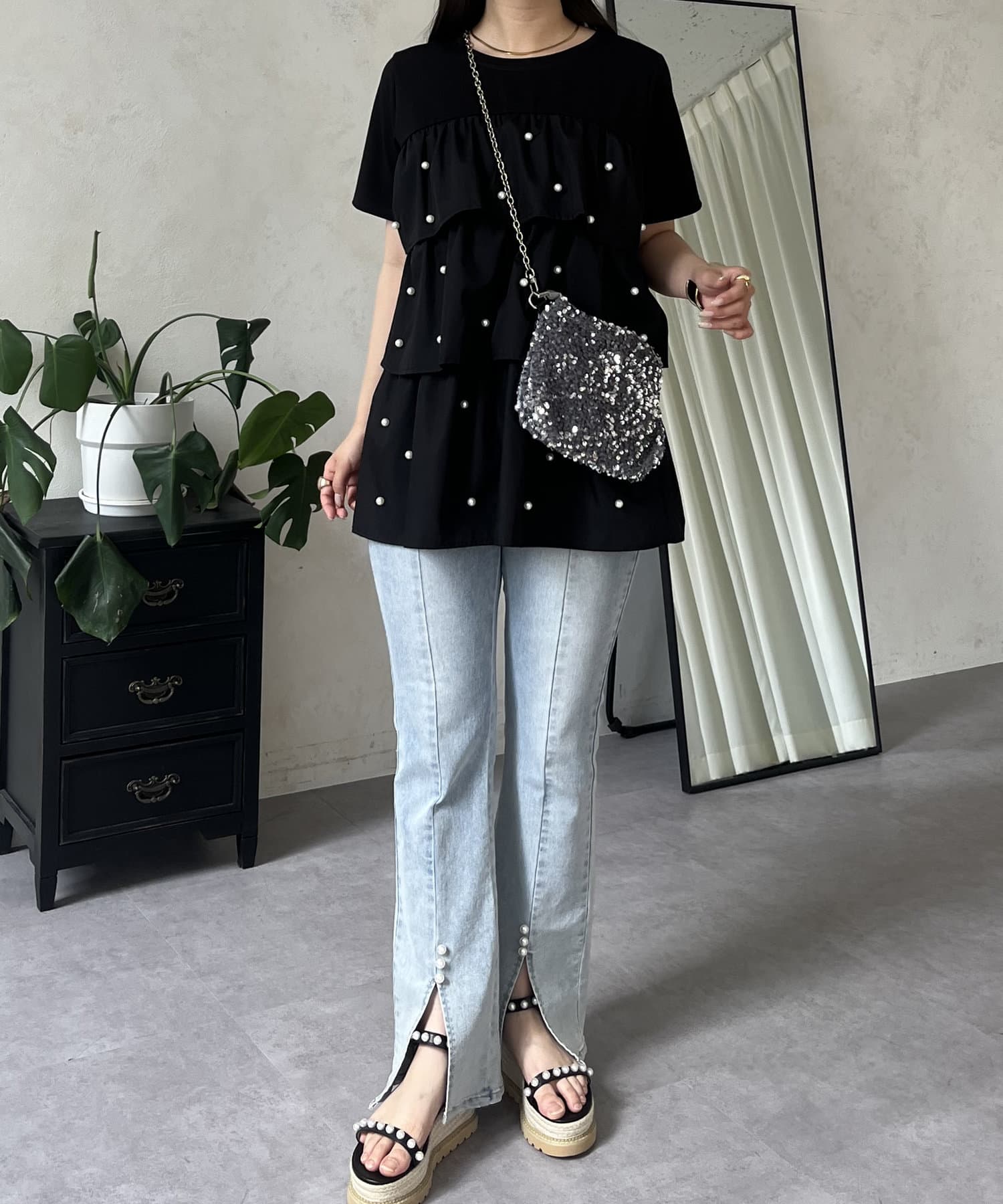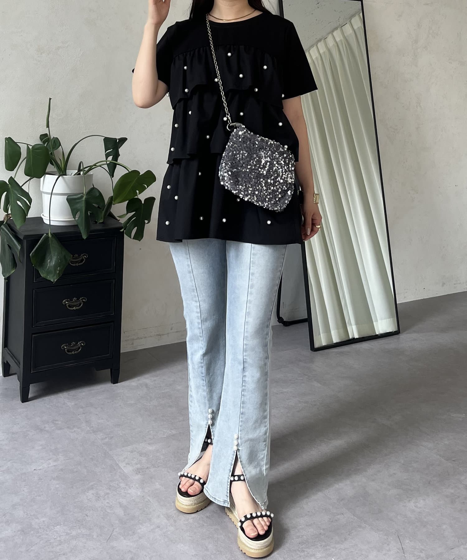 Tシャツ/パール/ティアード/大人可愛い/フェミニン