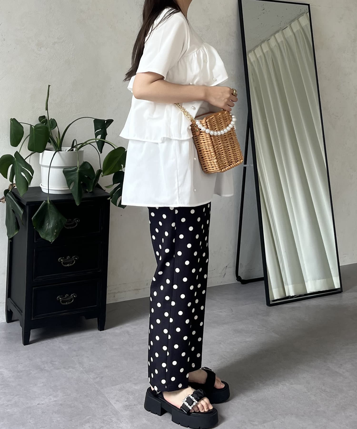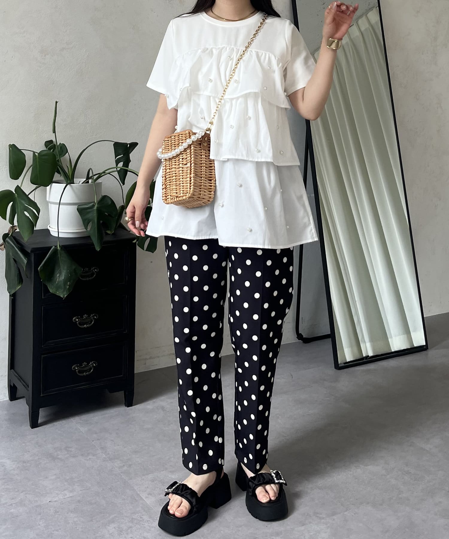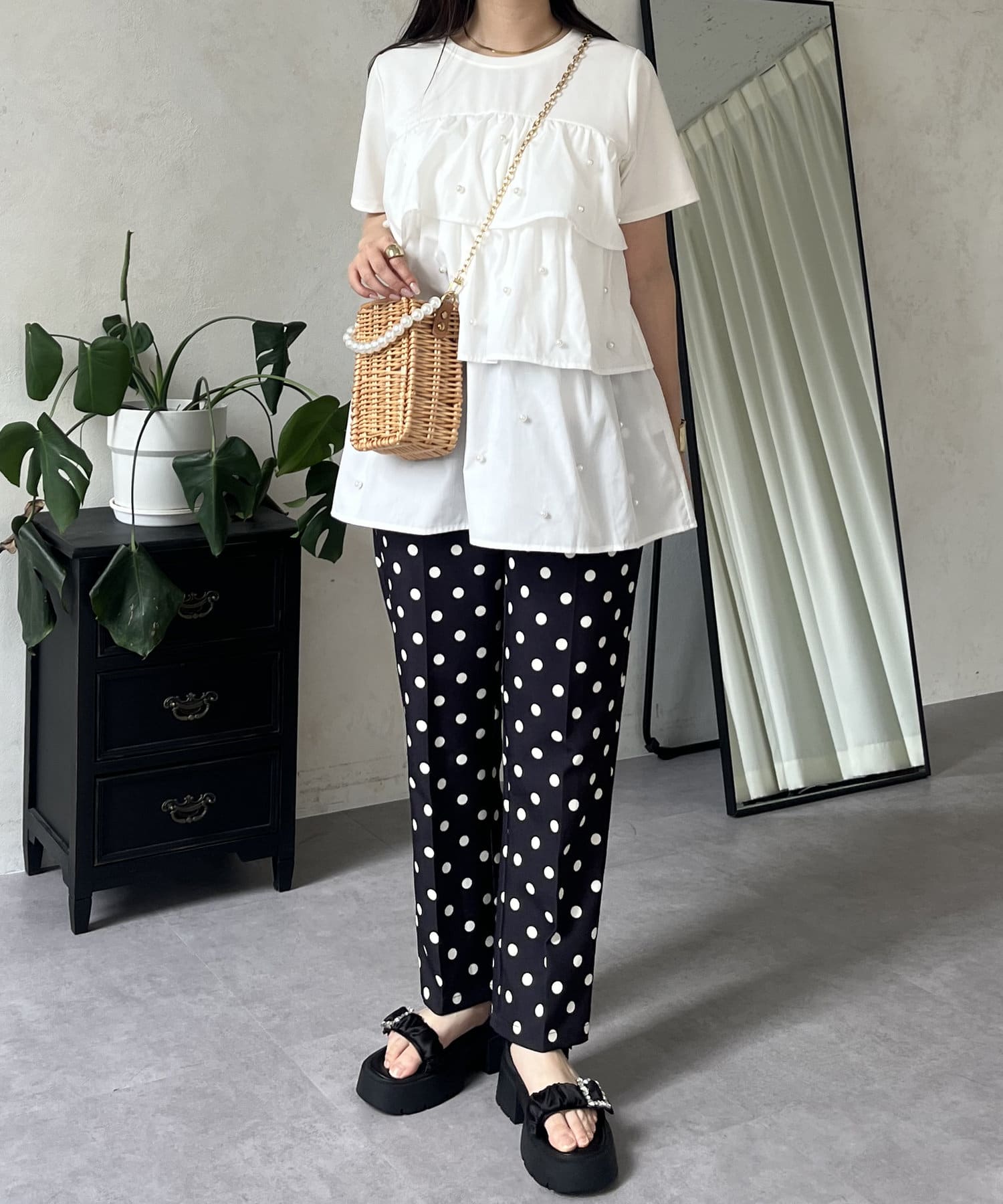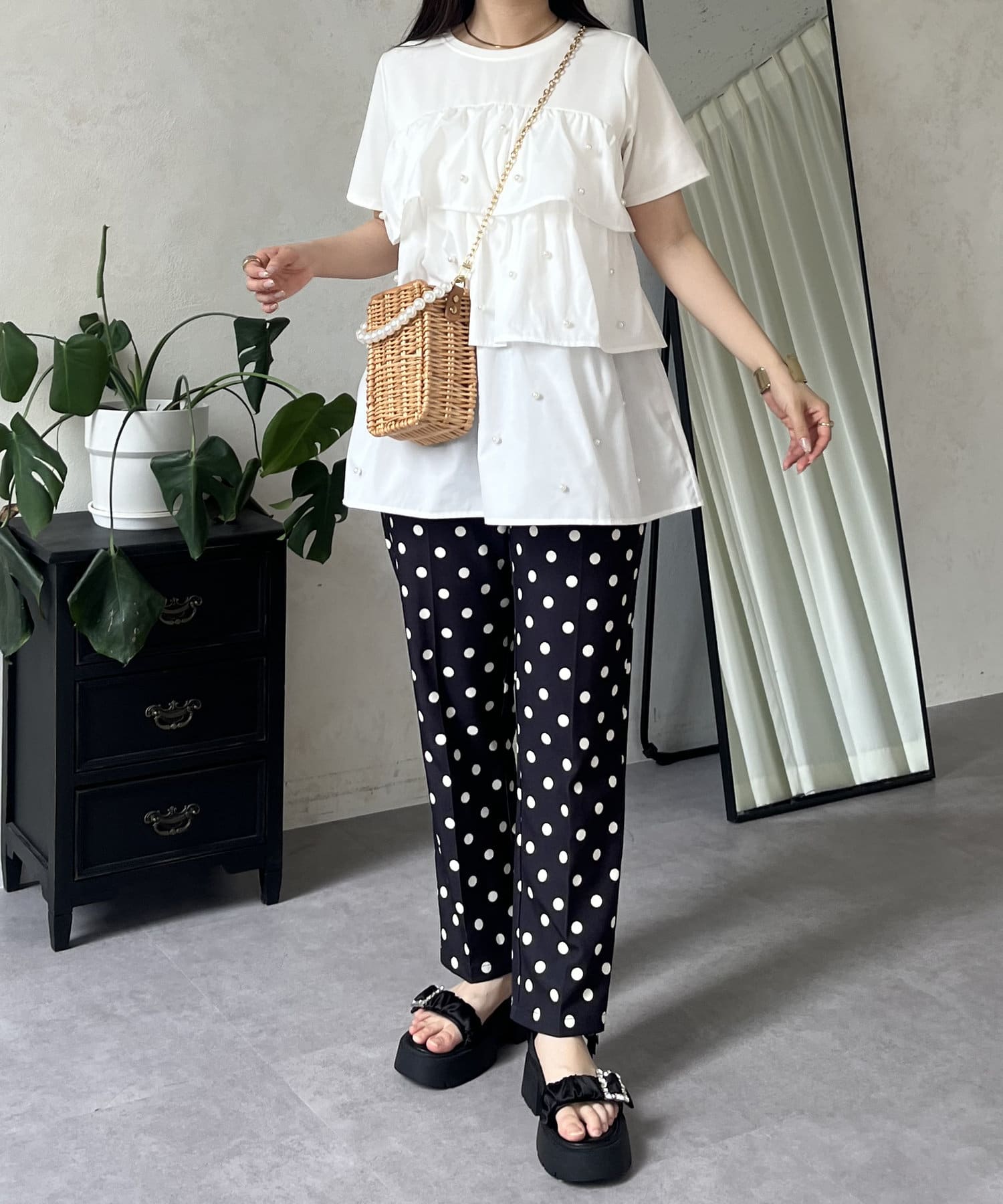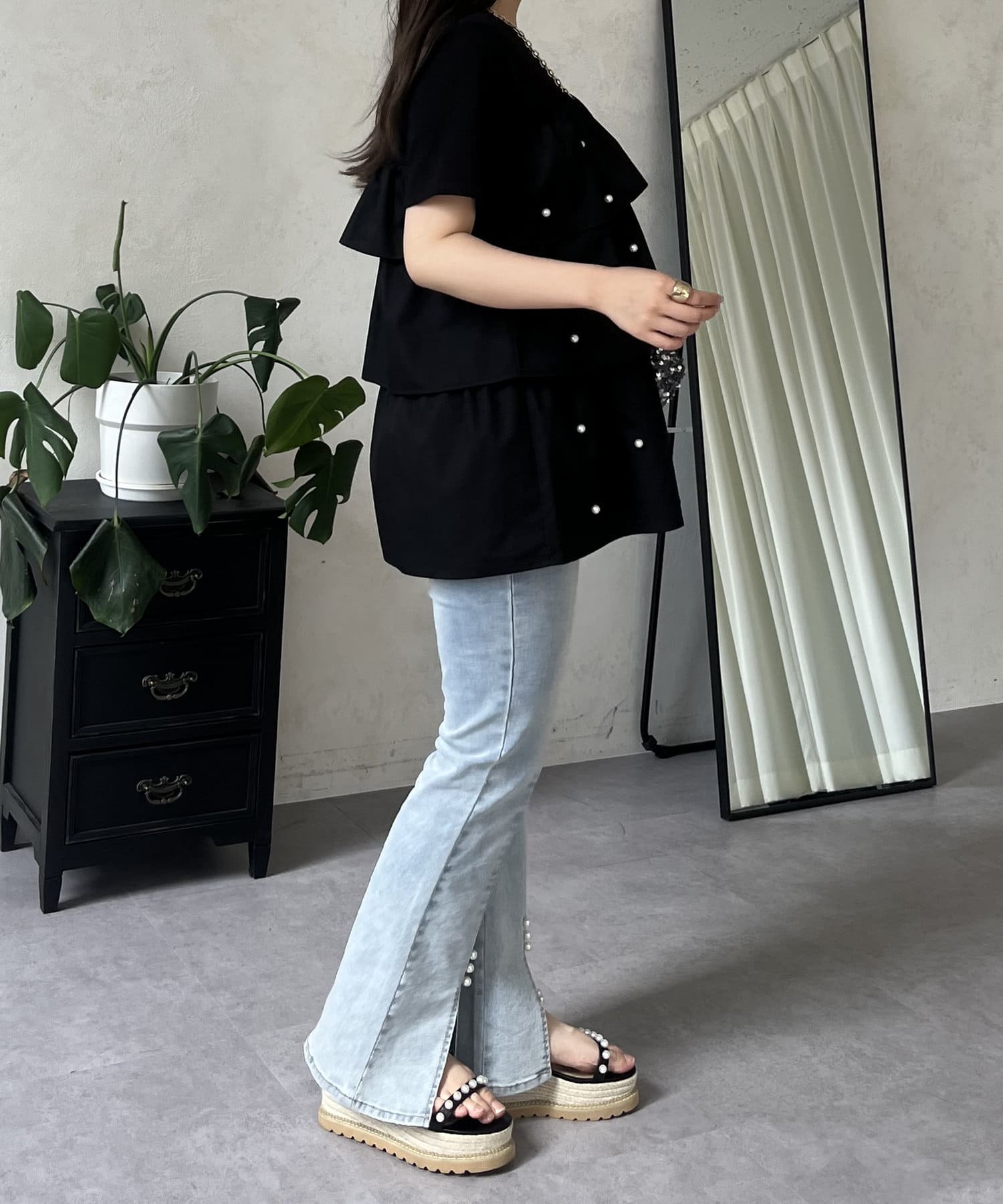 Tシャツ/パール/ティアード/大人可愛い/フェミニン