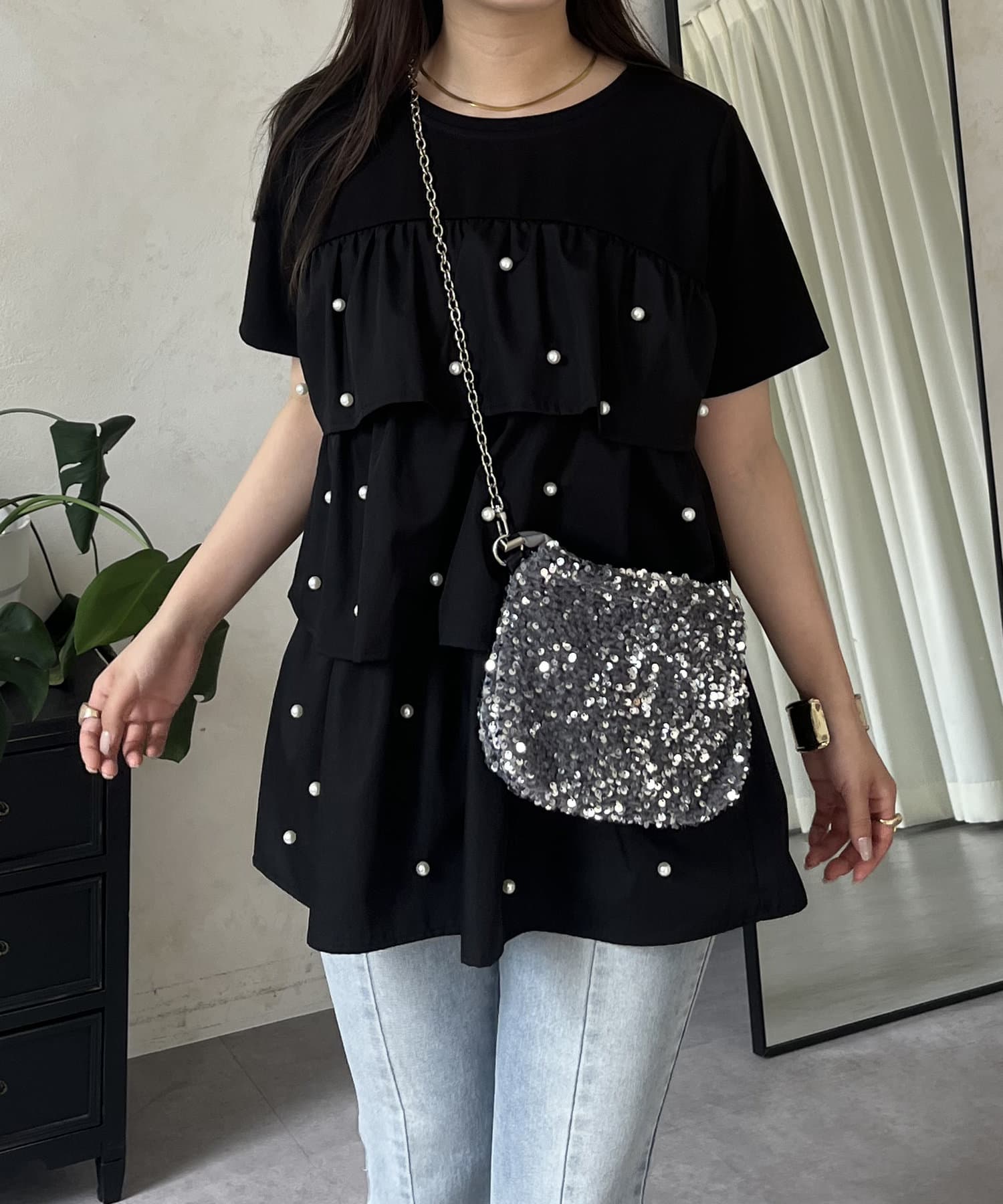 パールフリルティアードTシャツ