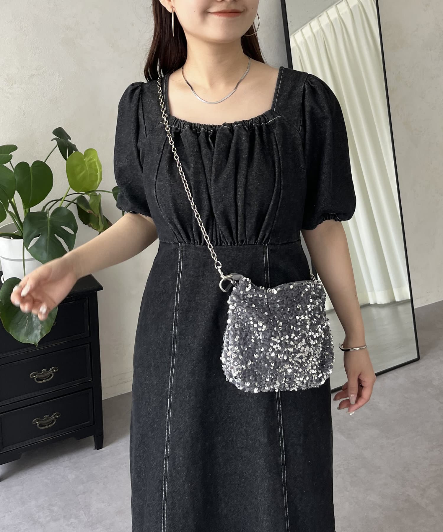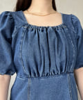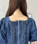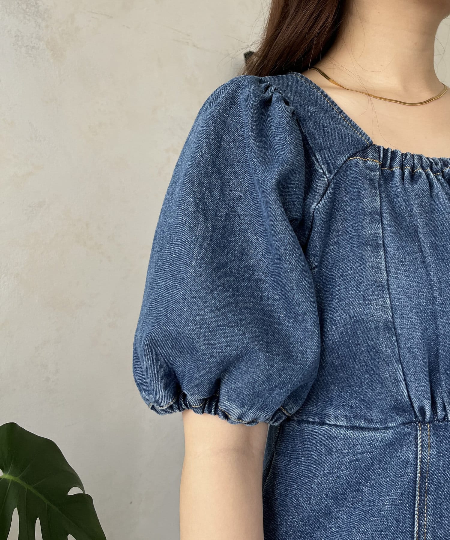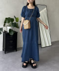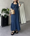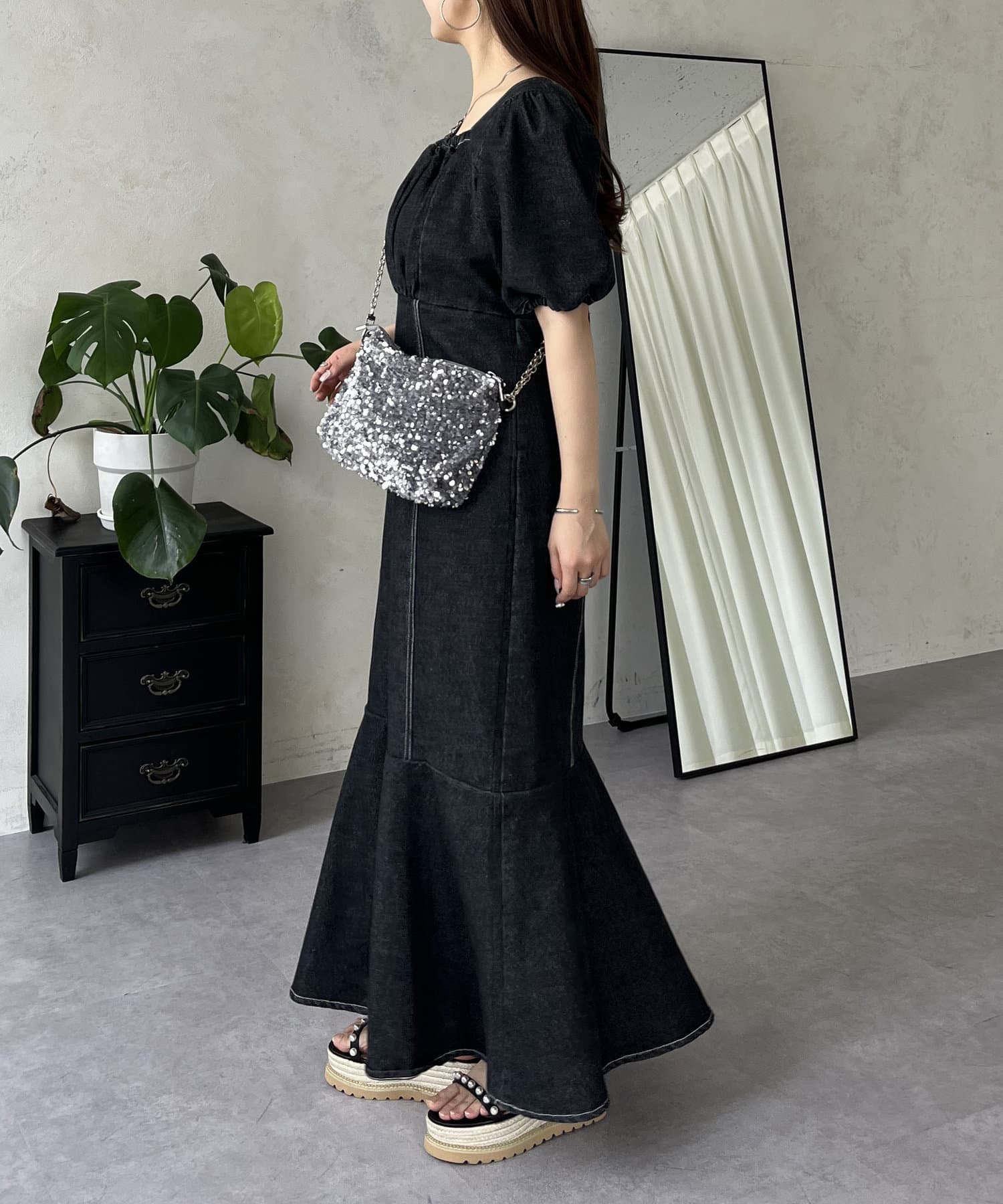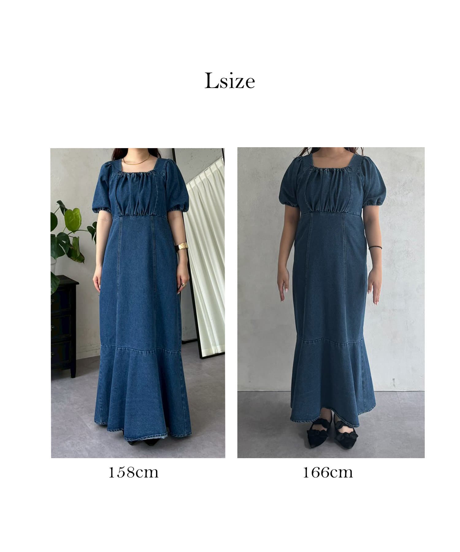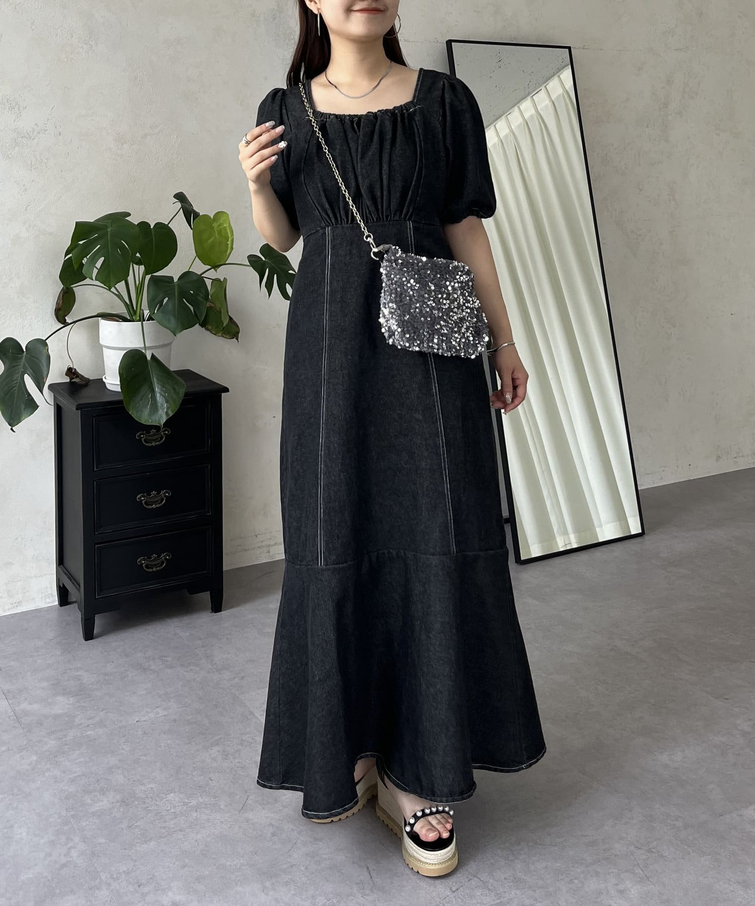 カジュアルでフェミニンなマーメードシルエットのデニムワンピース