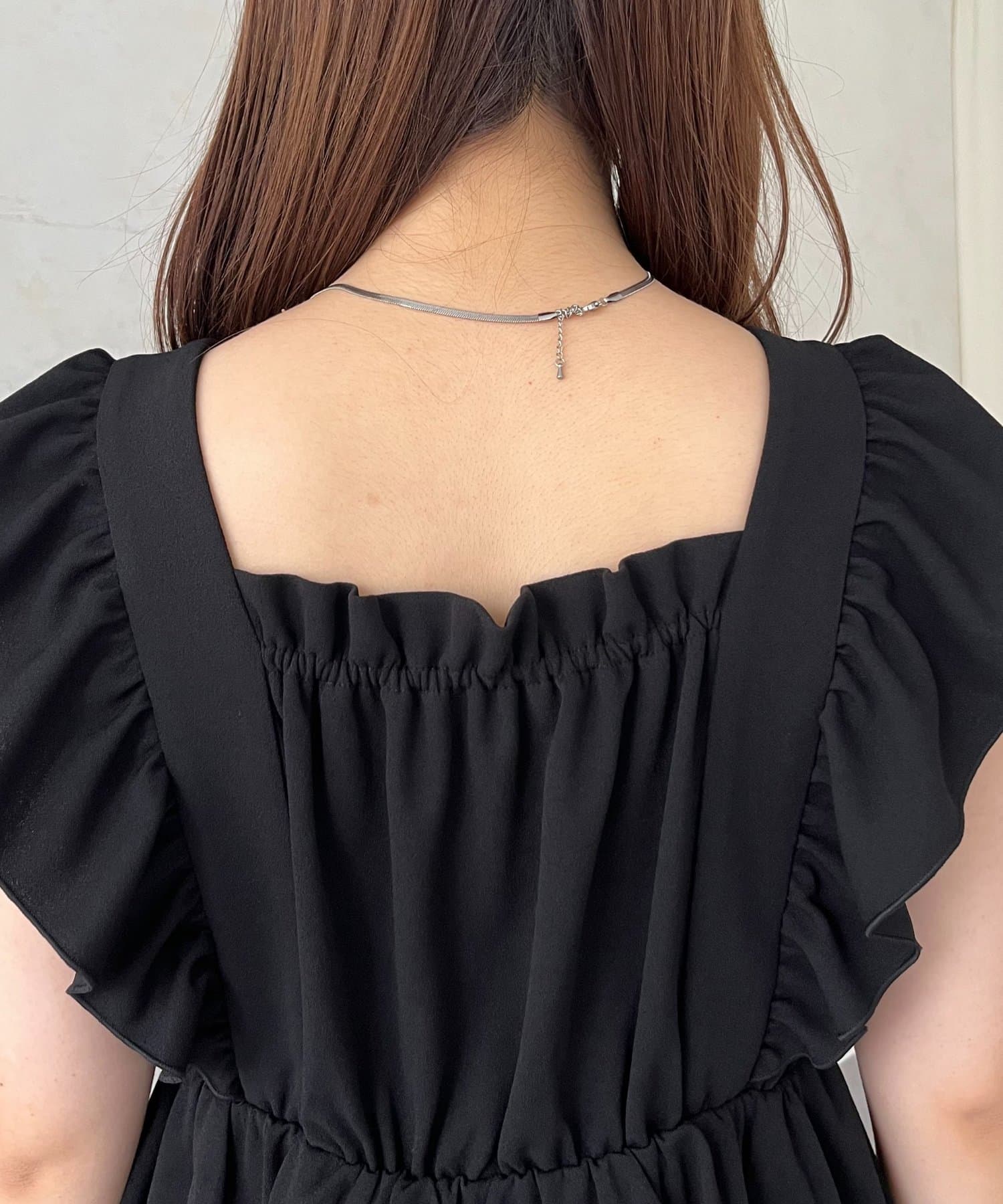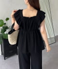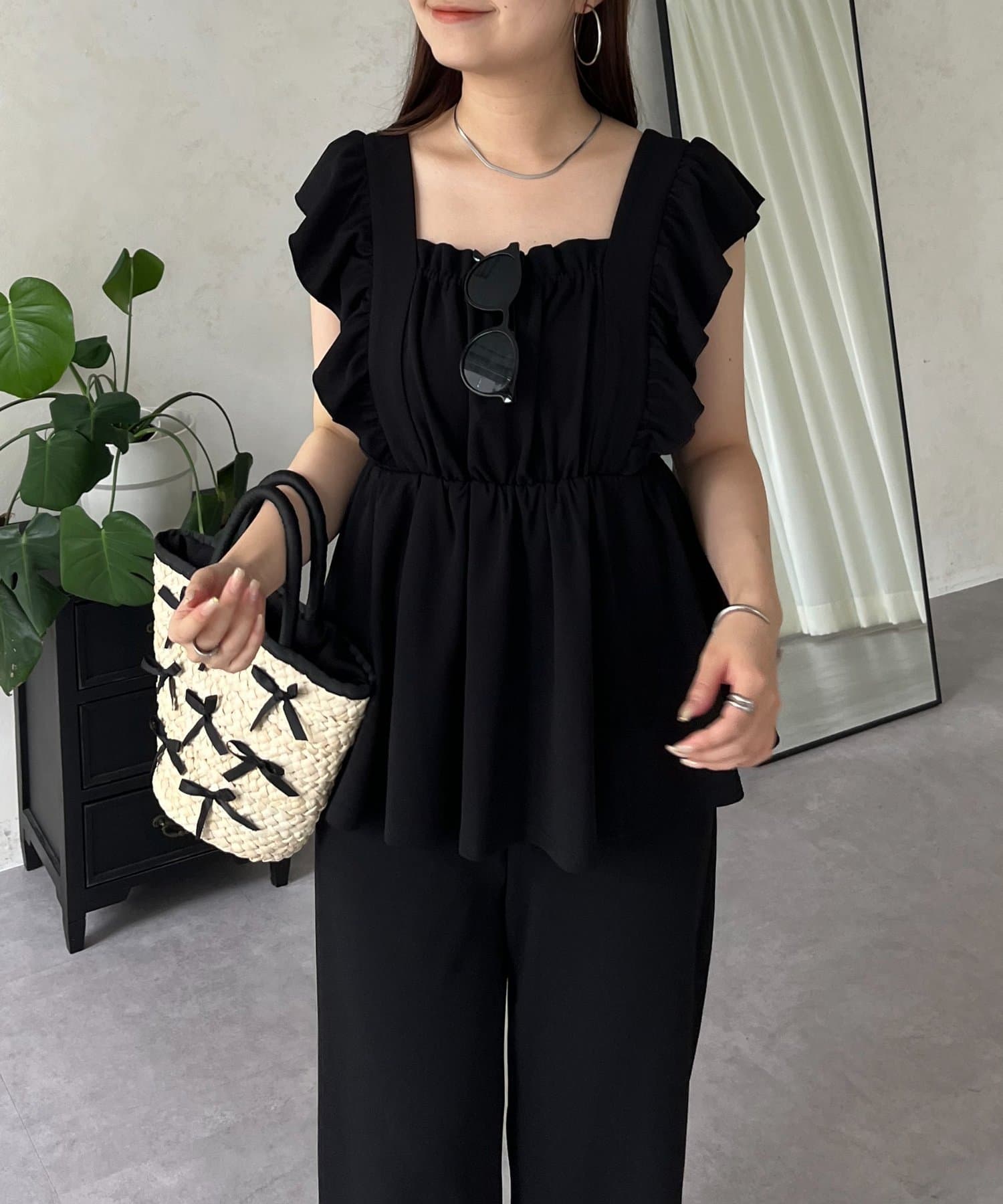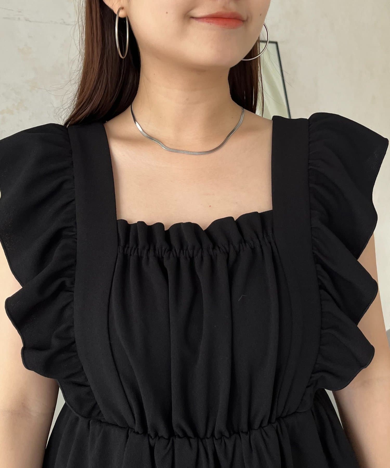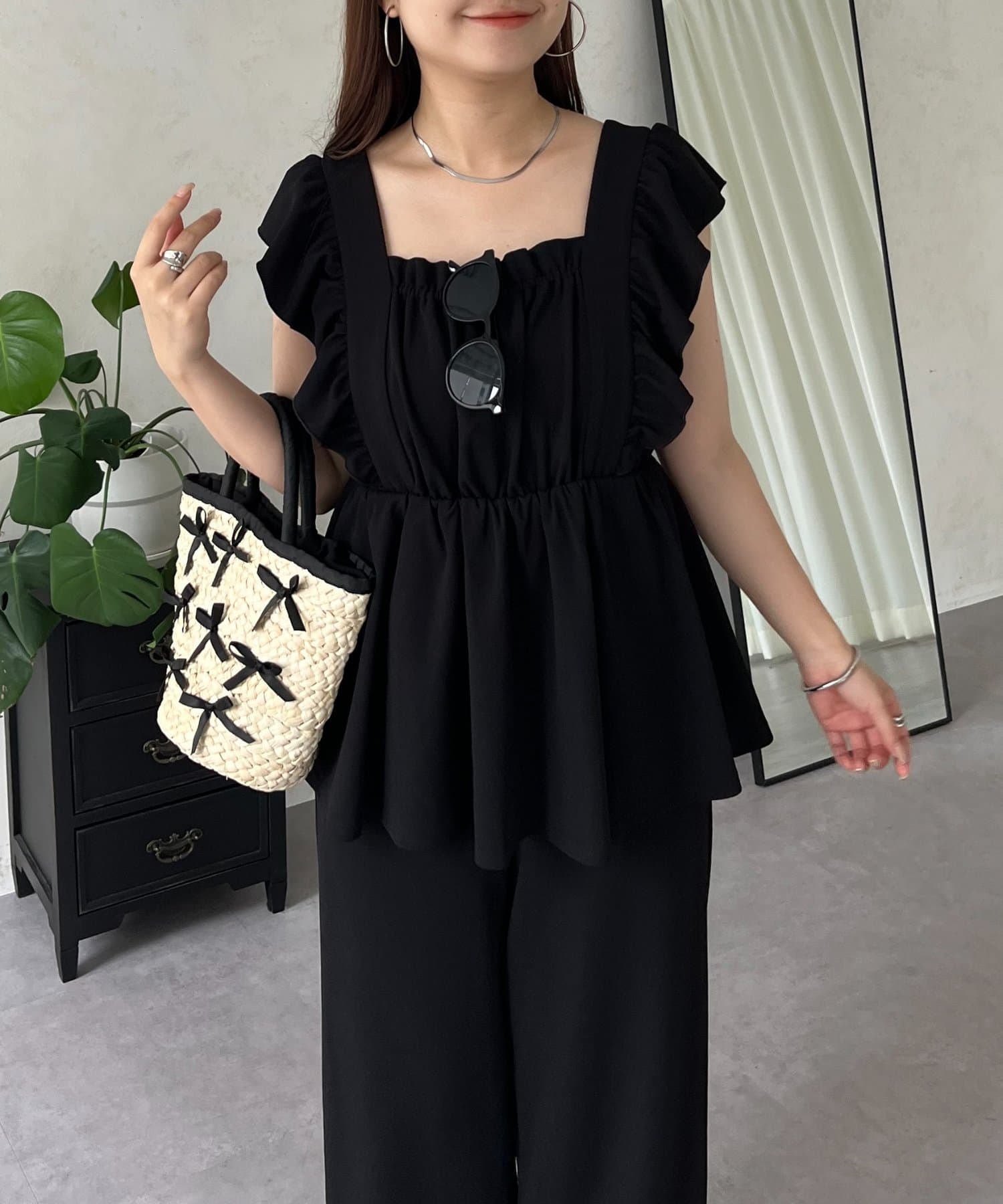 ●肩フリルやスクエアネックが女性らしさを出してくれるポイント!