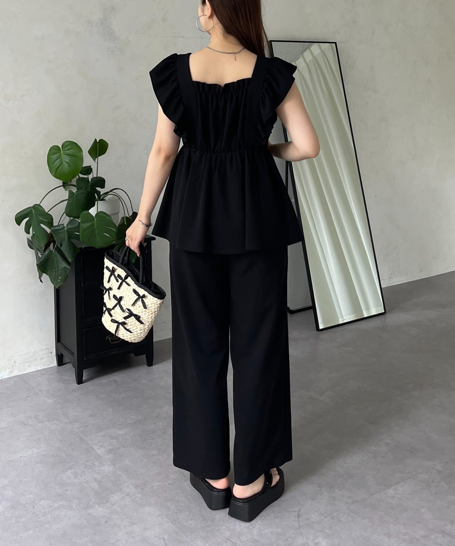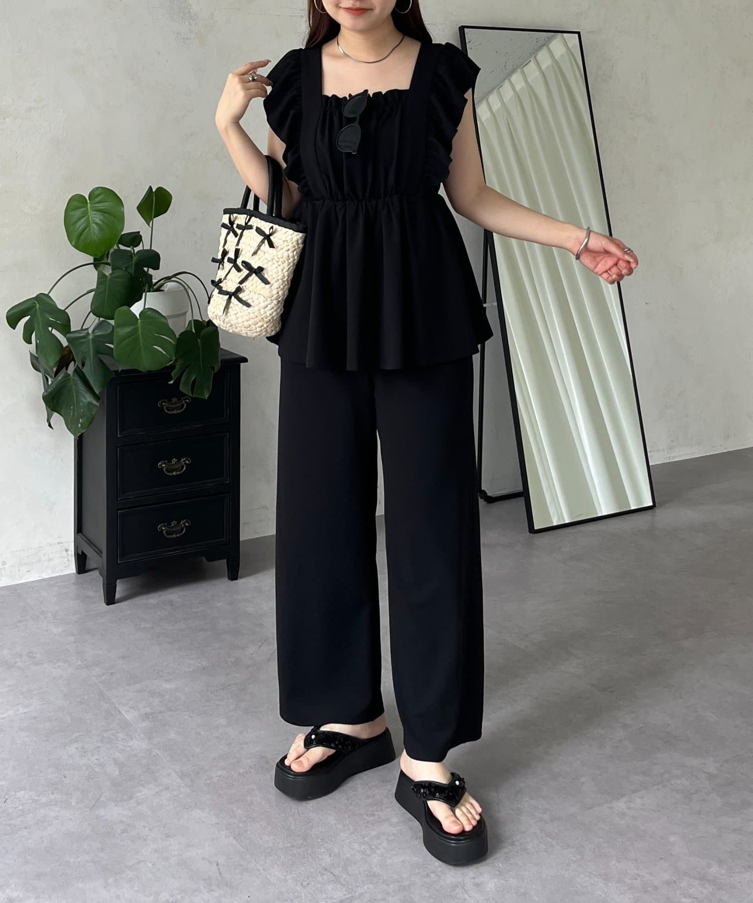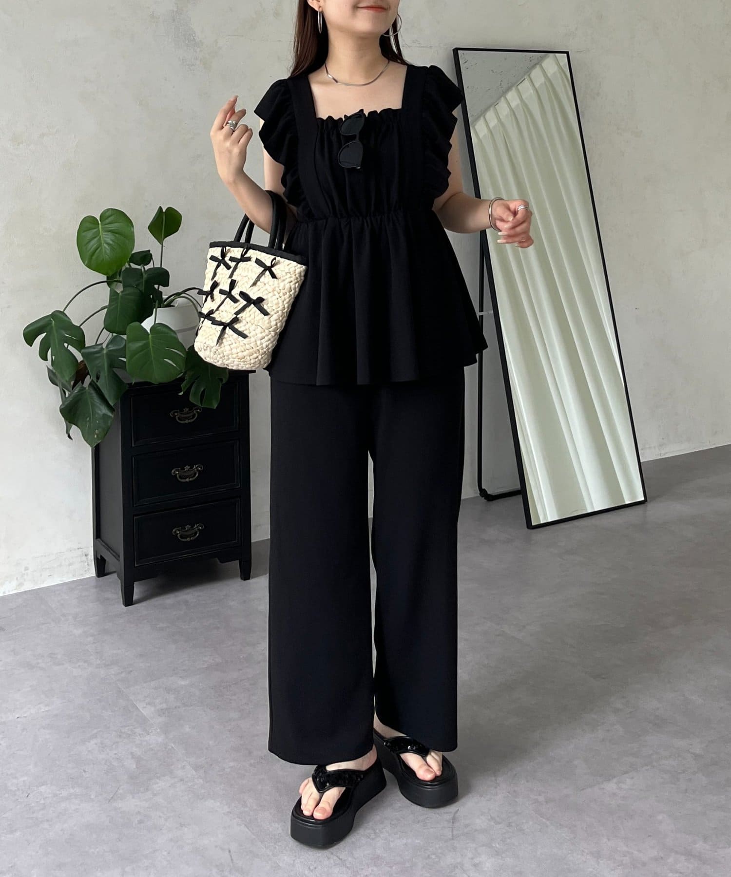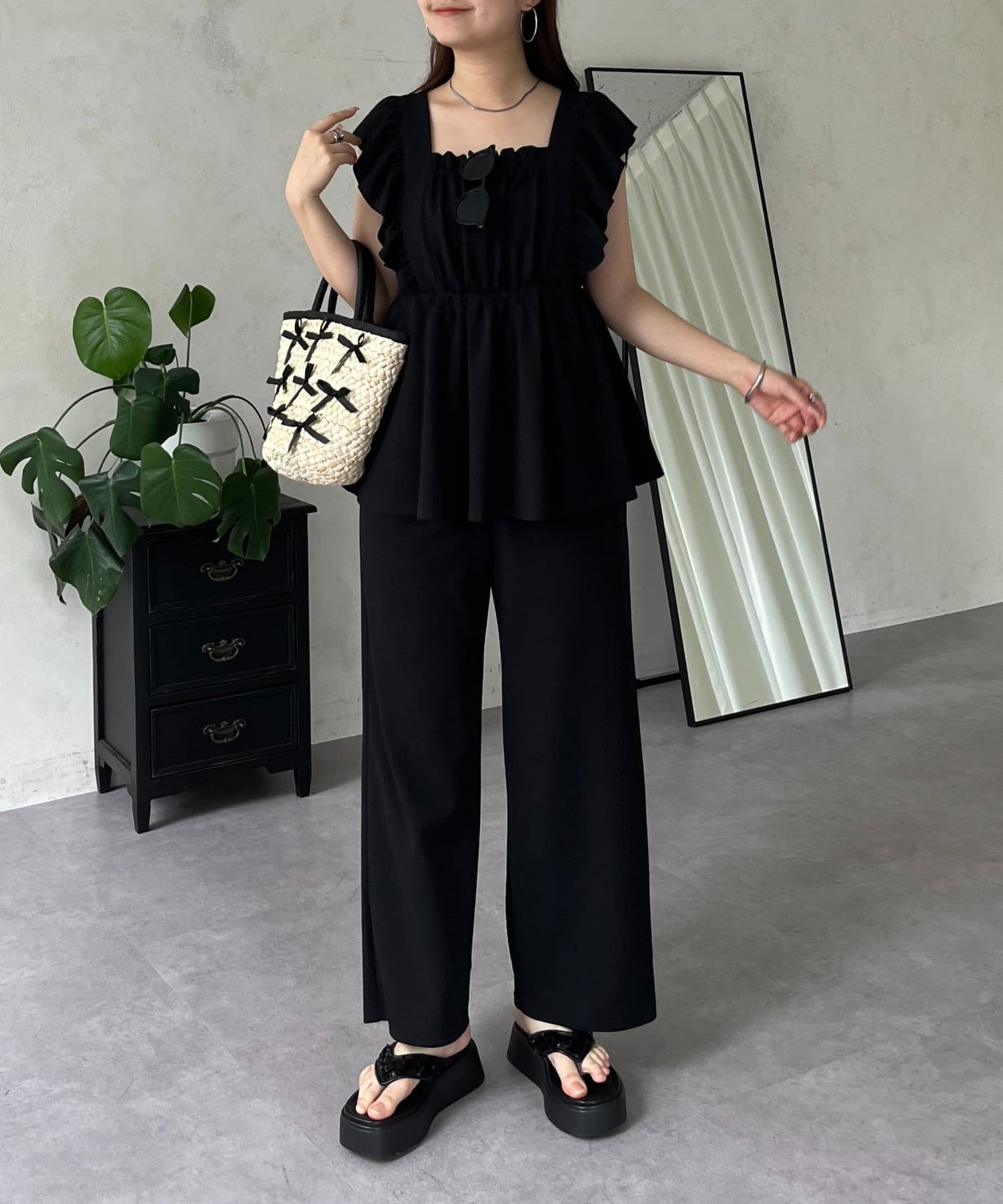 ●肩フリルやスクエアネックが女性らしさを出してくれるポイント!