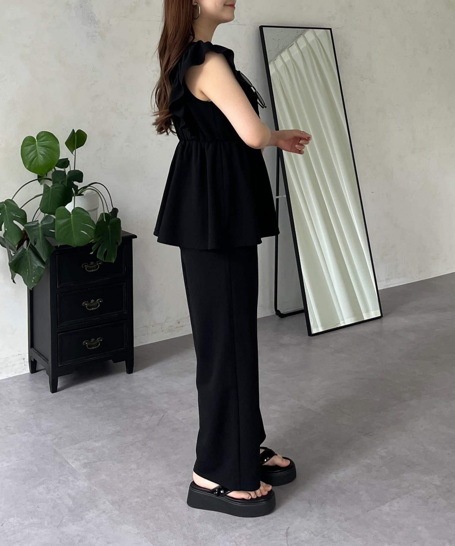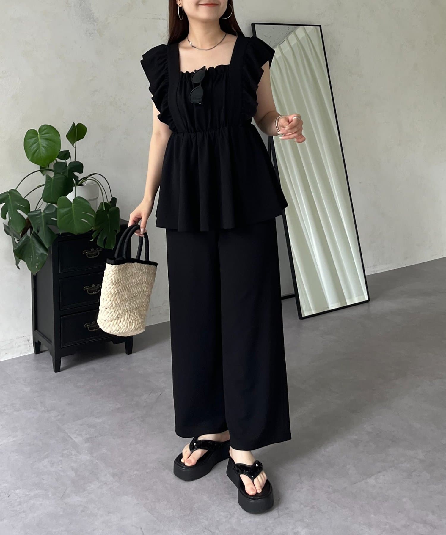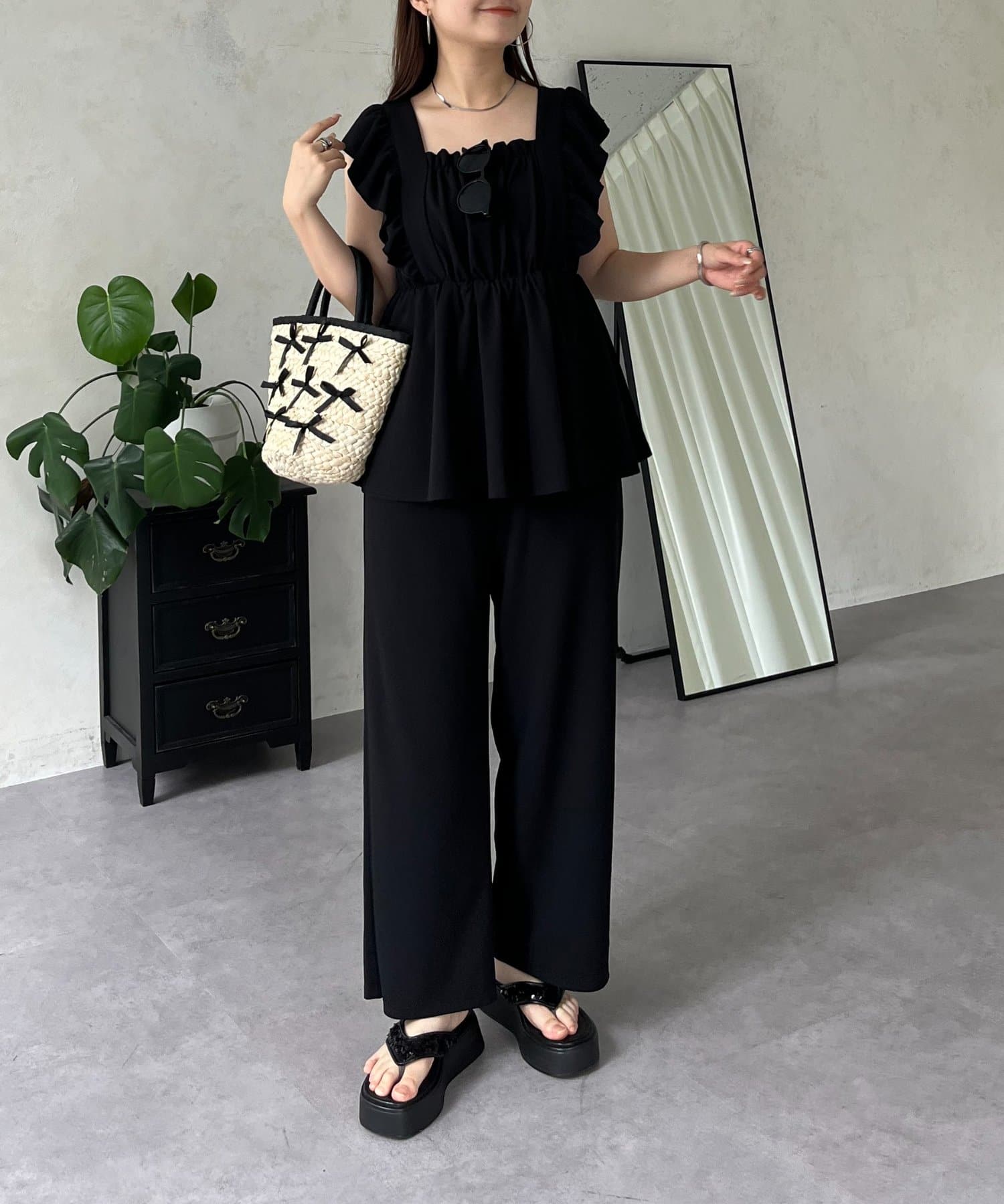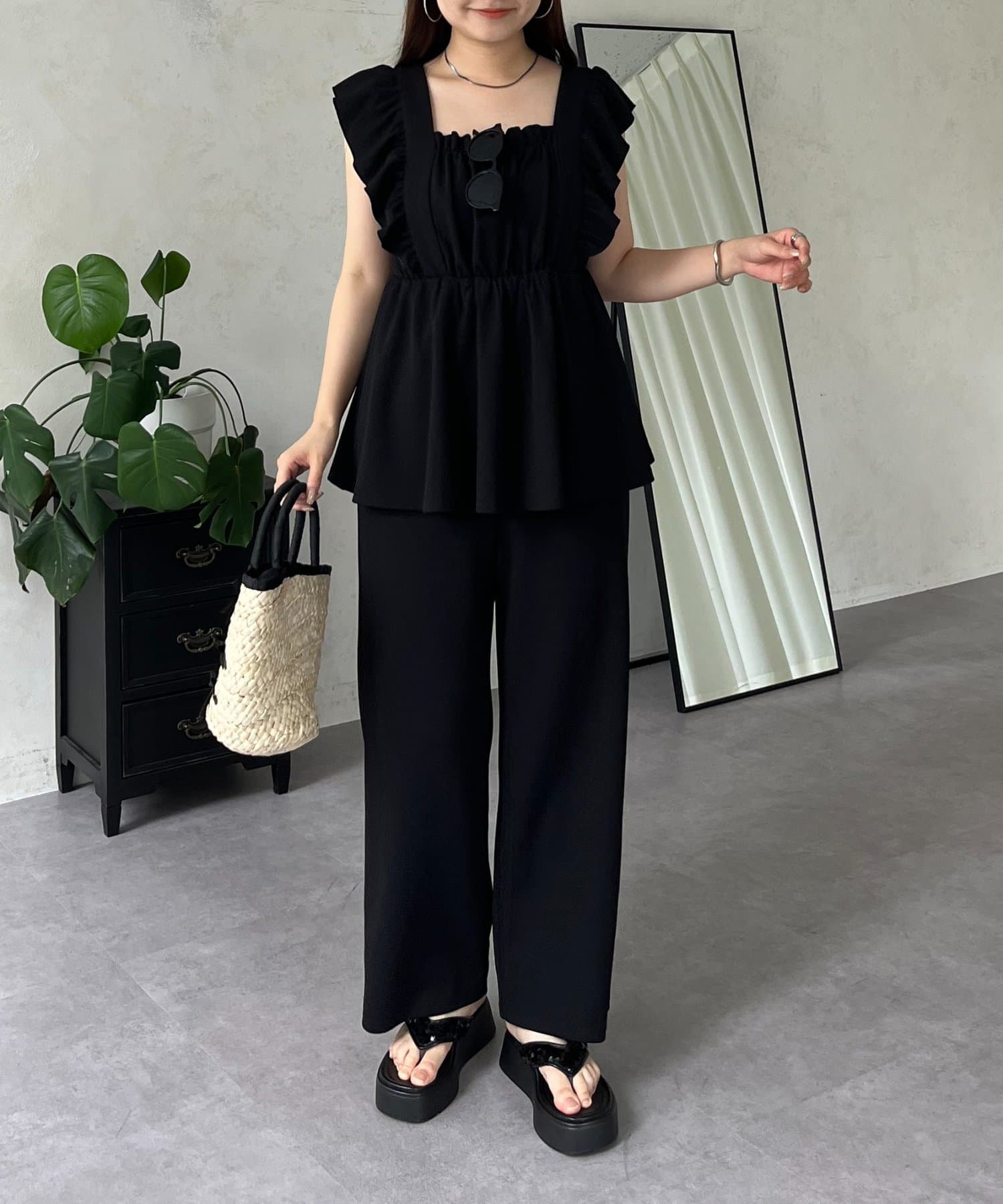 ●肩フリルやスクエアネックが女性らしさを出してくれるポイント!