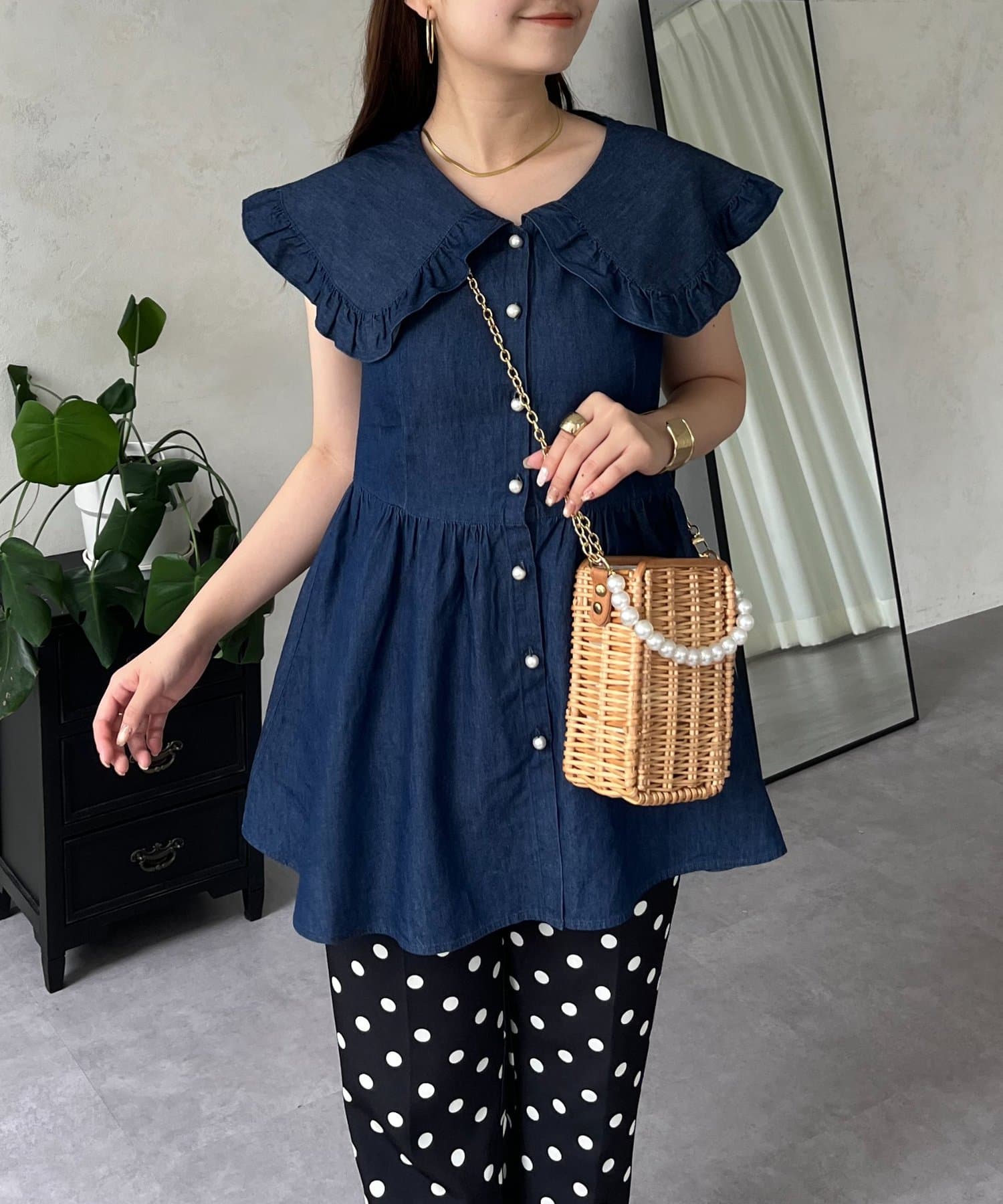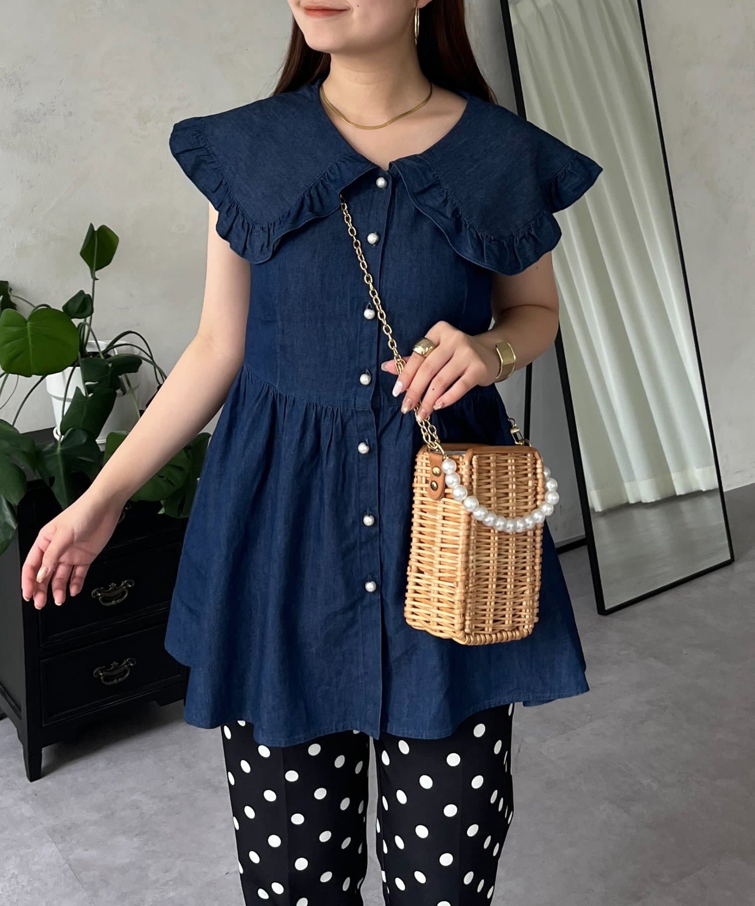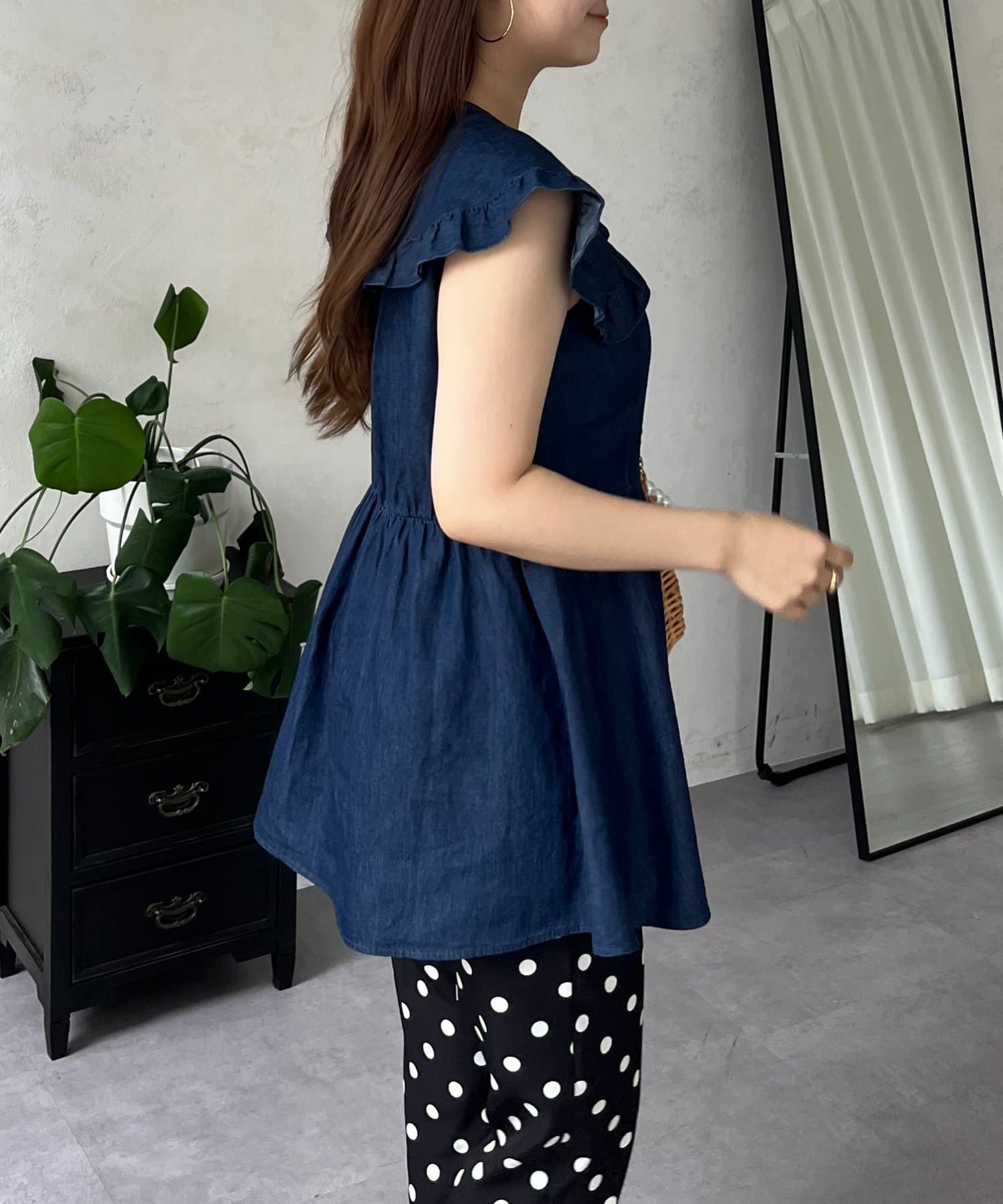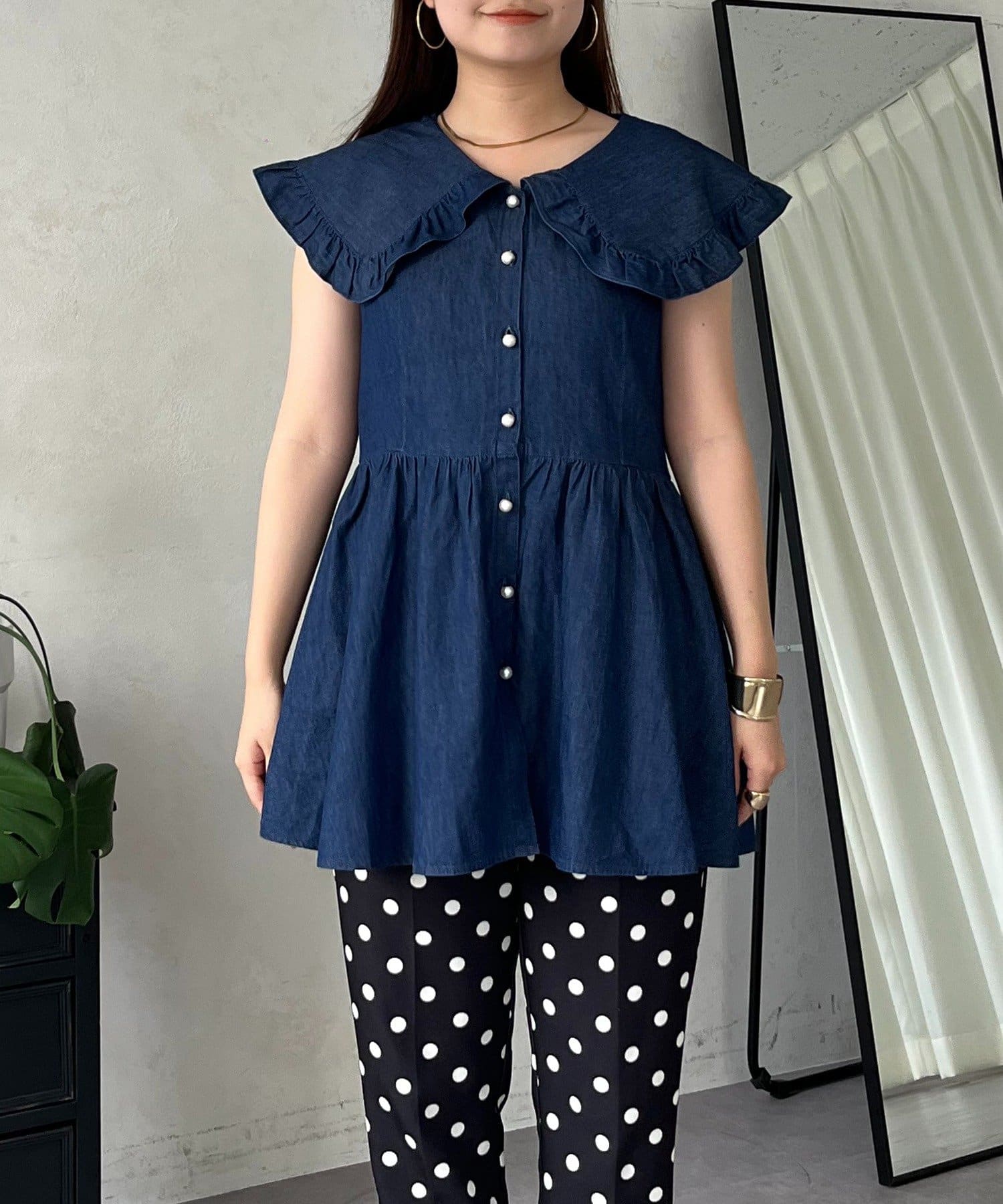 ブラウス/ペプラム/体型カバー/デニム/デカ襟/ビッグ襟