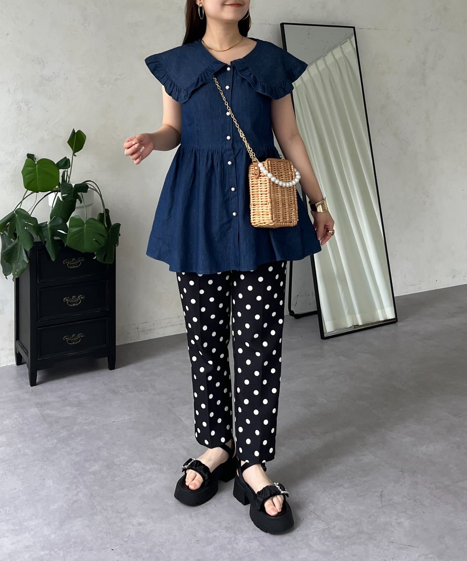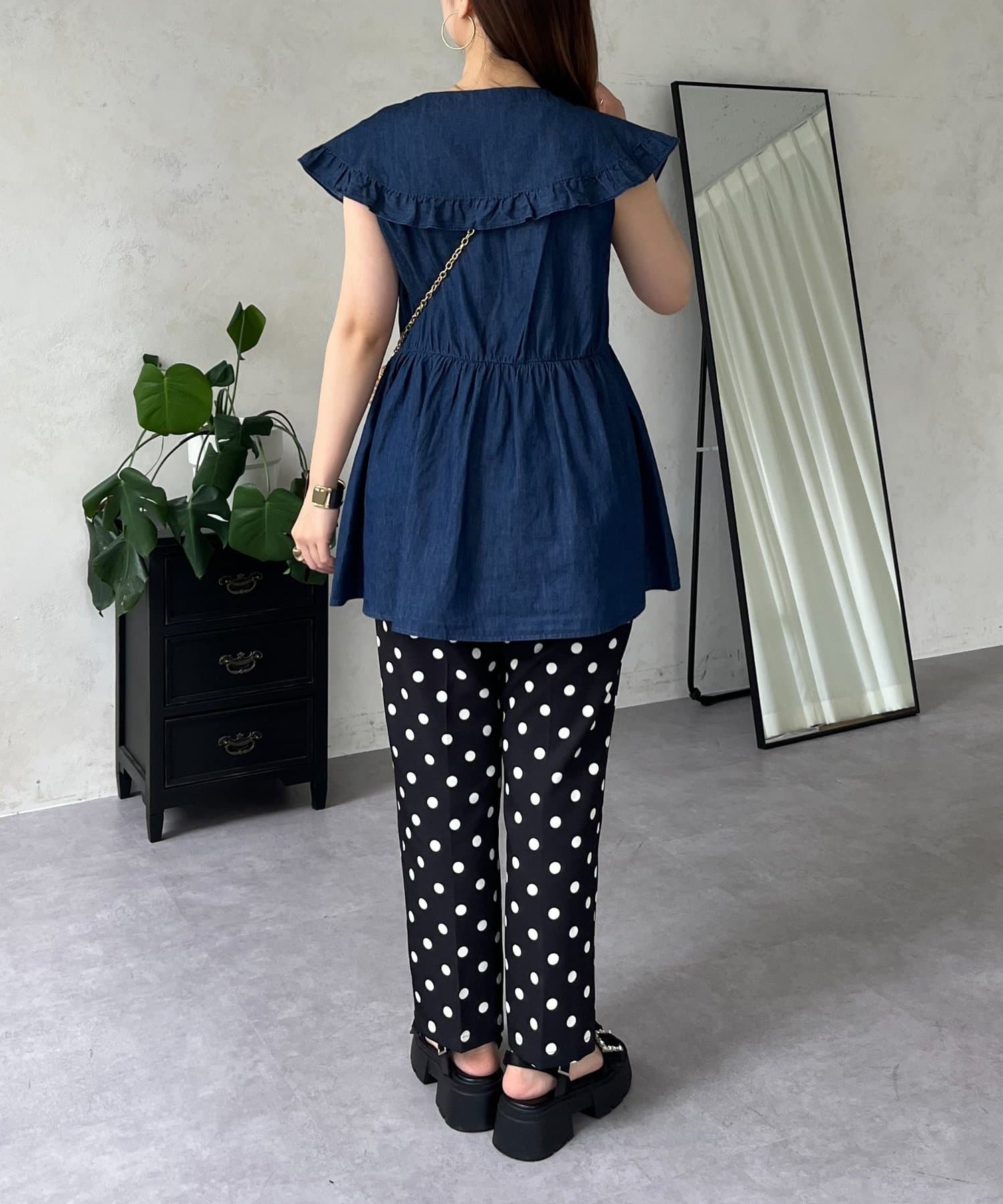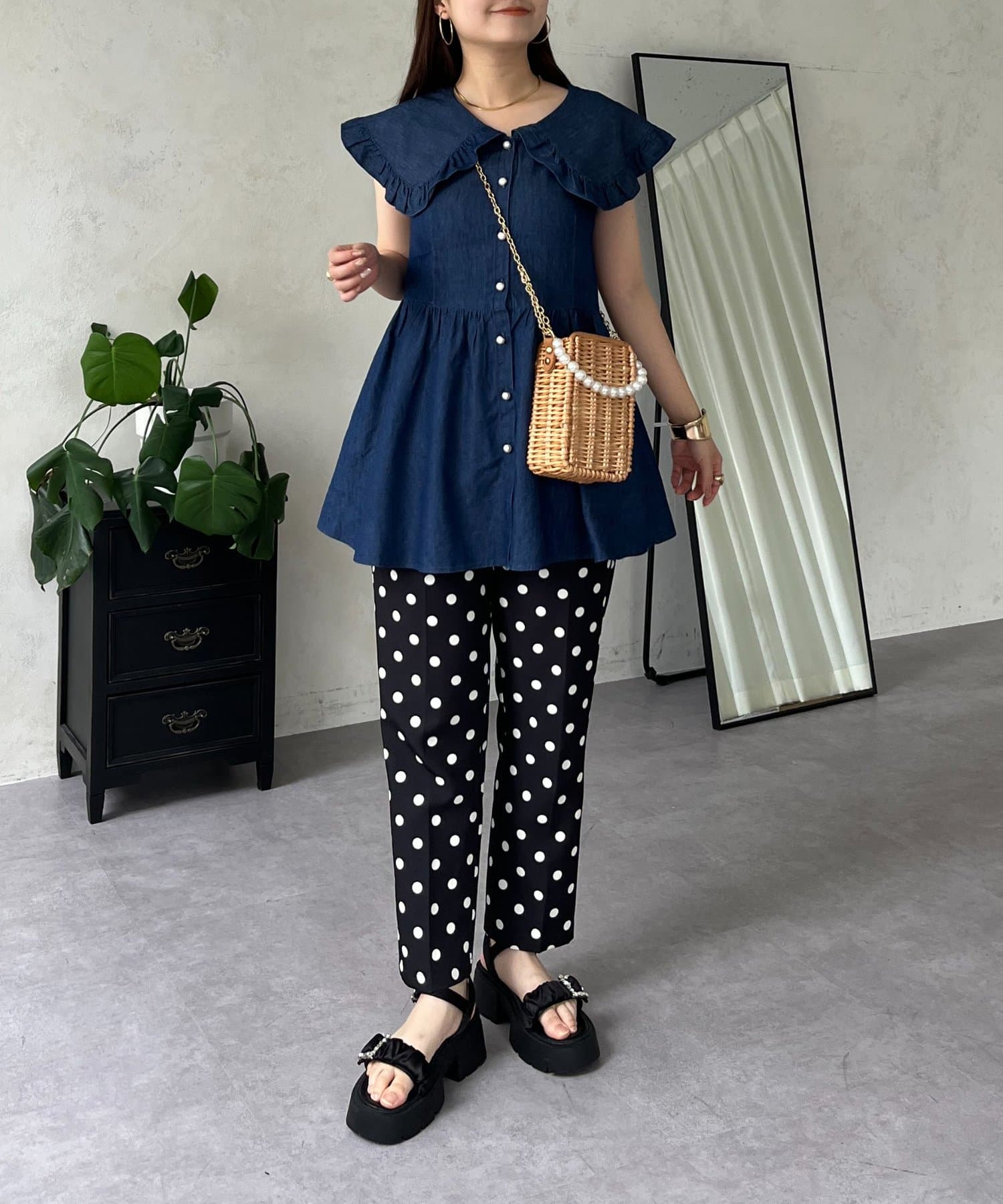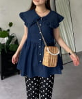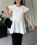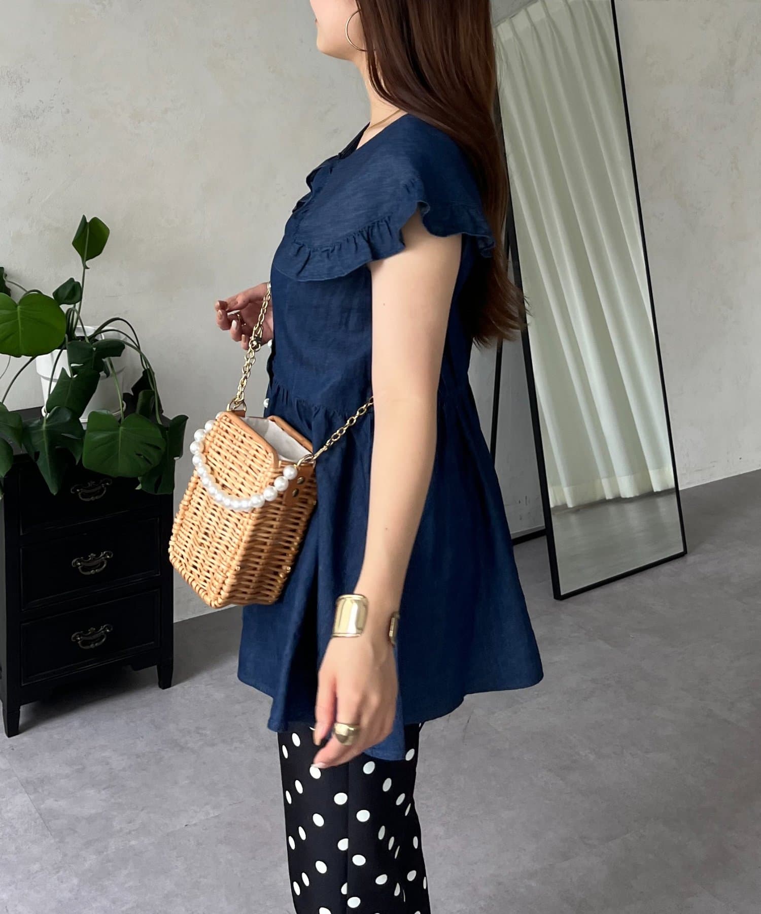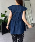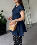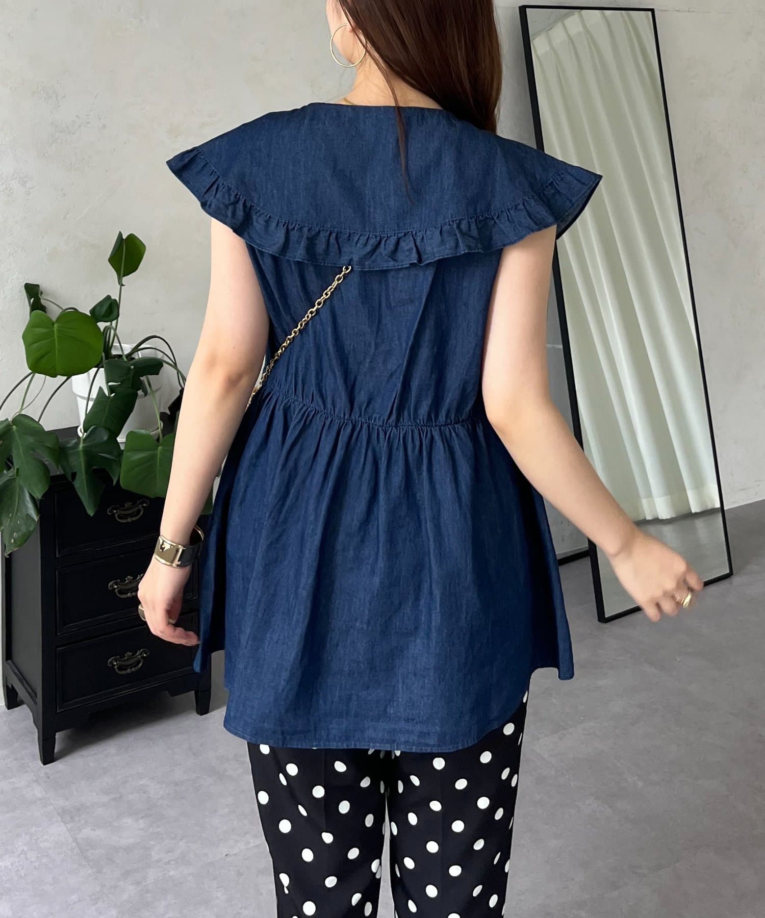 ブラウス/ペプラム/体型カバー/デニム/デカ襟/ビッグ襟