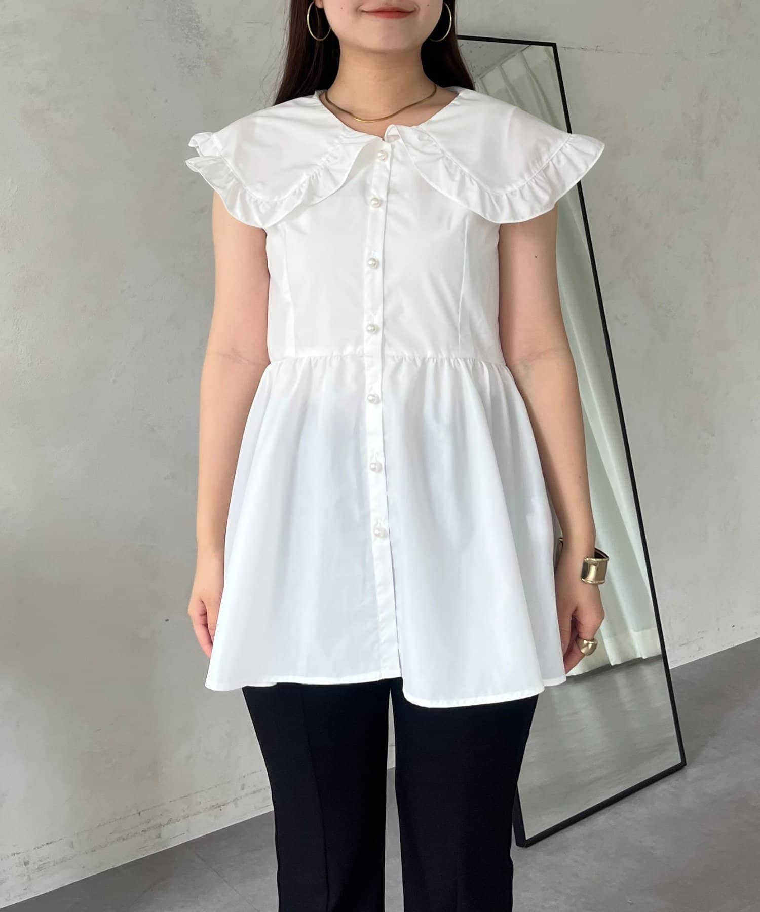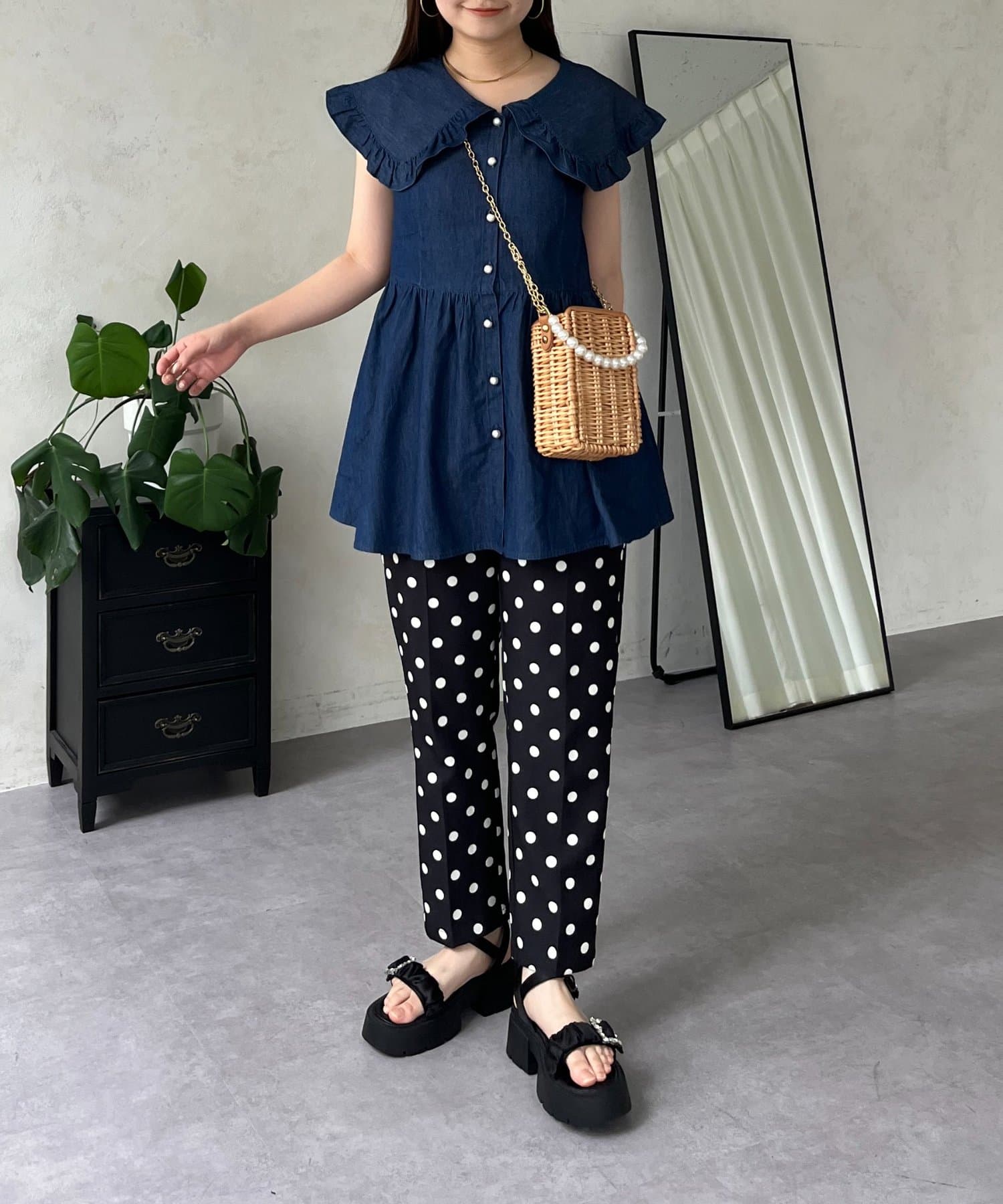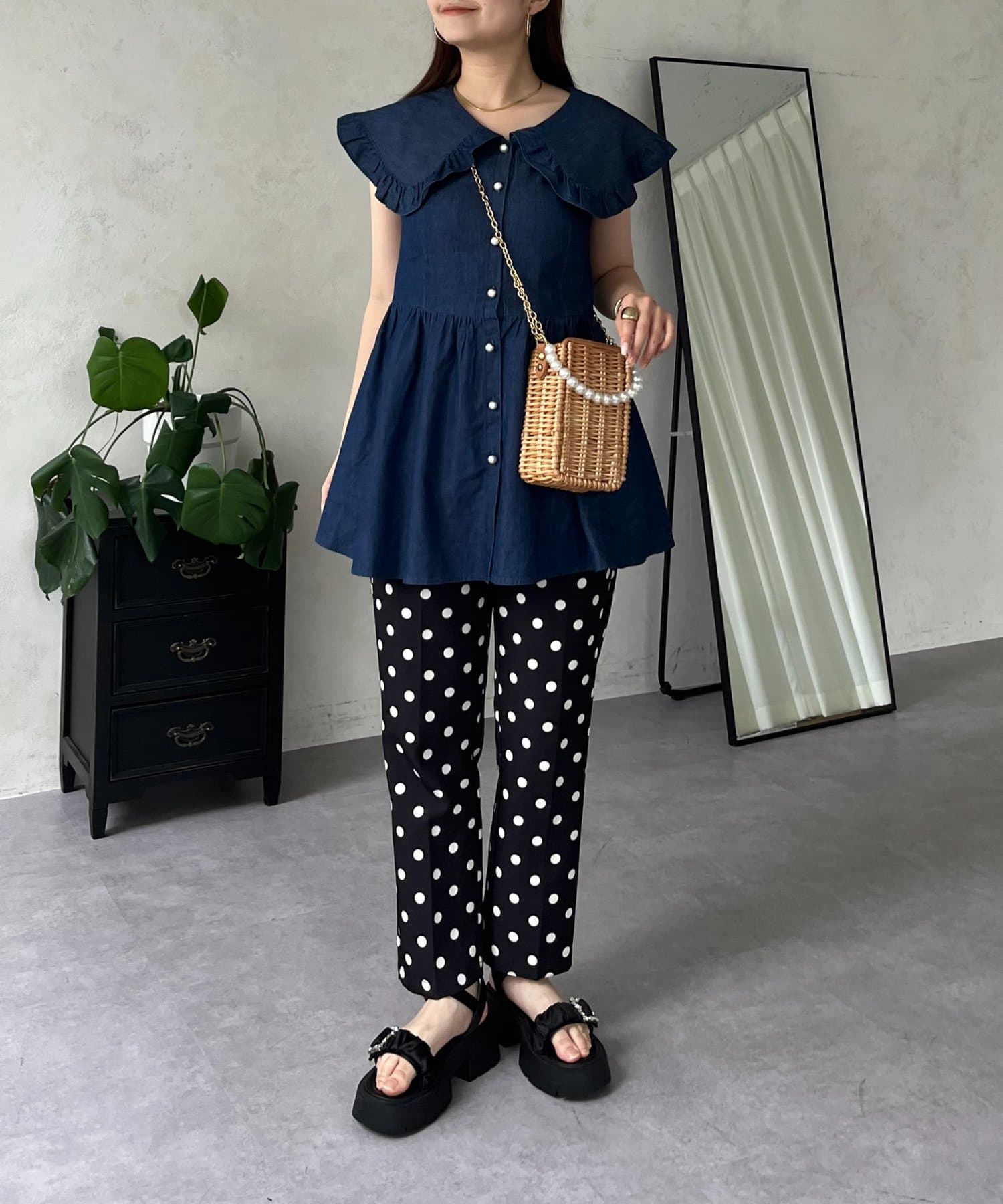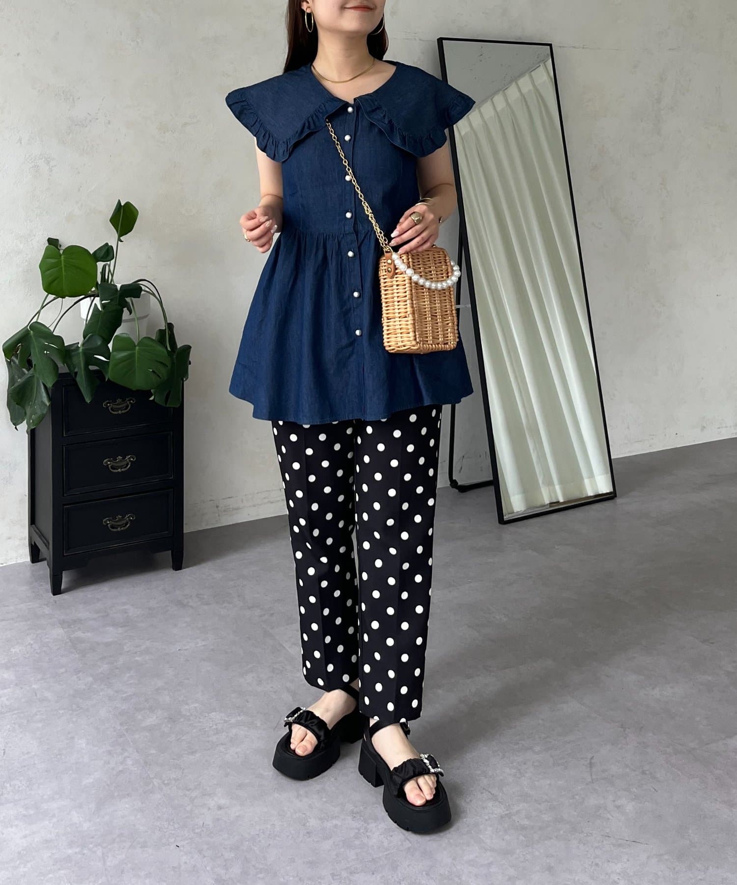 ブラウス/ペプラム/体型カバー/デニム/デカ襟/ビッグ襟