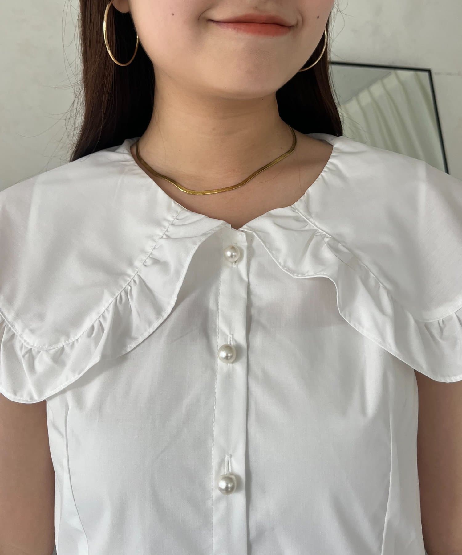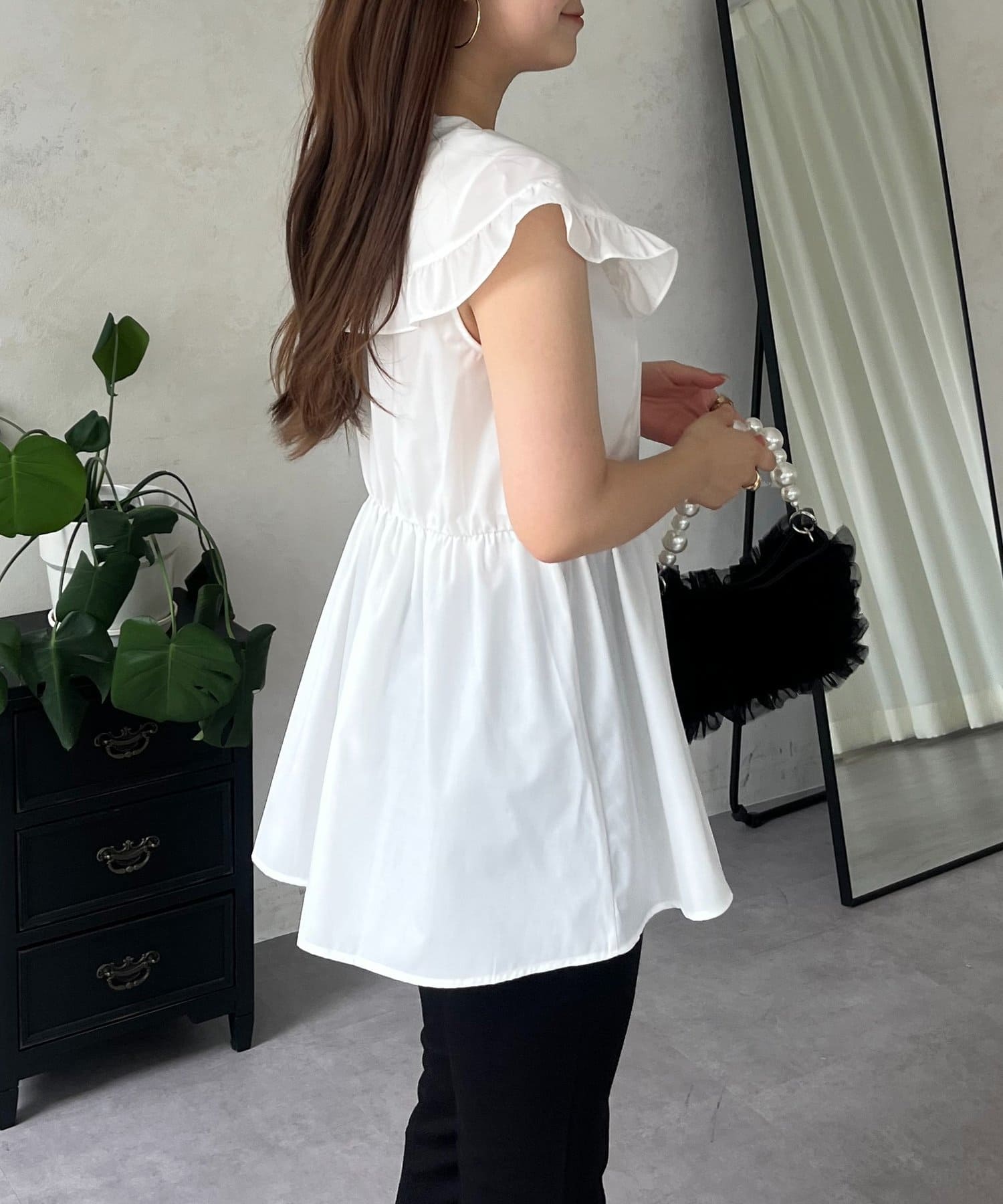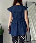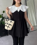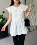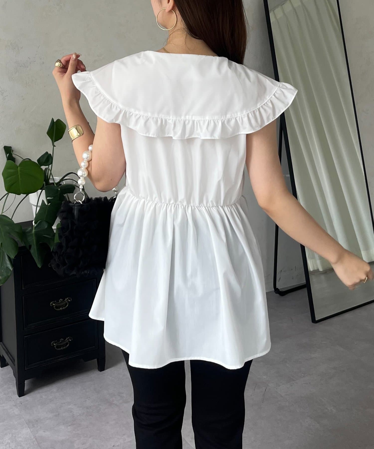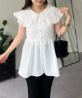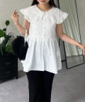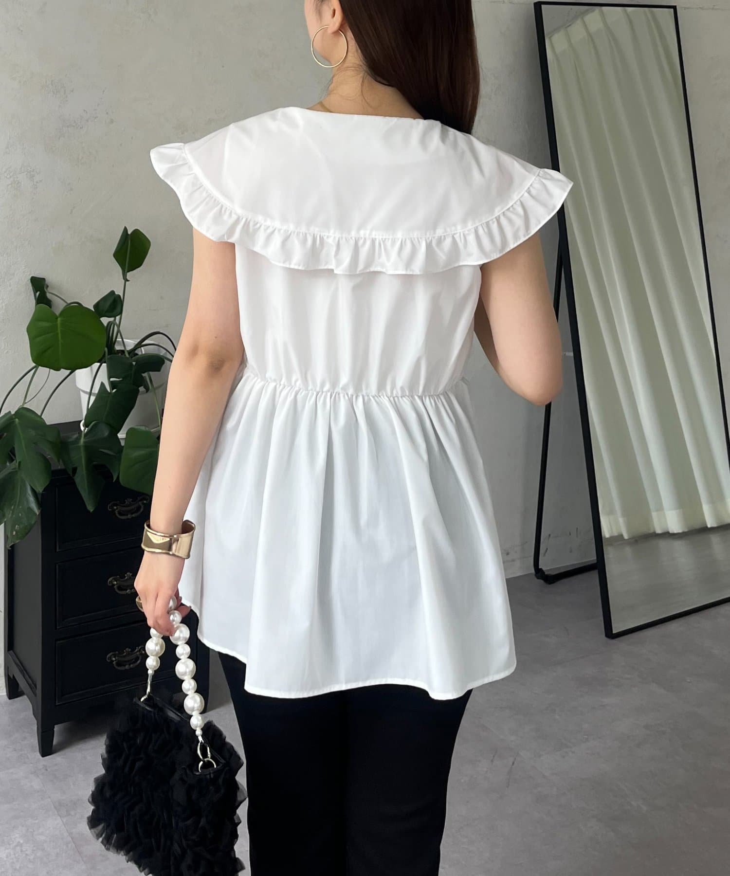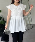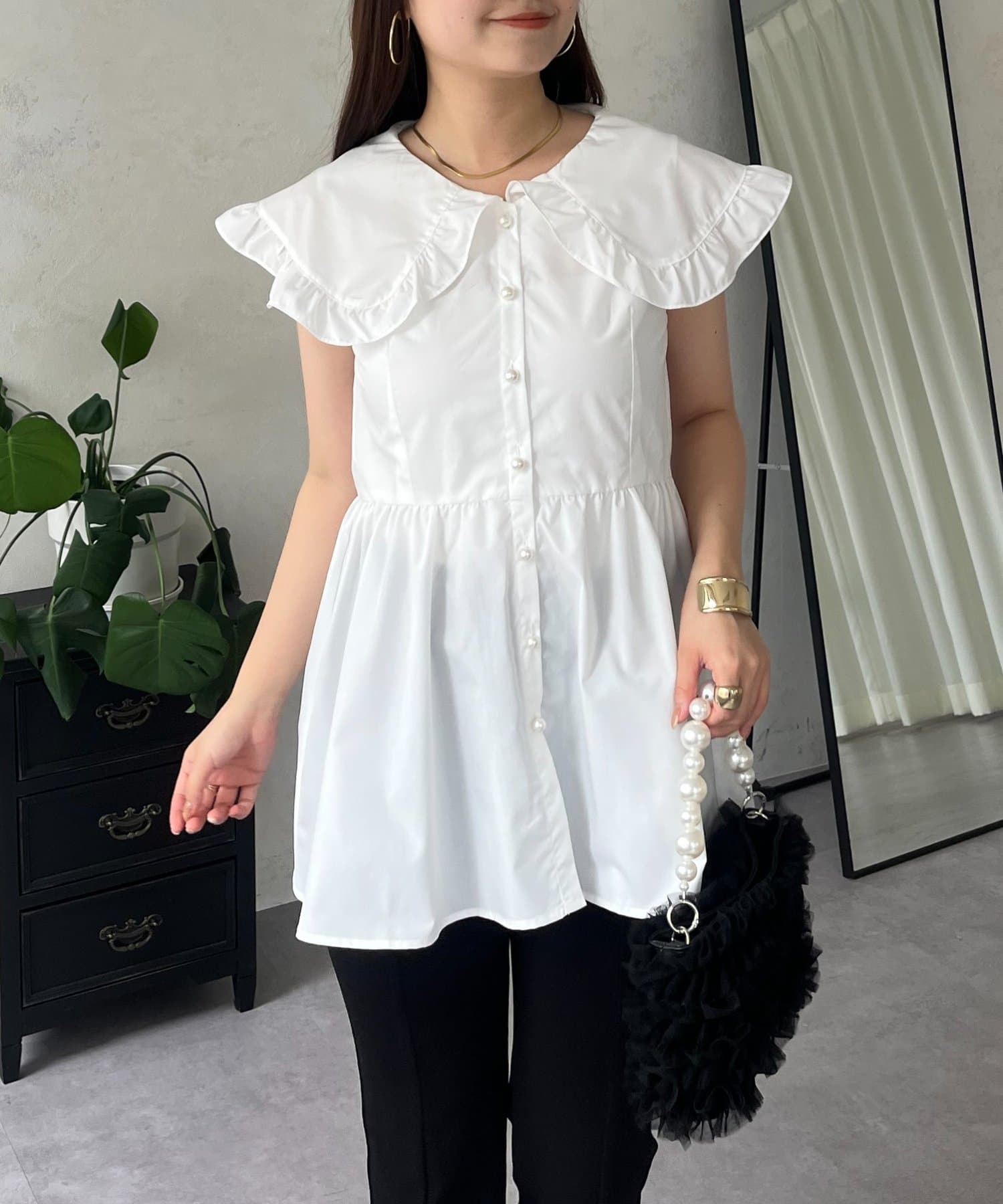ブラウス/ペプラム/体型カバー/デニム/デカ襟/ビッグ襟