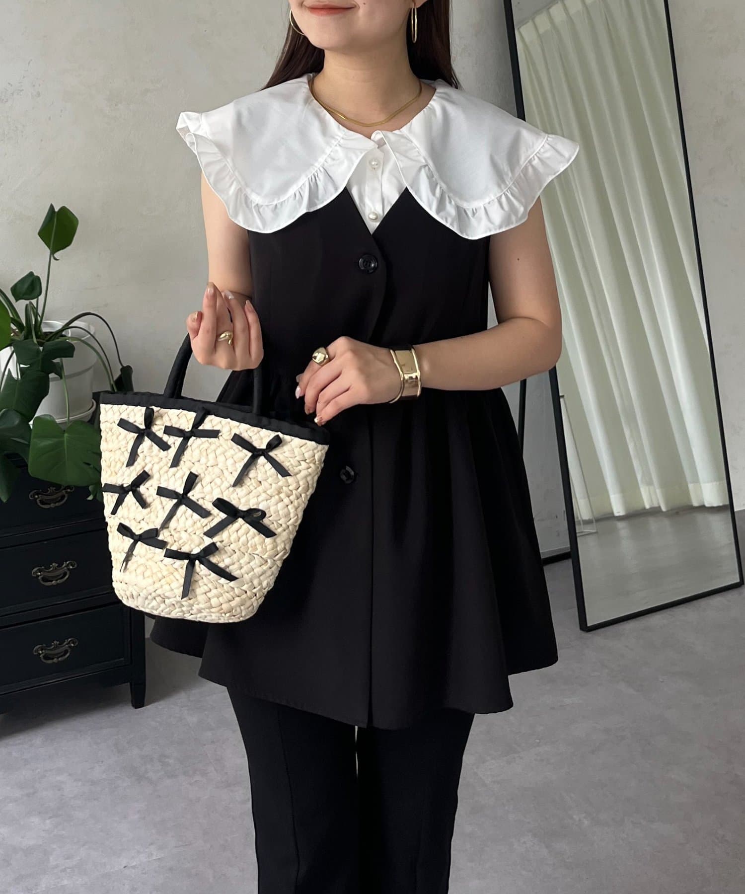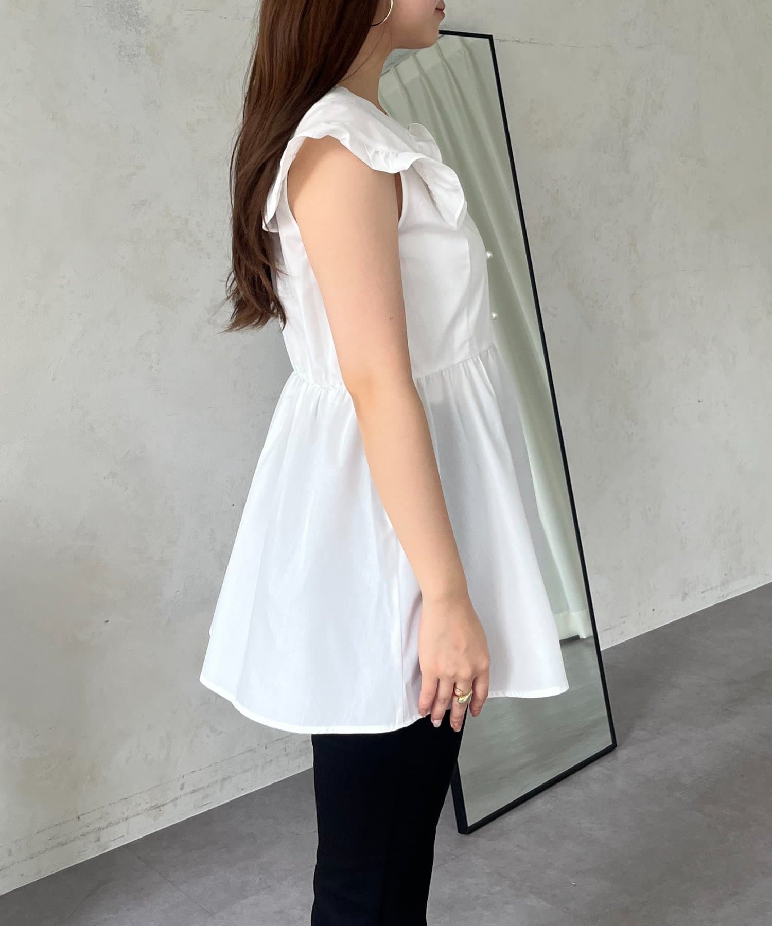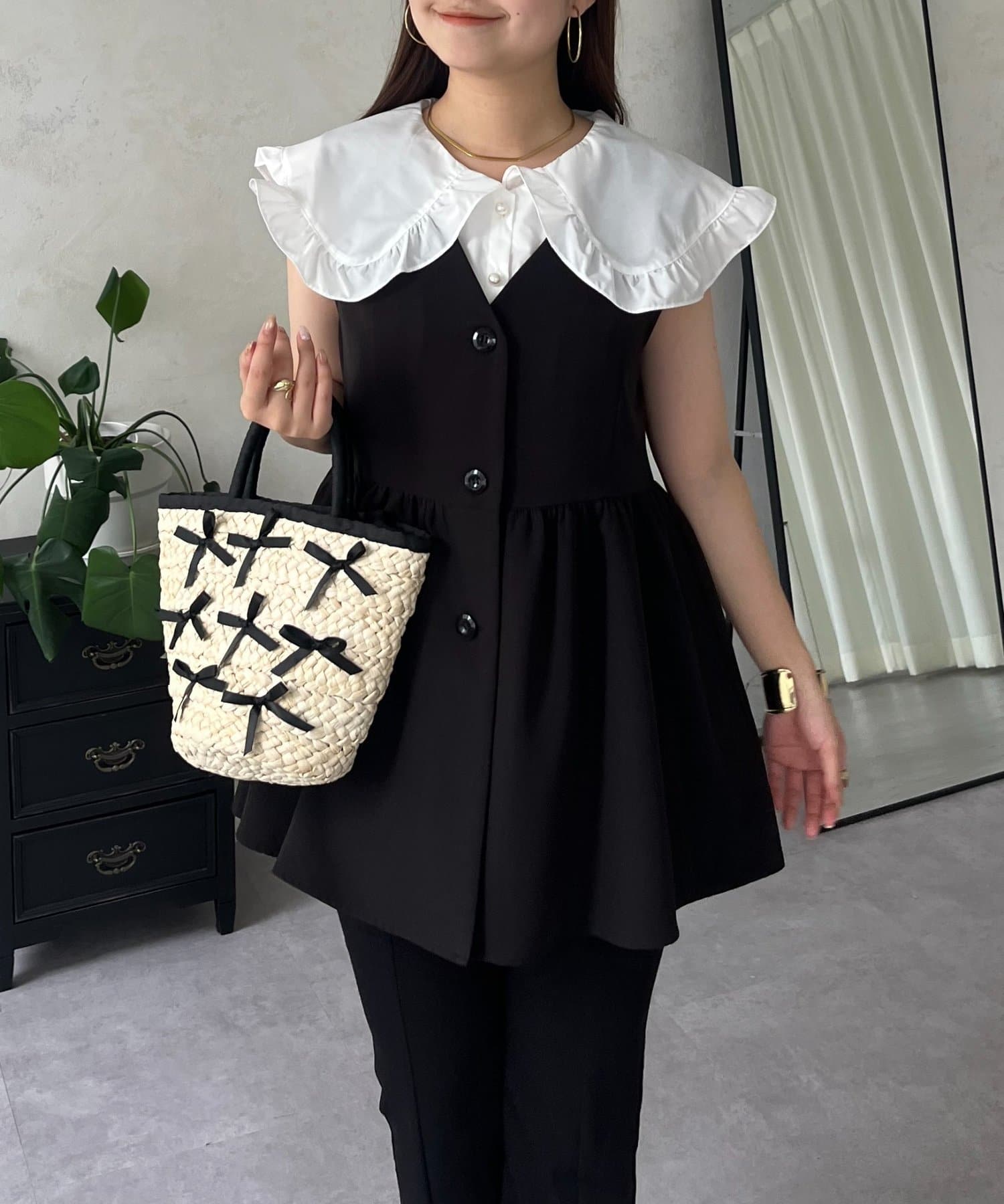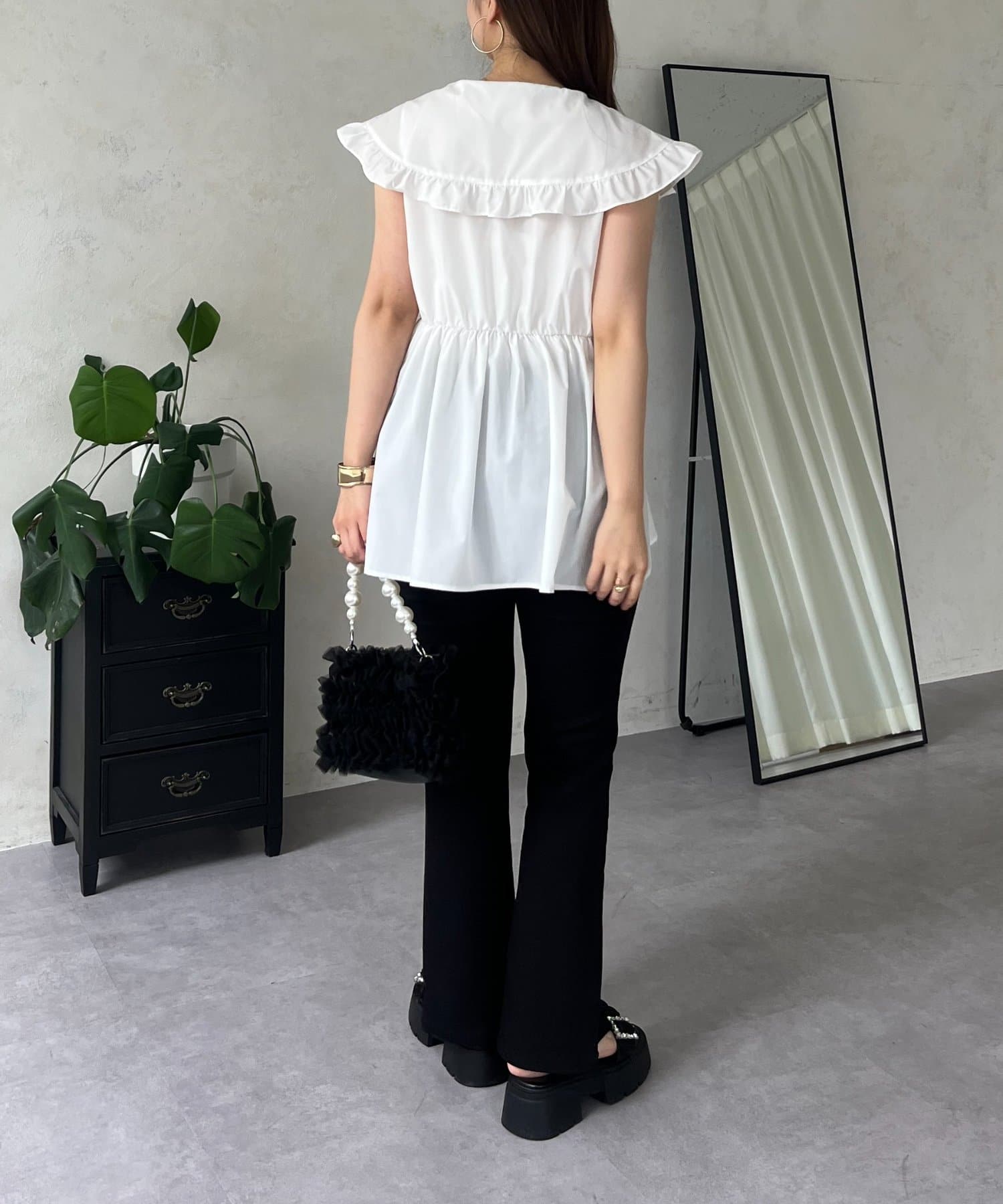 ブラウス/ペプラム/体型カバー/デニム/デカ襟/ビッグ襟