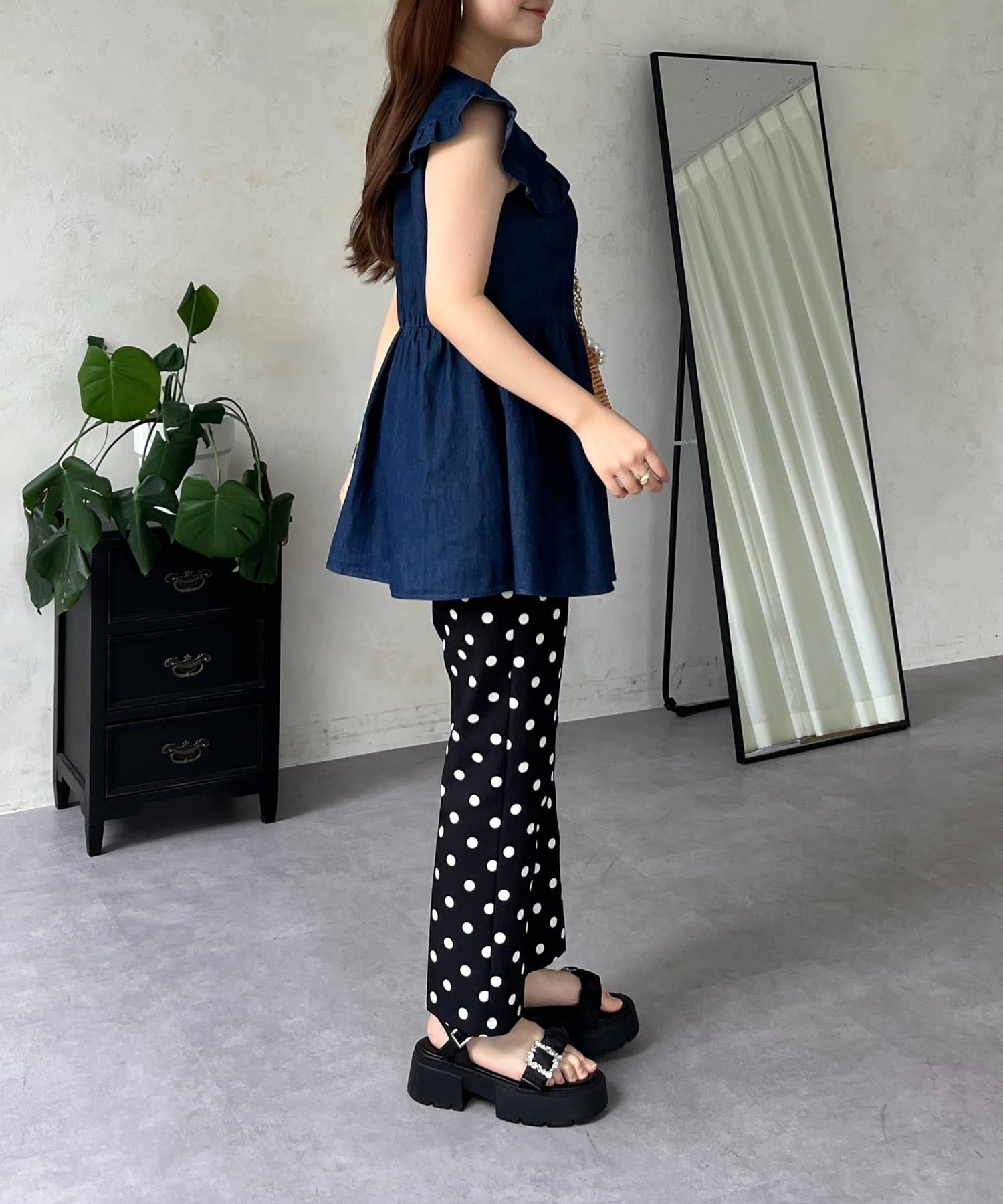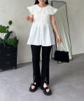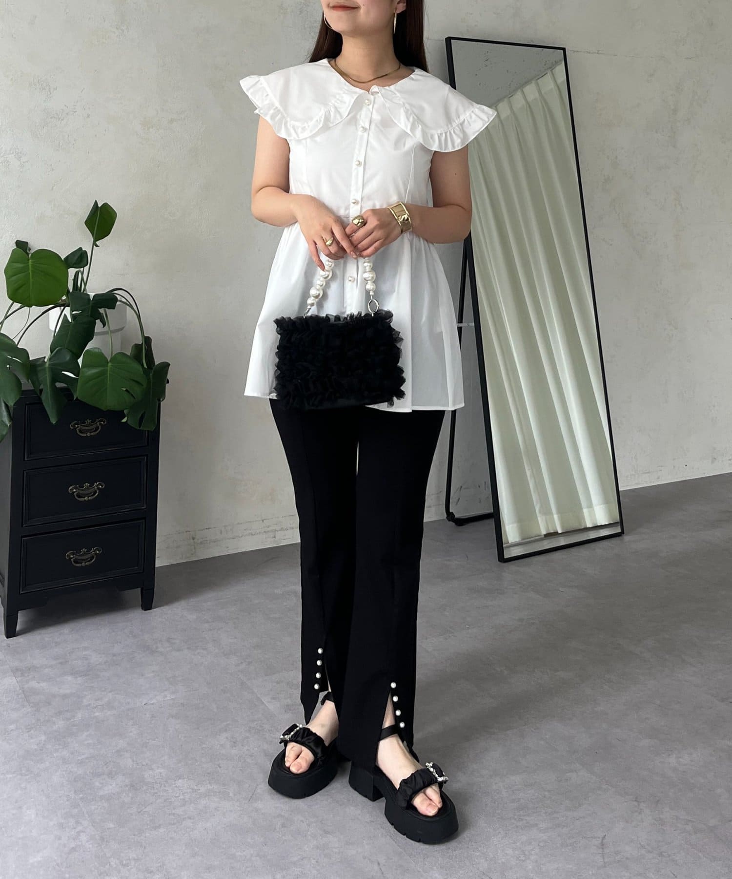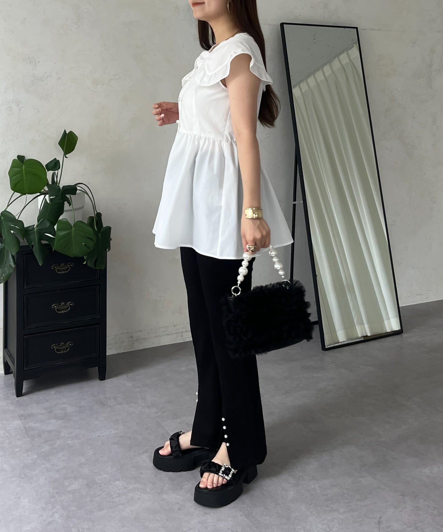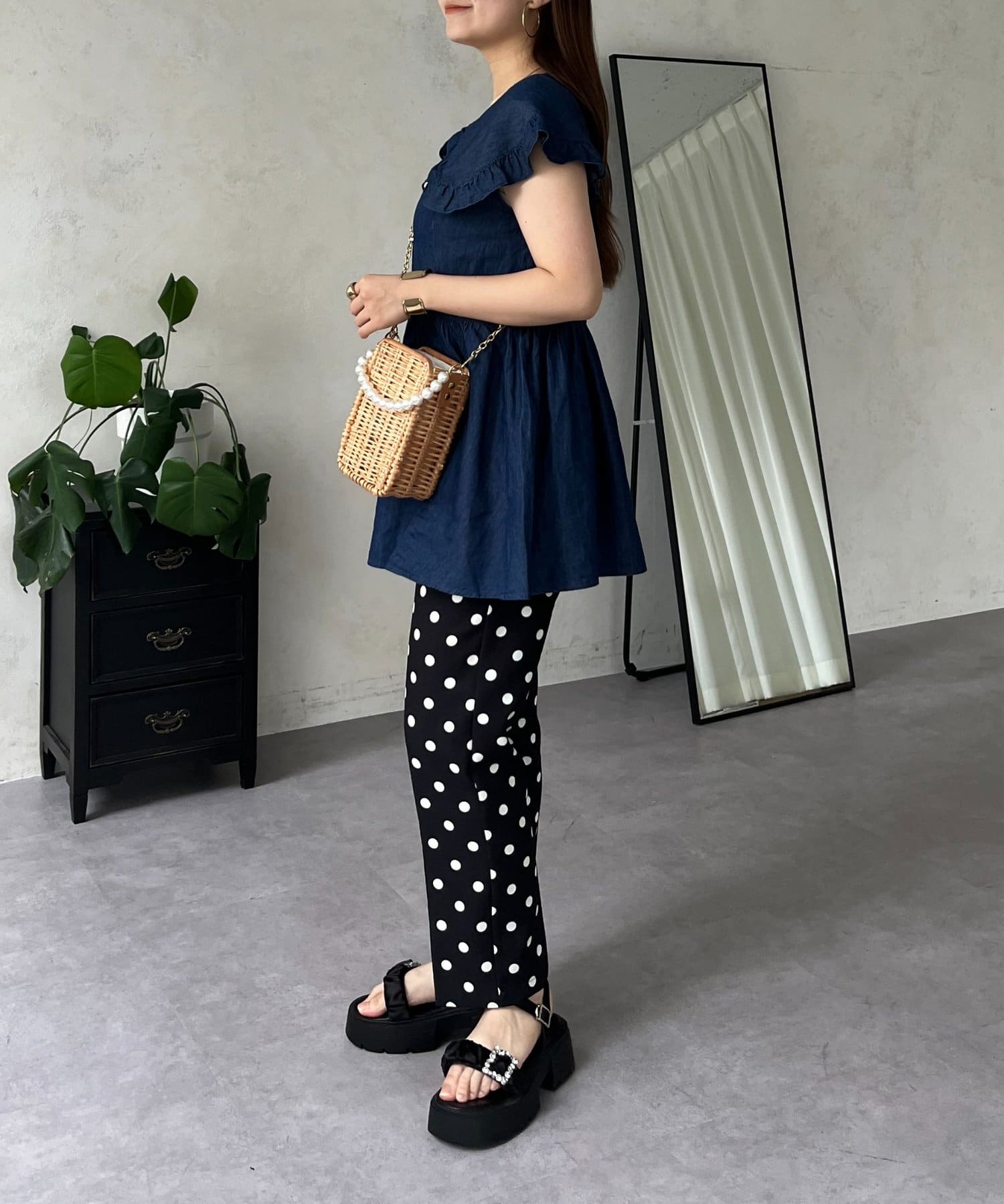 ●細めのボトムスと合わせることで着痩せ効果ばっちり!
