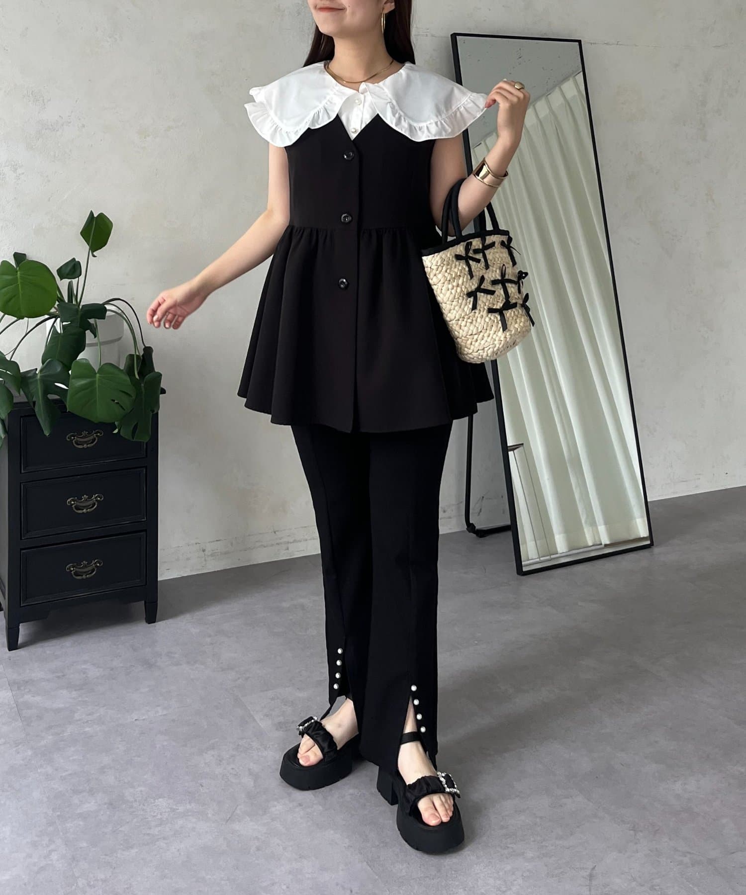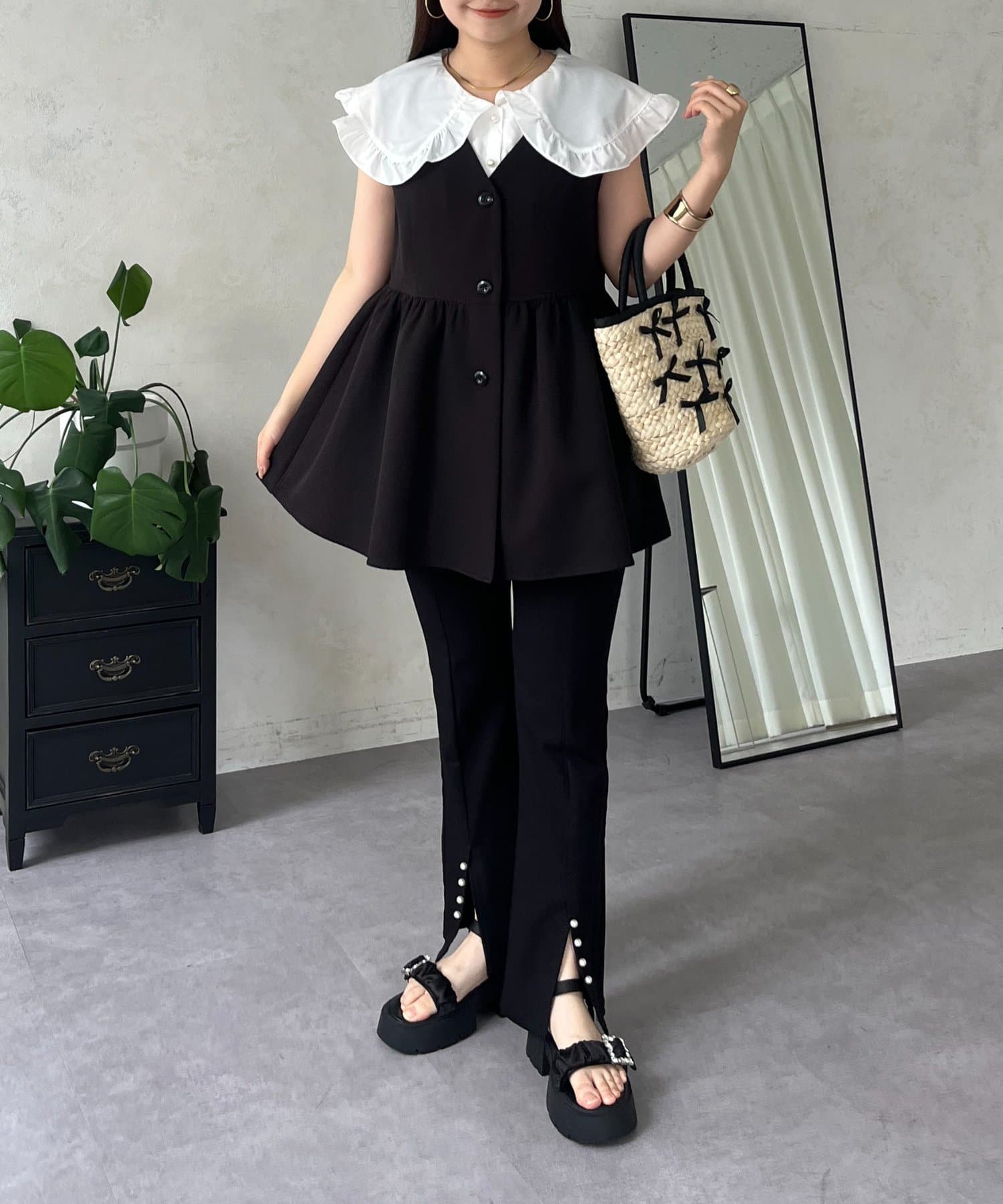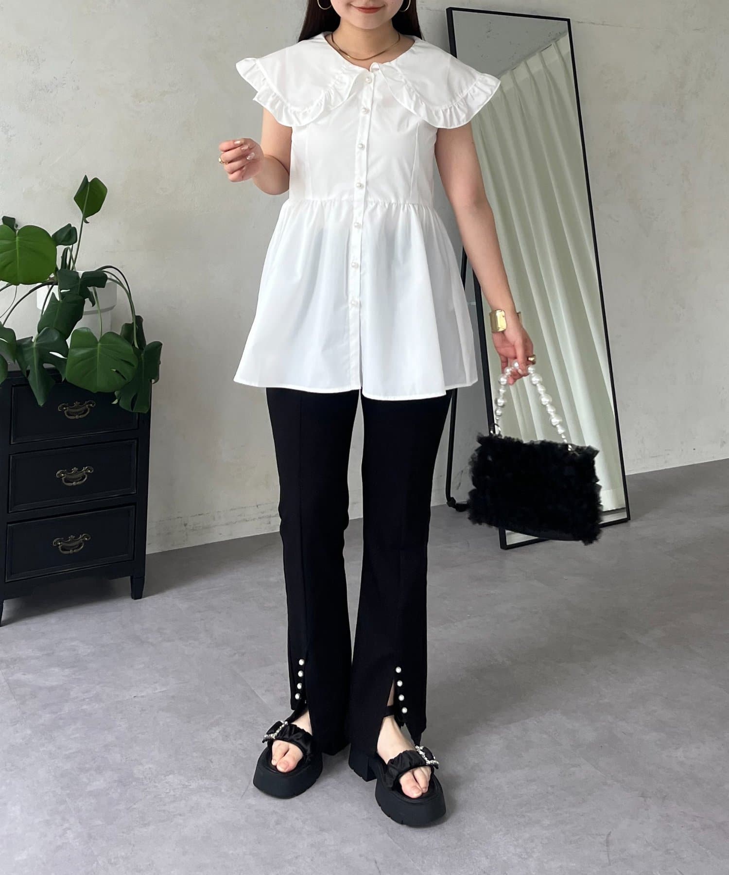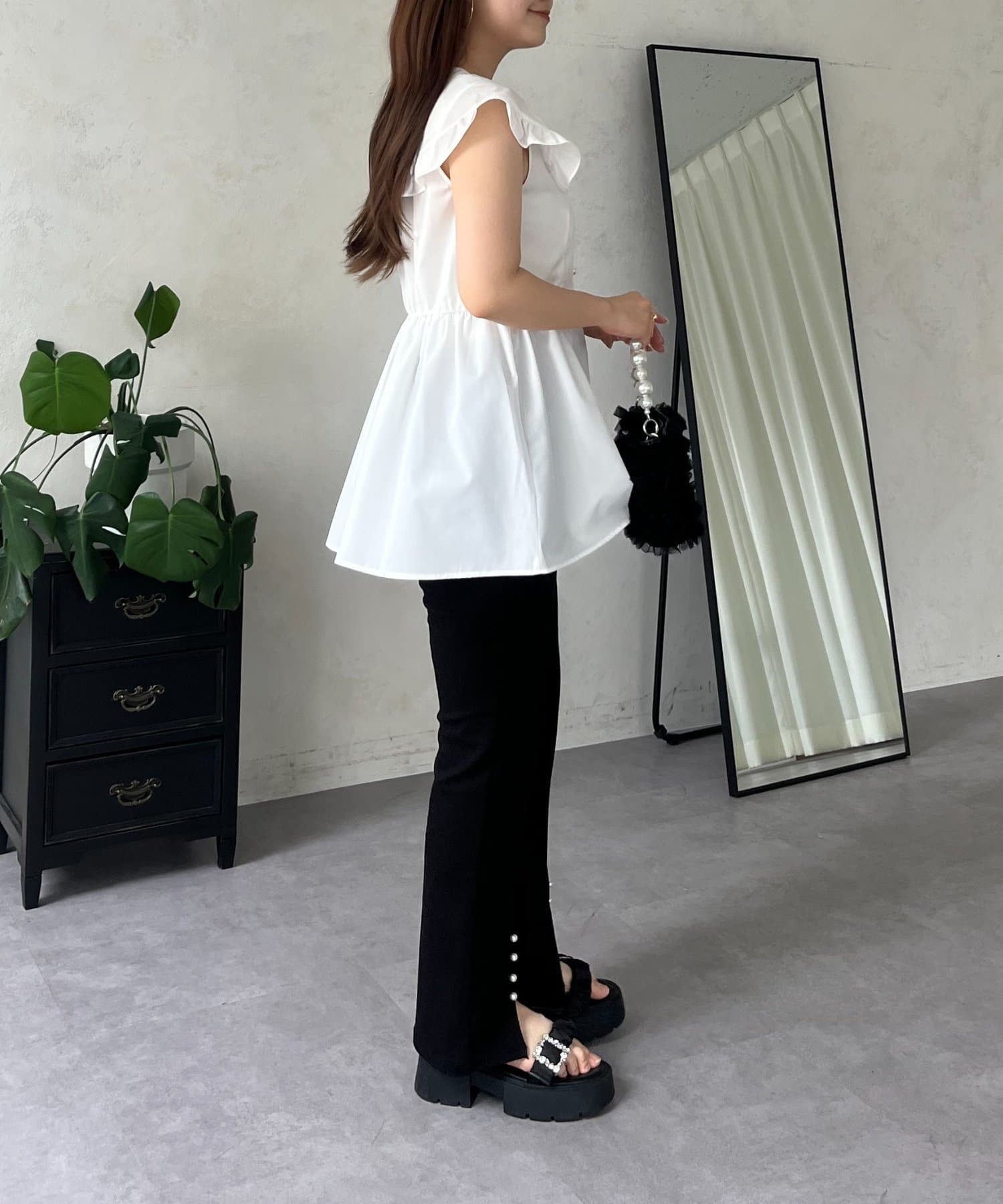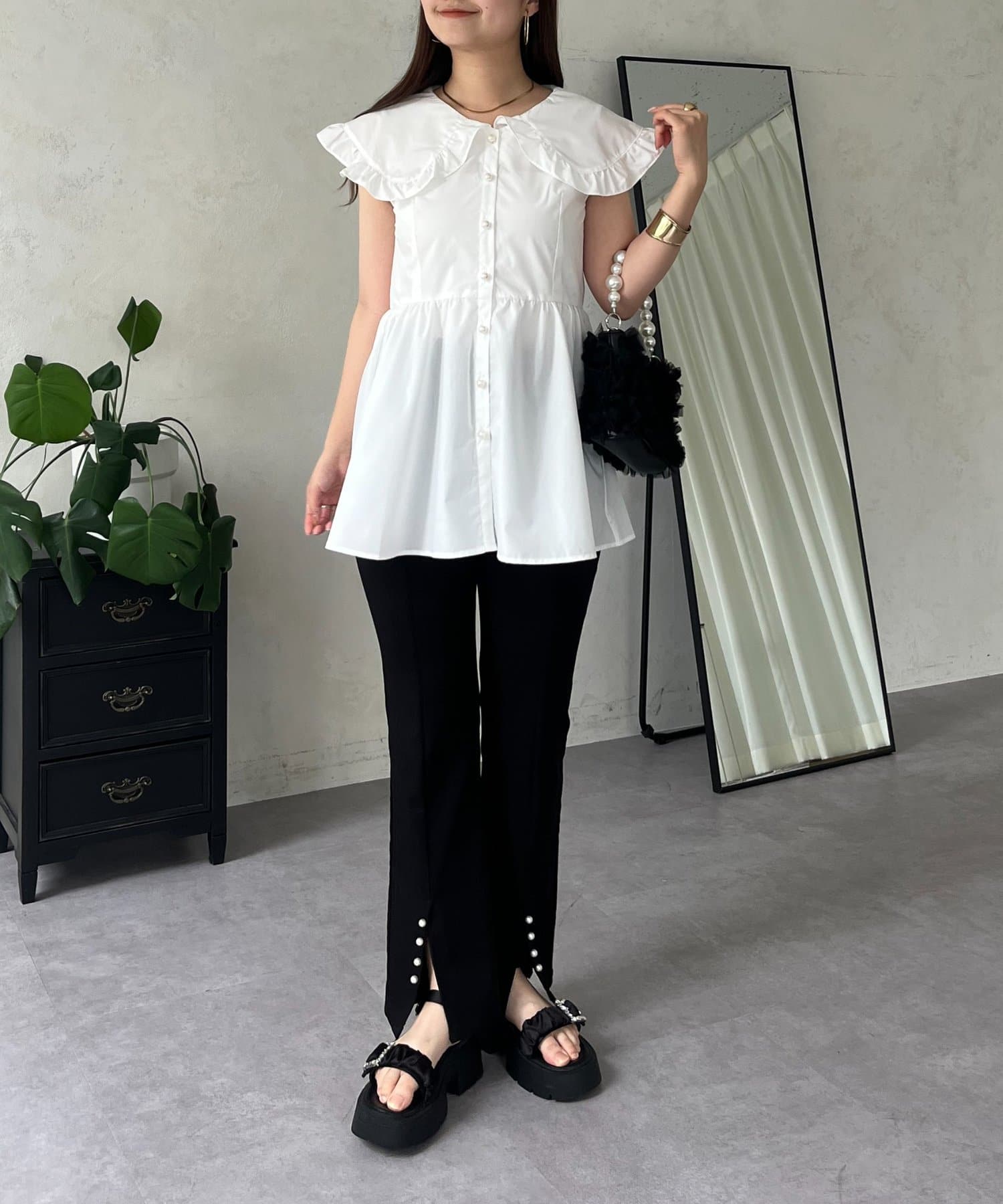 ●細めのボトムスと合わせることで着痩せ効果ばっちり!