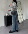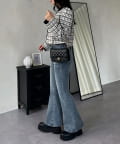 【美脚見え】ロゴパッチ付きストレッチフレアデニム