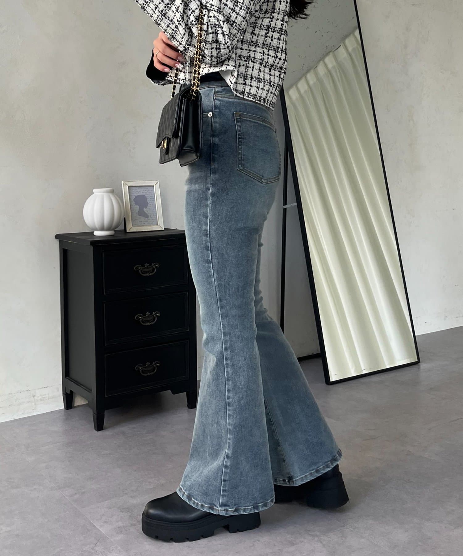 美脚見えしてくれるフレアデニム