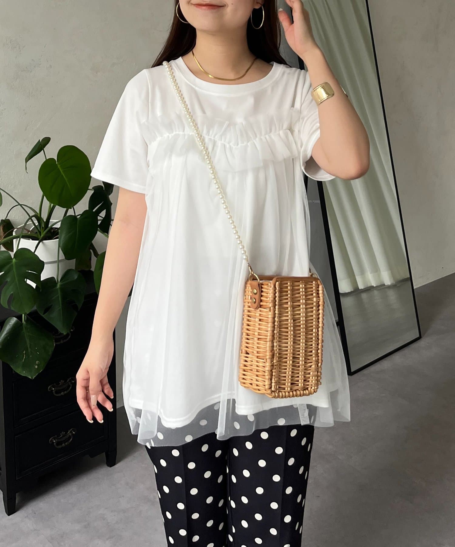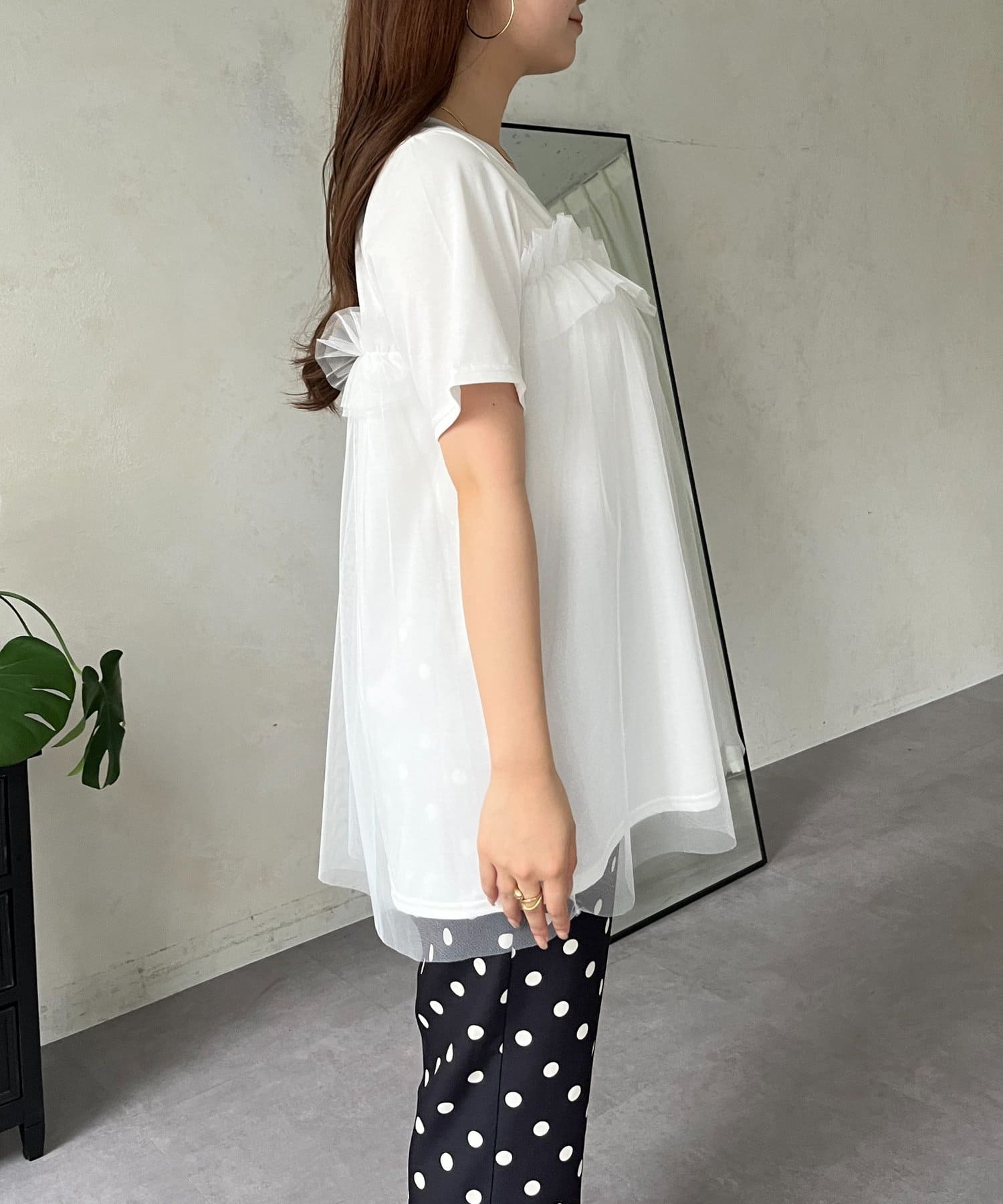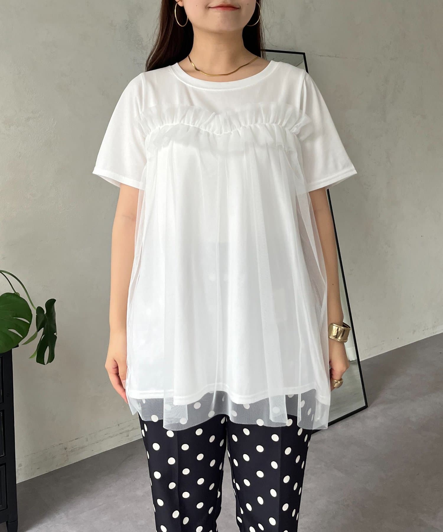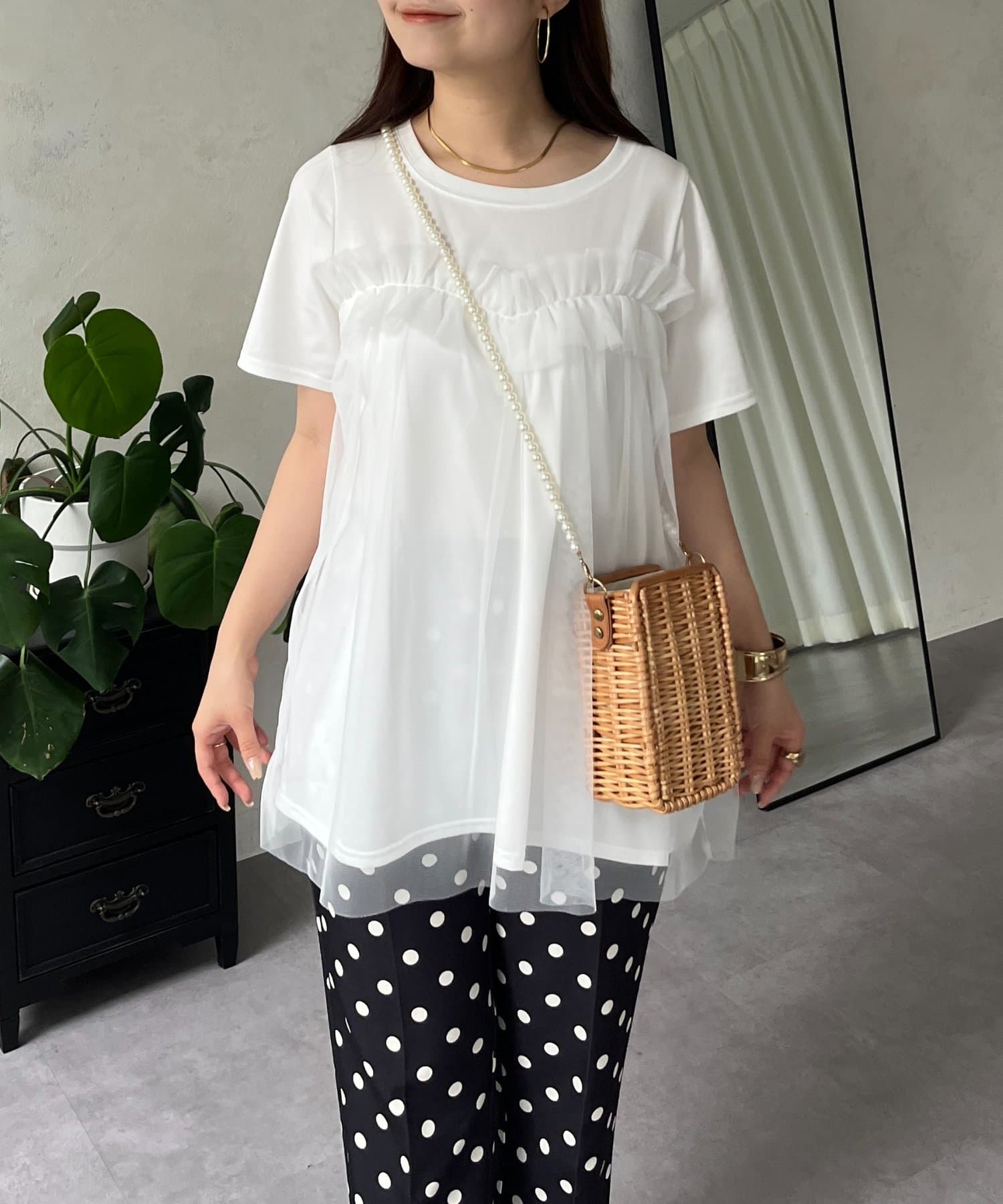 TOP > prose verse > レディース > トップス > Tシャツ/カットソー > チュールレイヤードAラインTシャツ