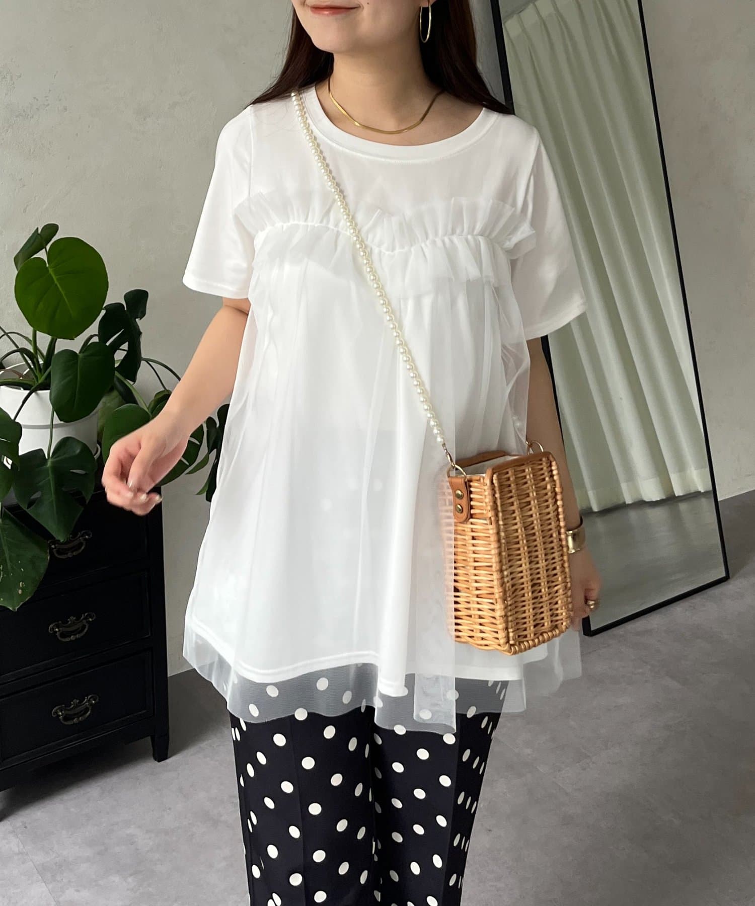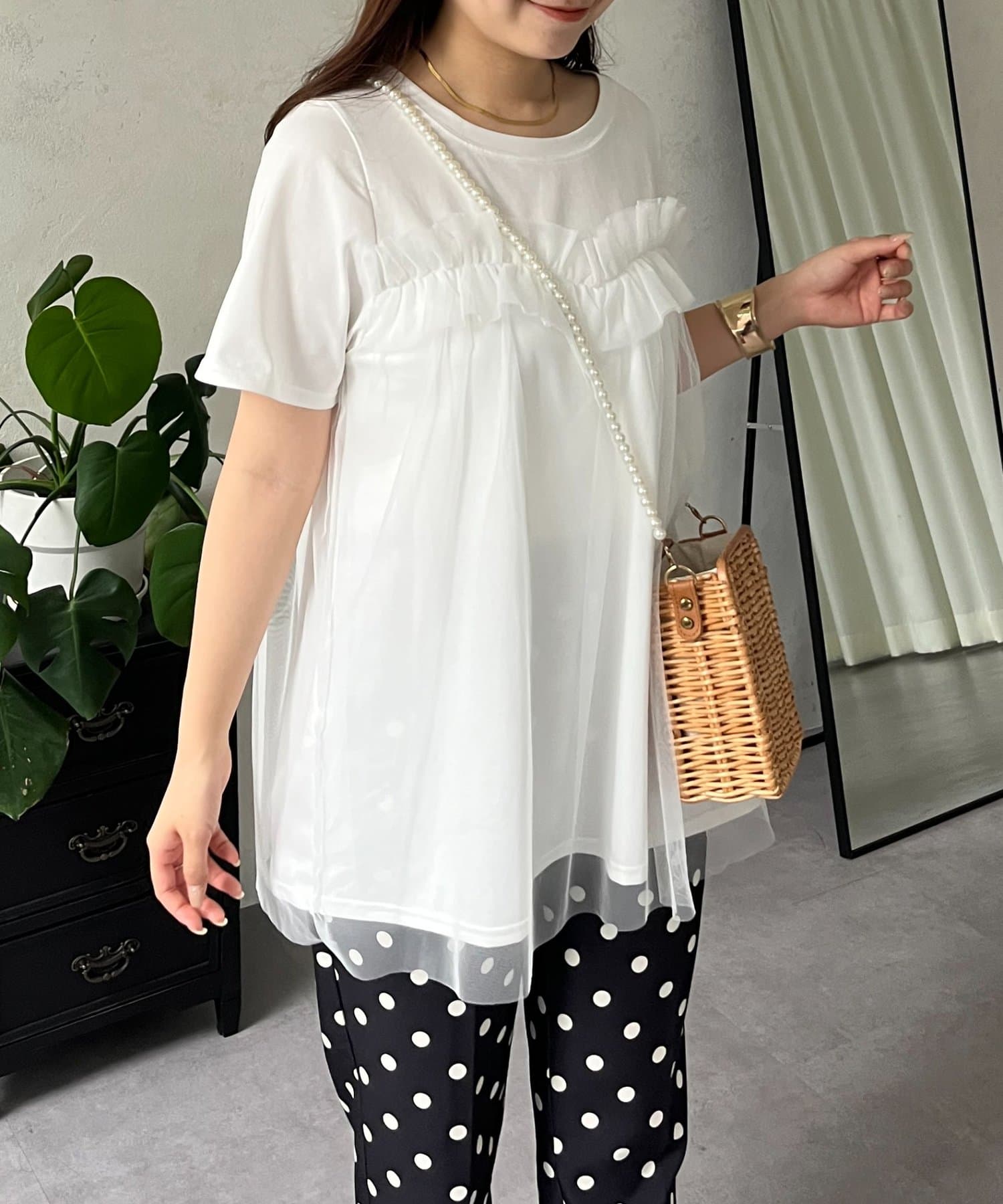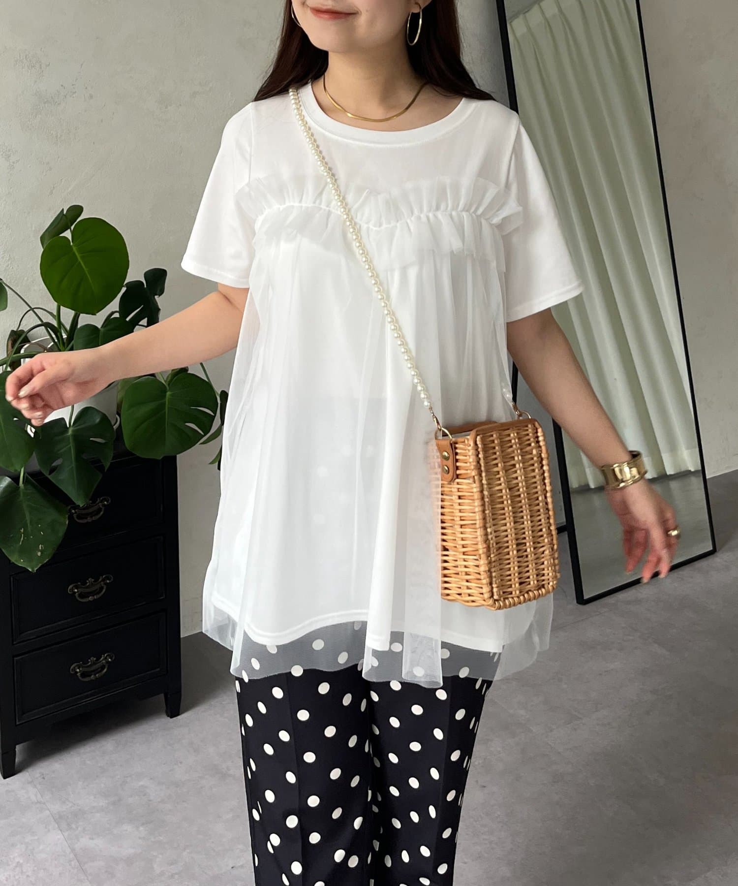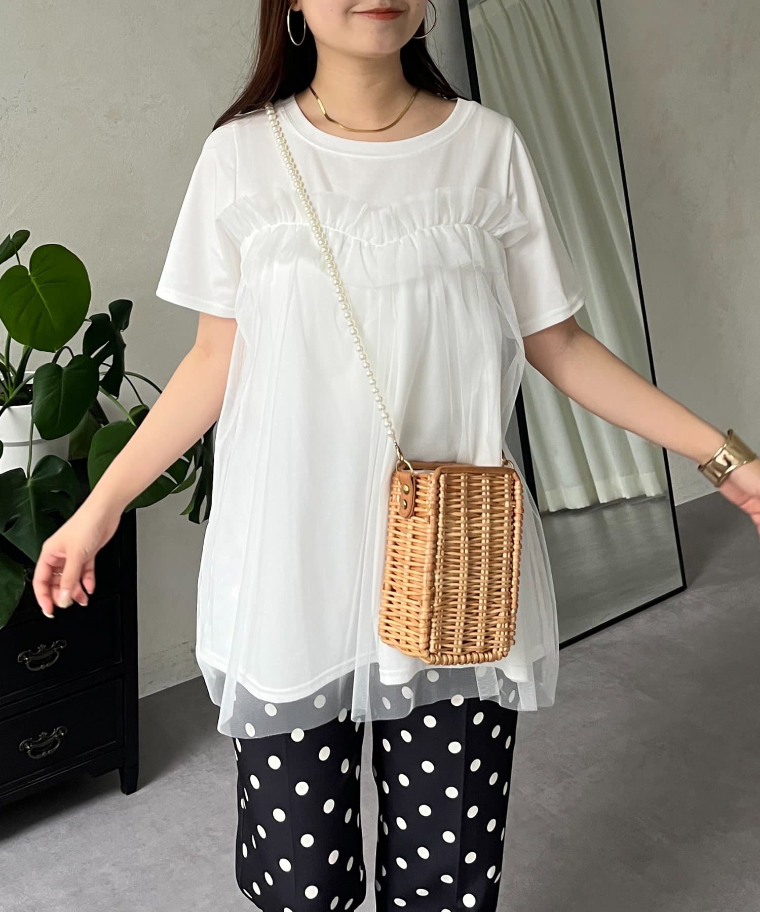 TOP > prose verse > レディース > トップス > Tシャツ/カットソー > チュールレイヤードAラインTシャツ
