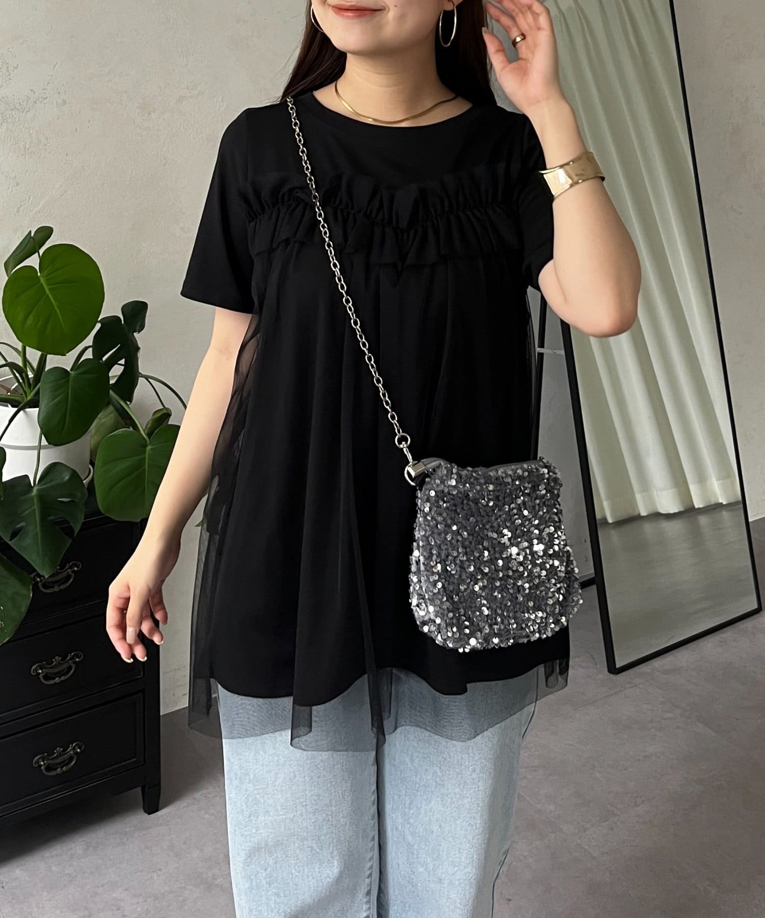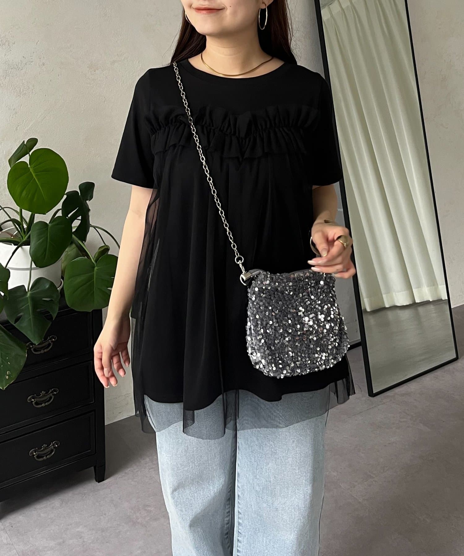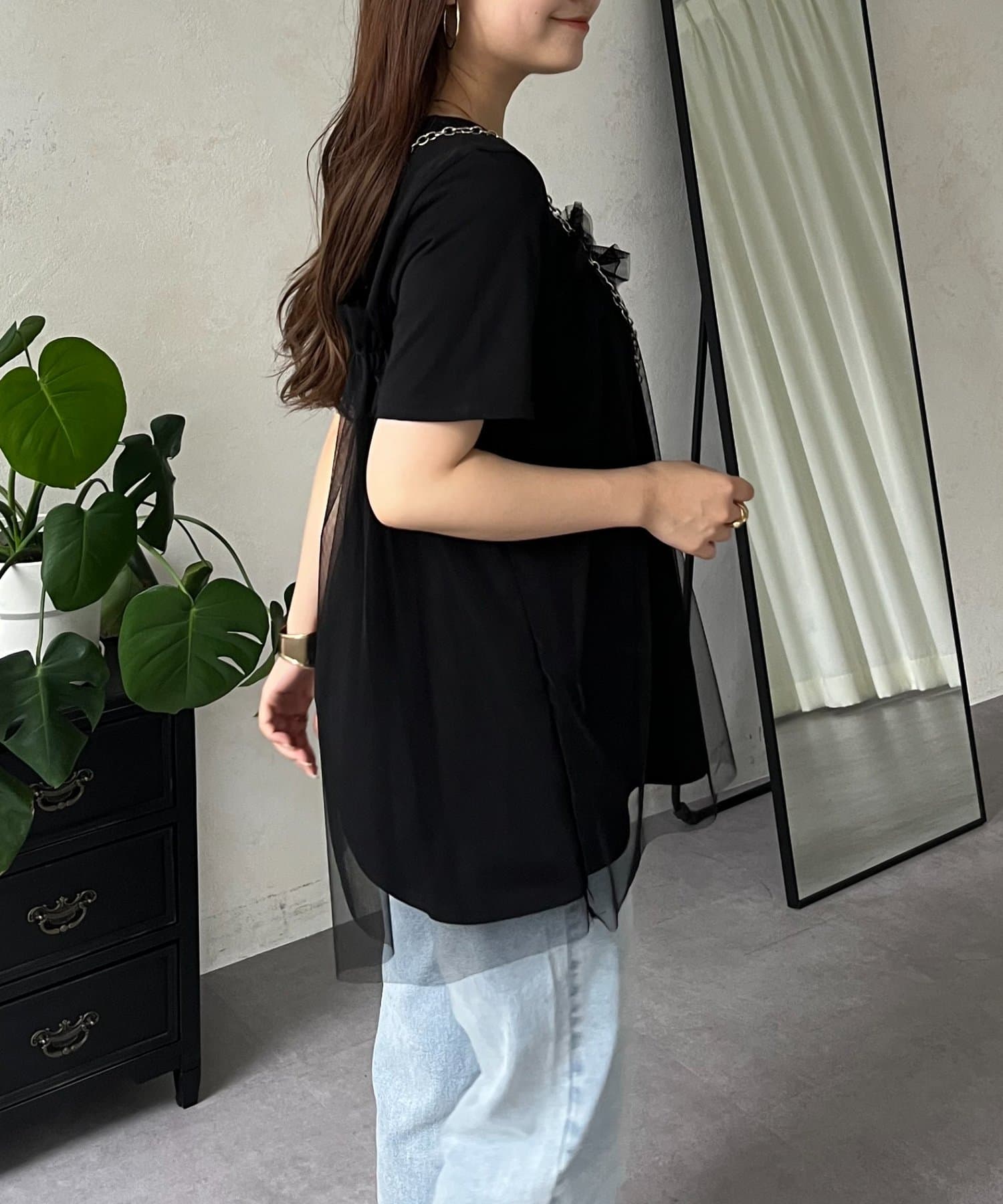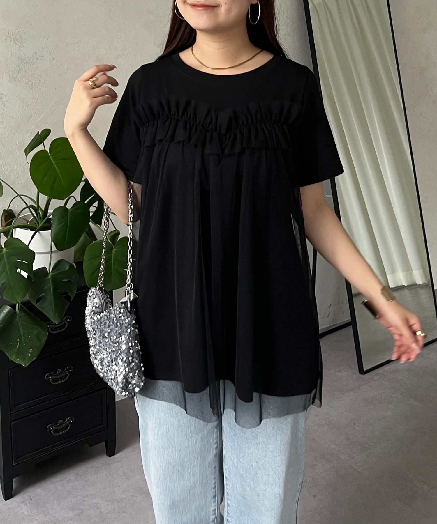 TOP > prose verse > レディース > トップス > Tシャツ/カットソー > チュールレイヤードAラインTシャツ