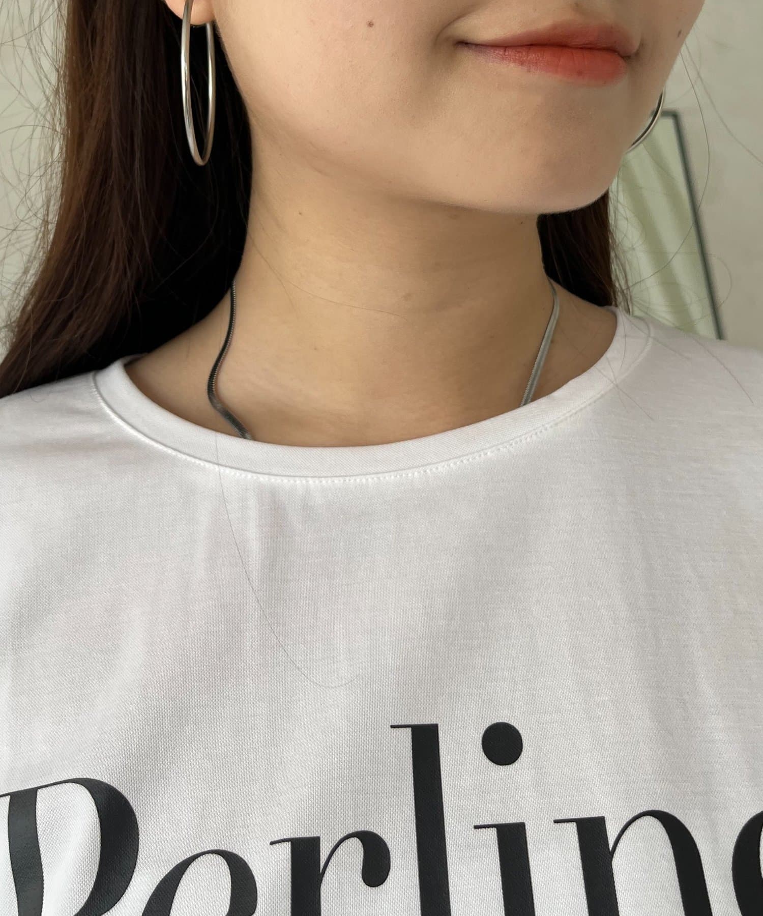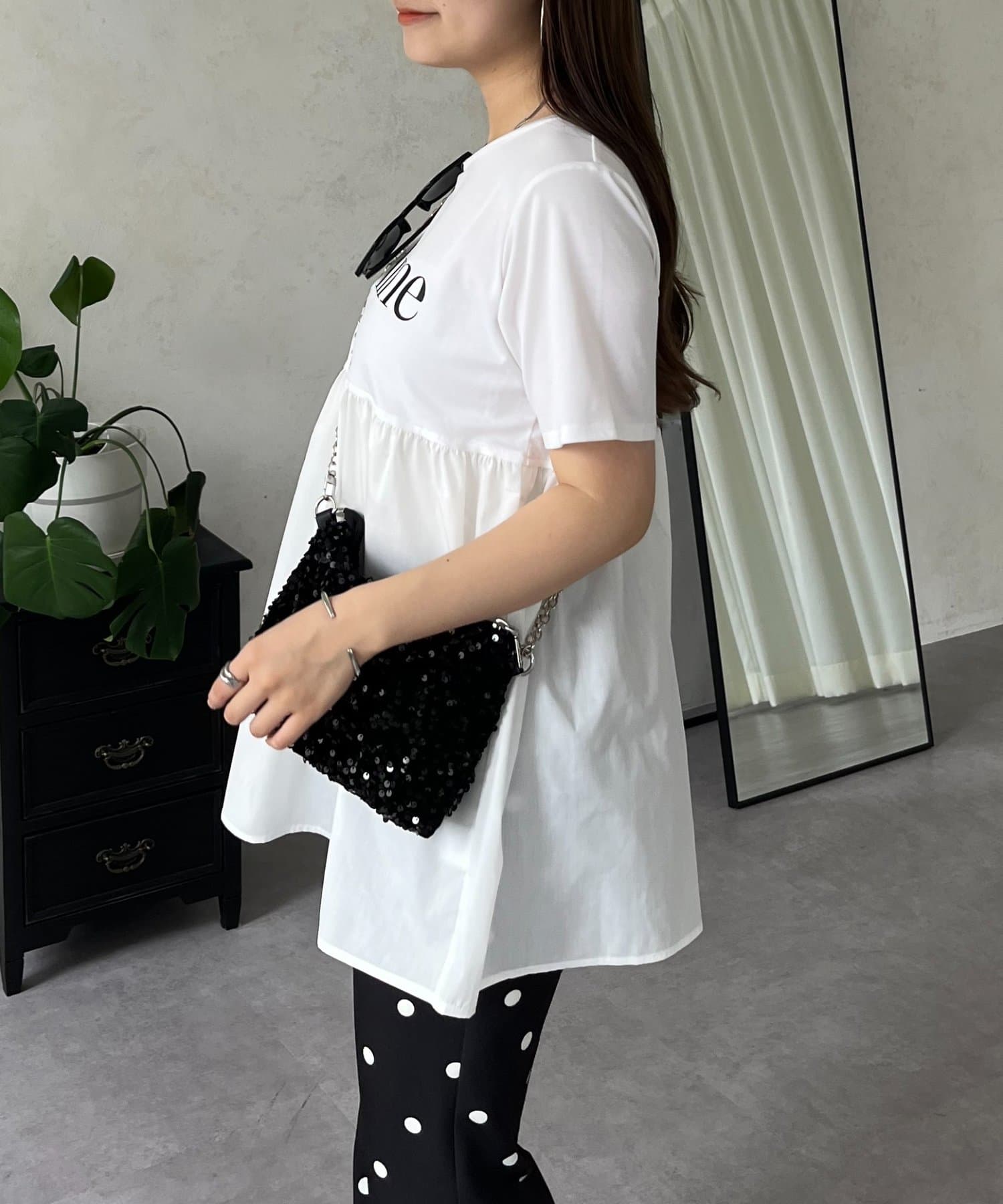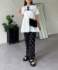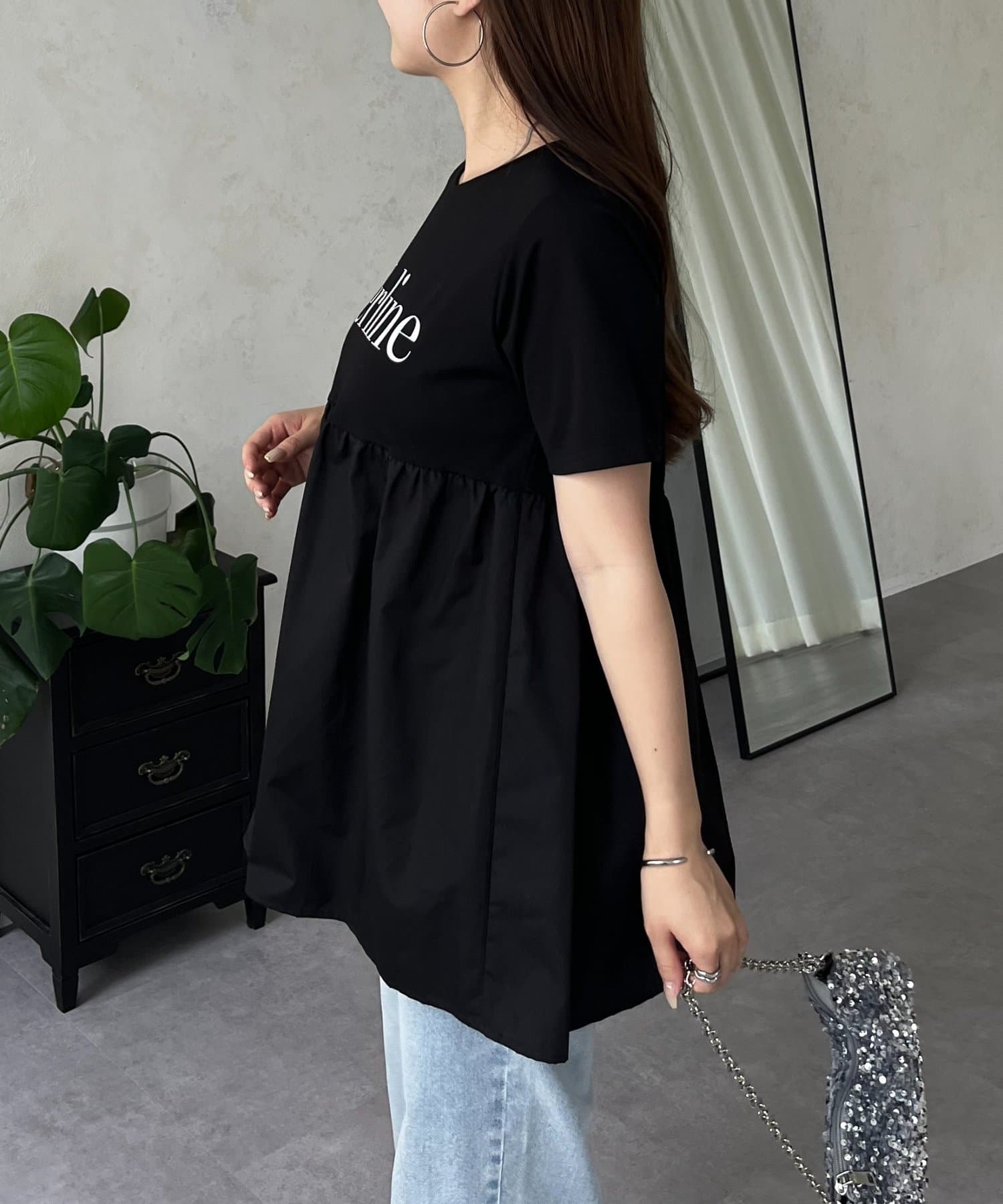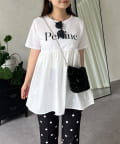 ●ロゴTシャツに裾が付いた1枚でお洒落見えと