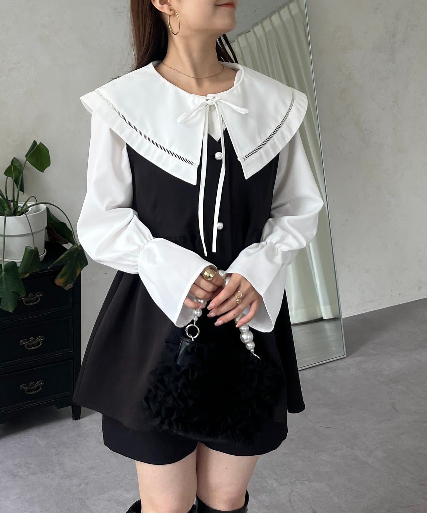 ブラウス/レイヤード/着回し/大人かわいい/ビッグ襟
