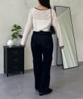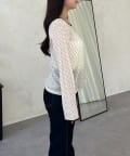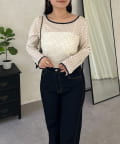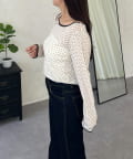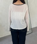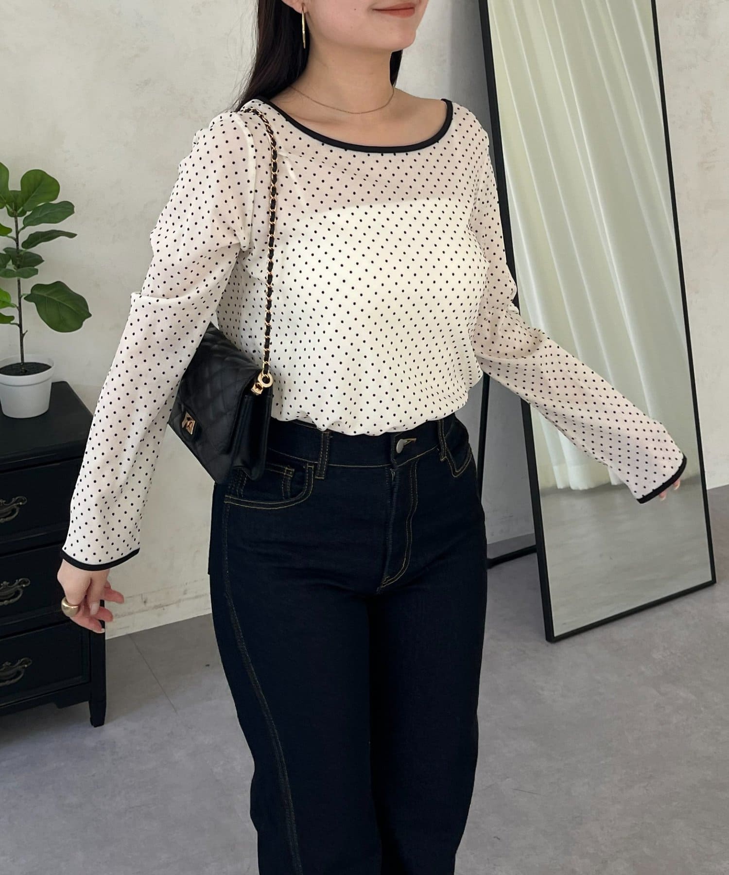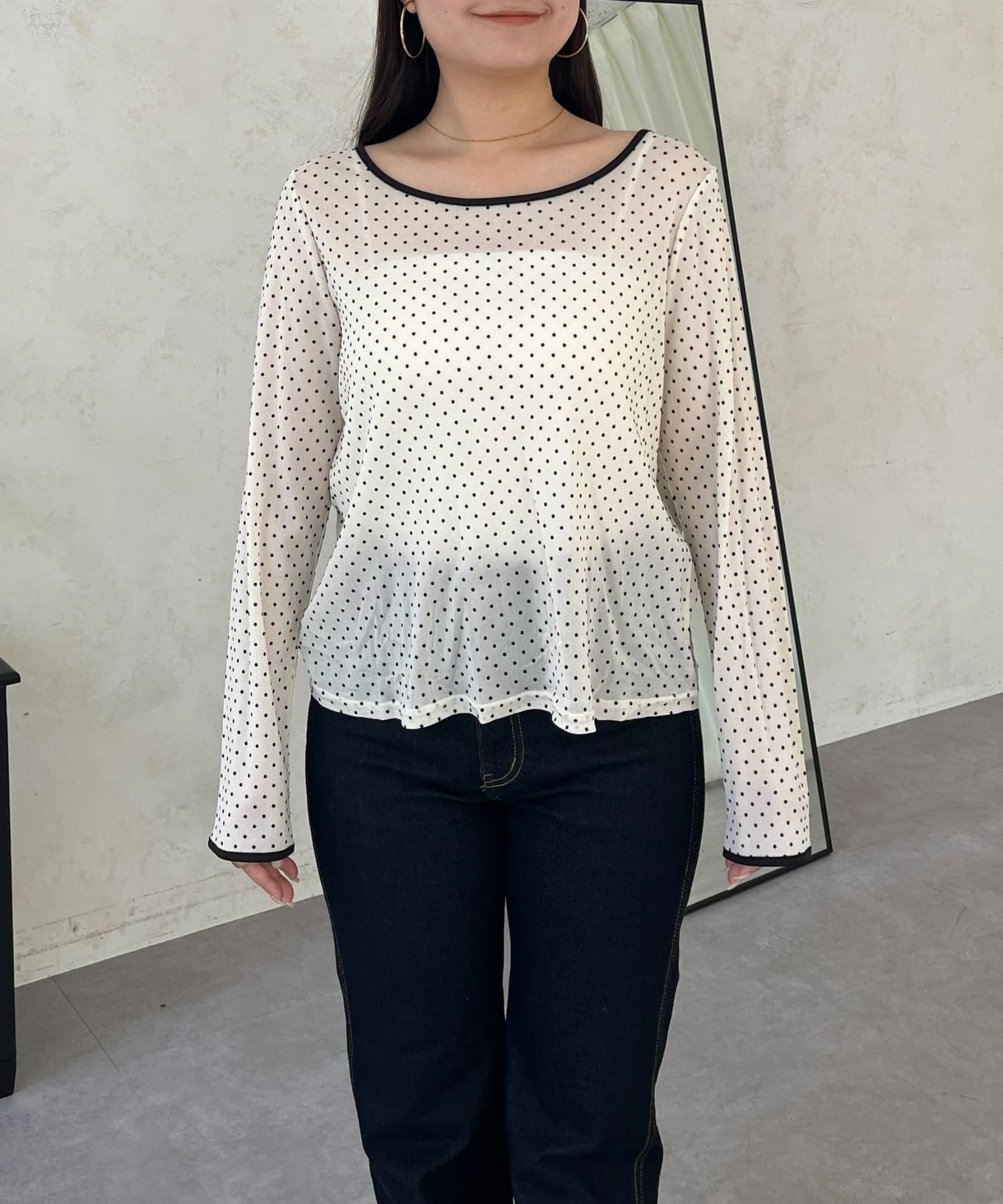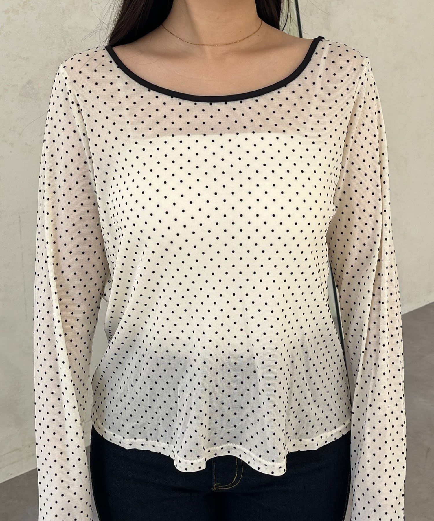 フロッキードットボートネックシアートップス