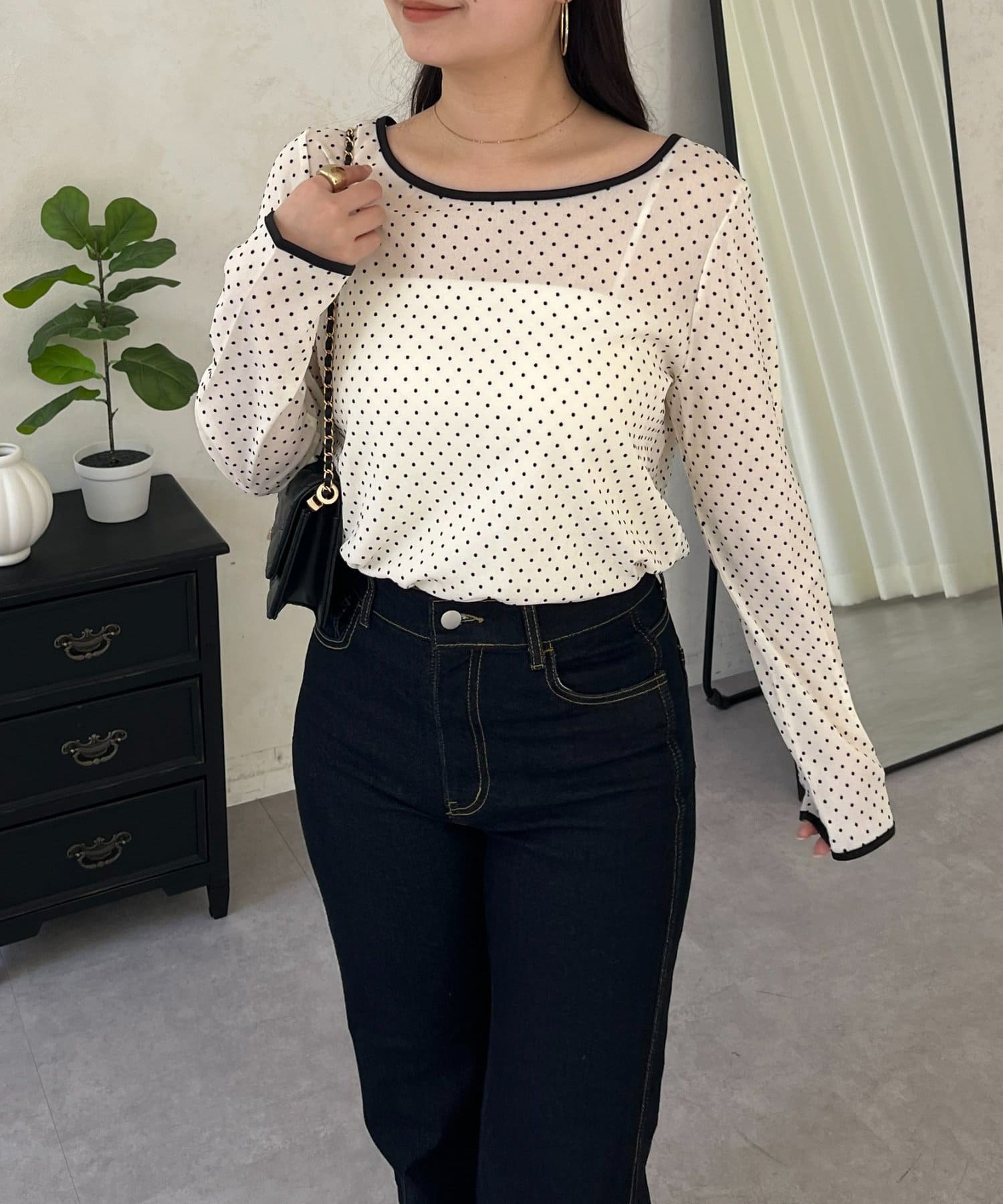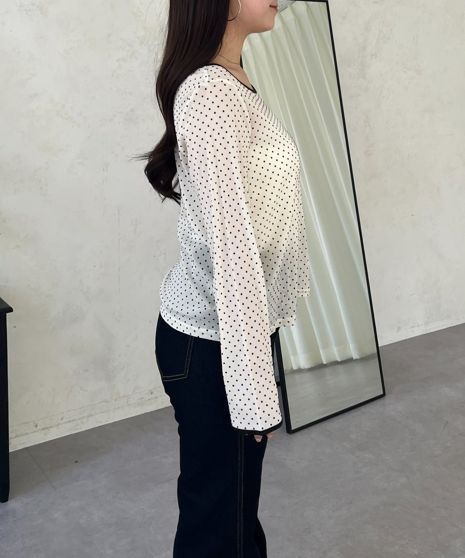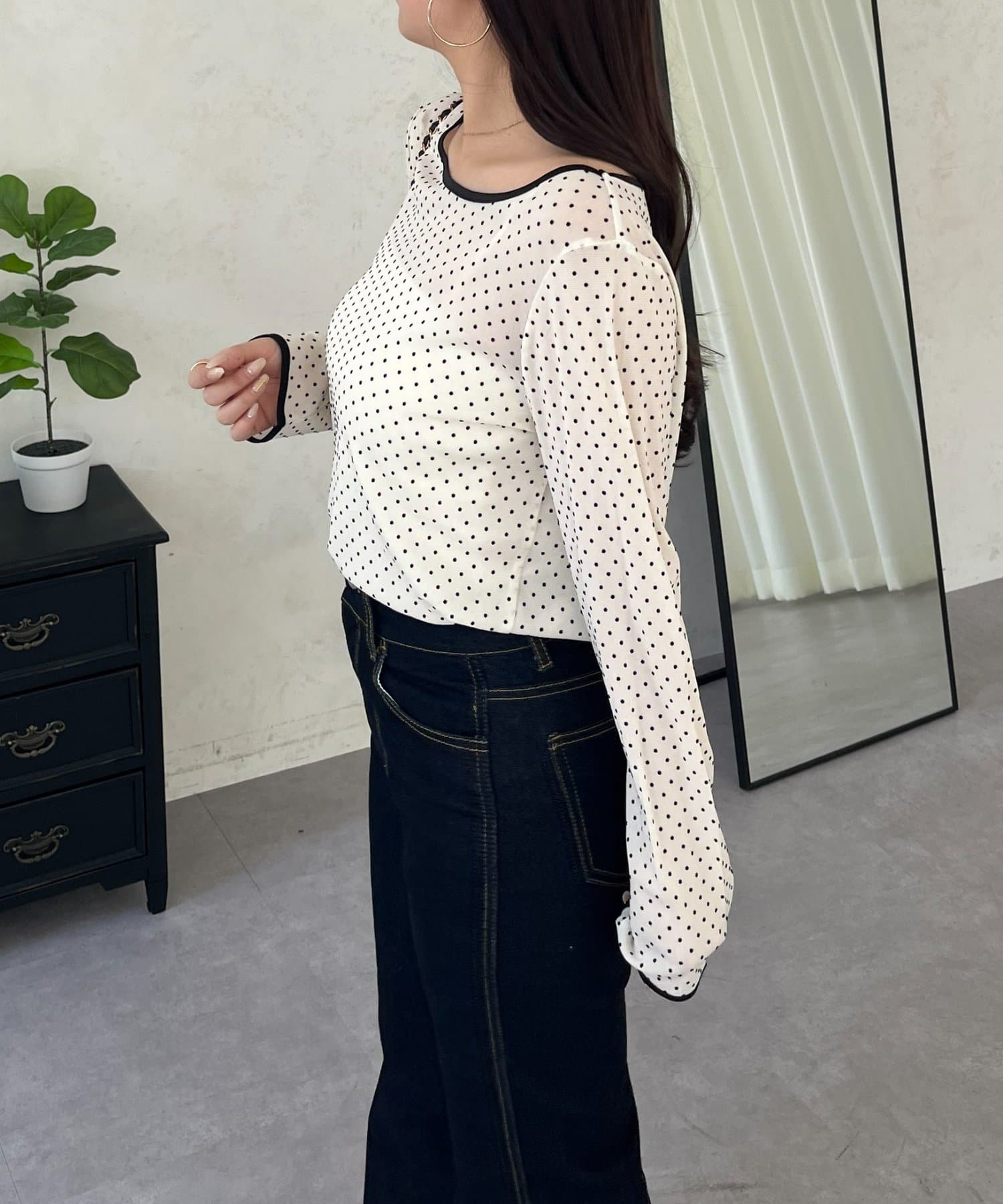 コーデのアクセントになるドットシアートップス