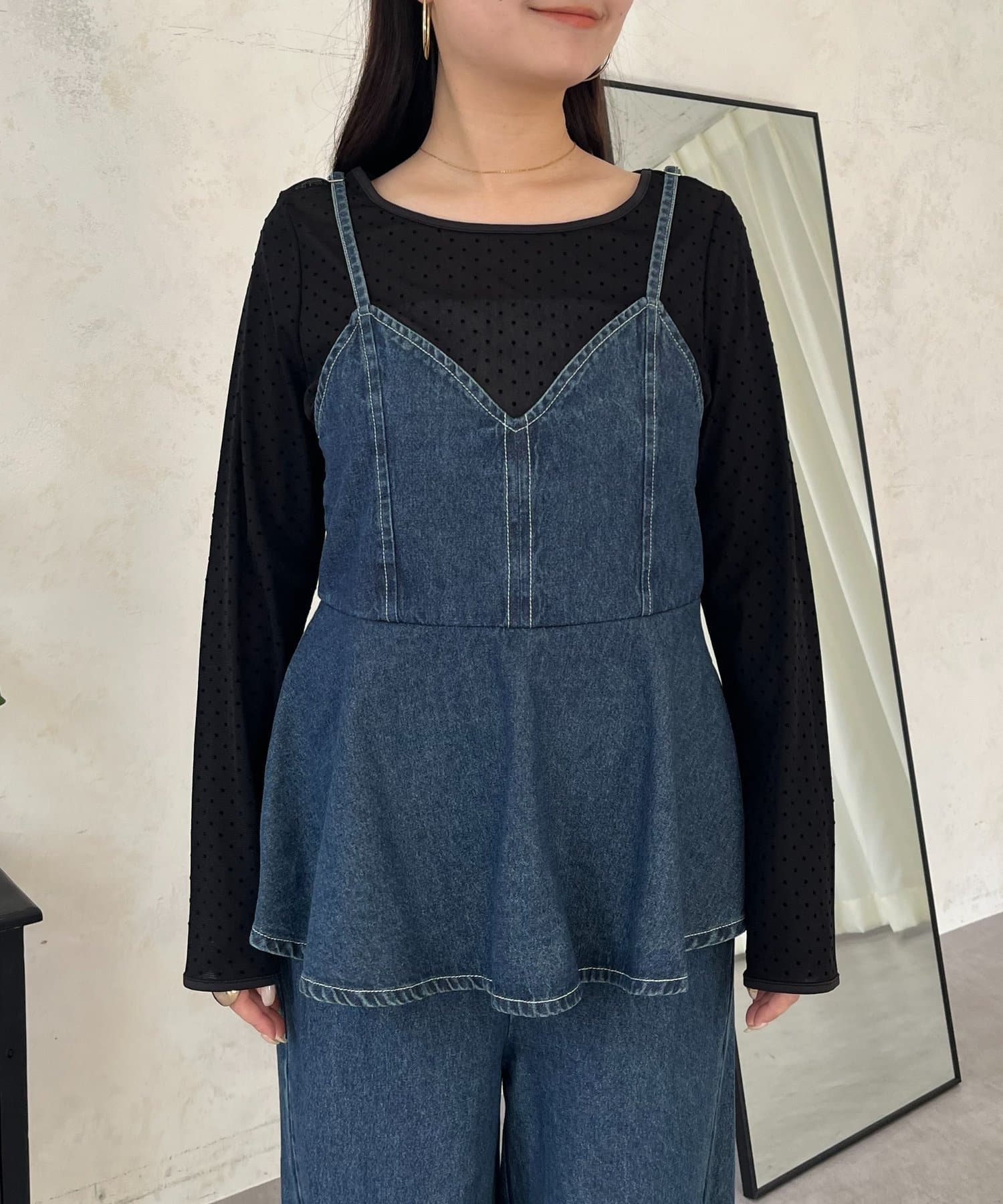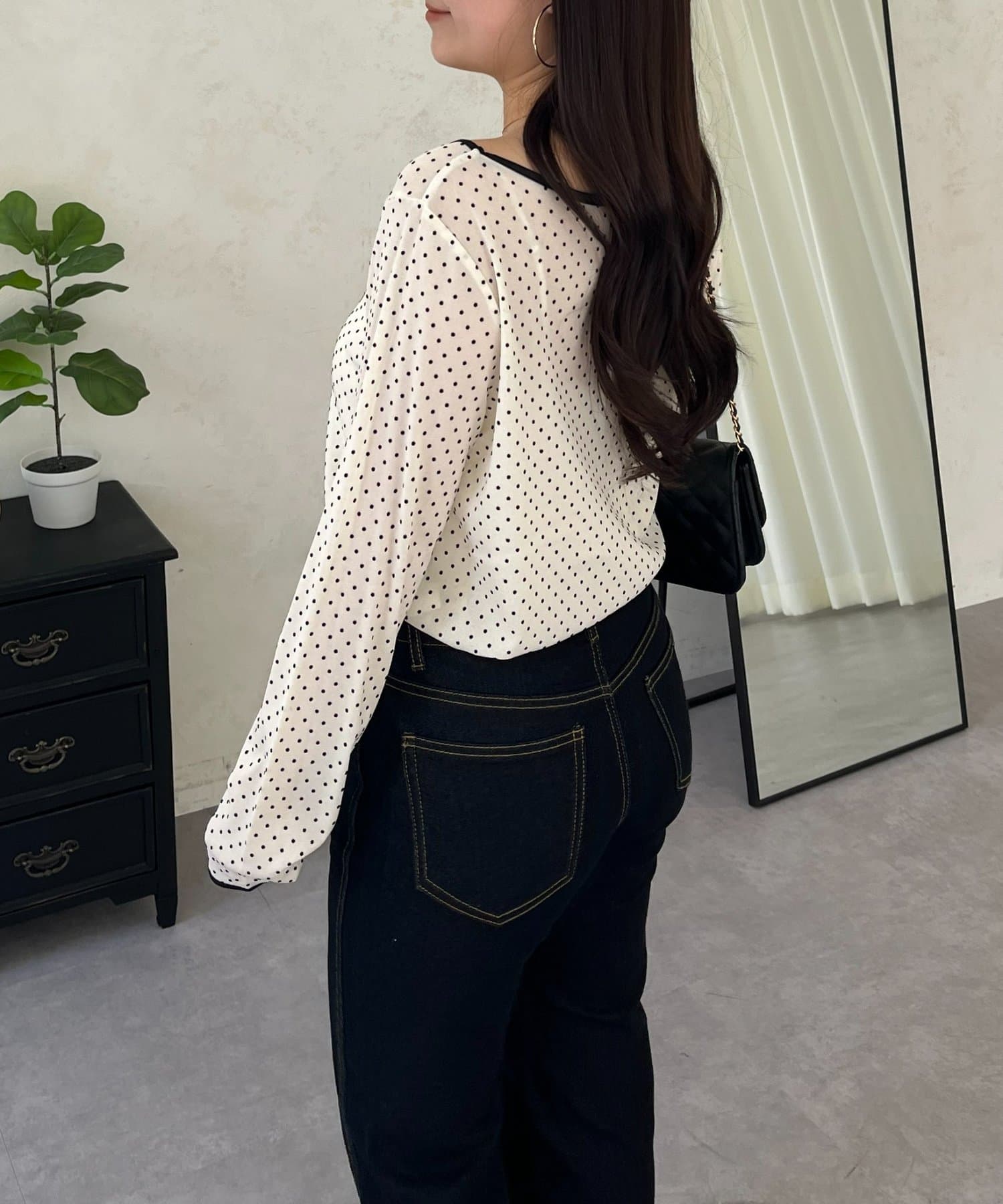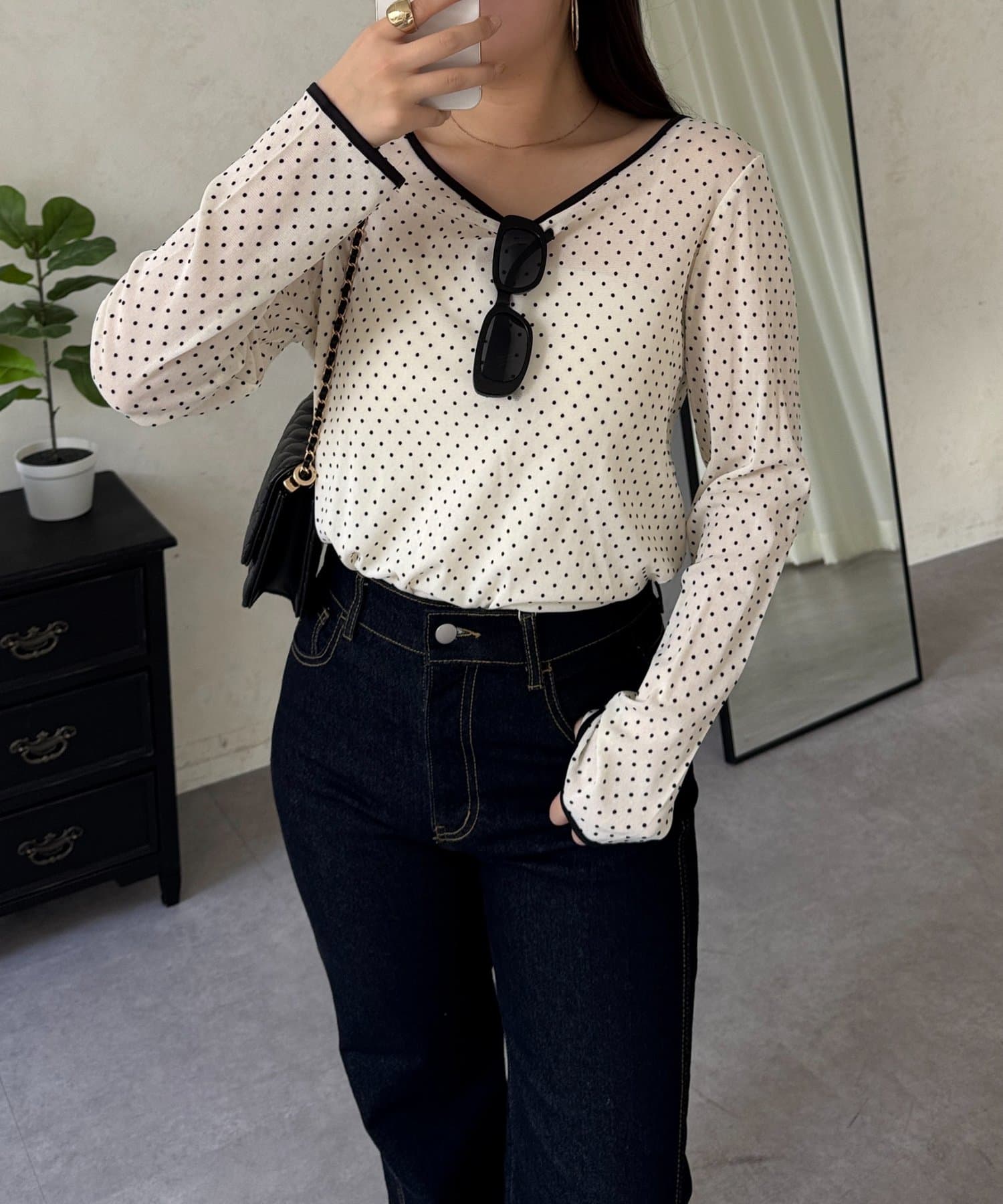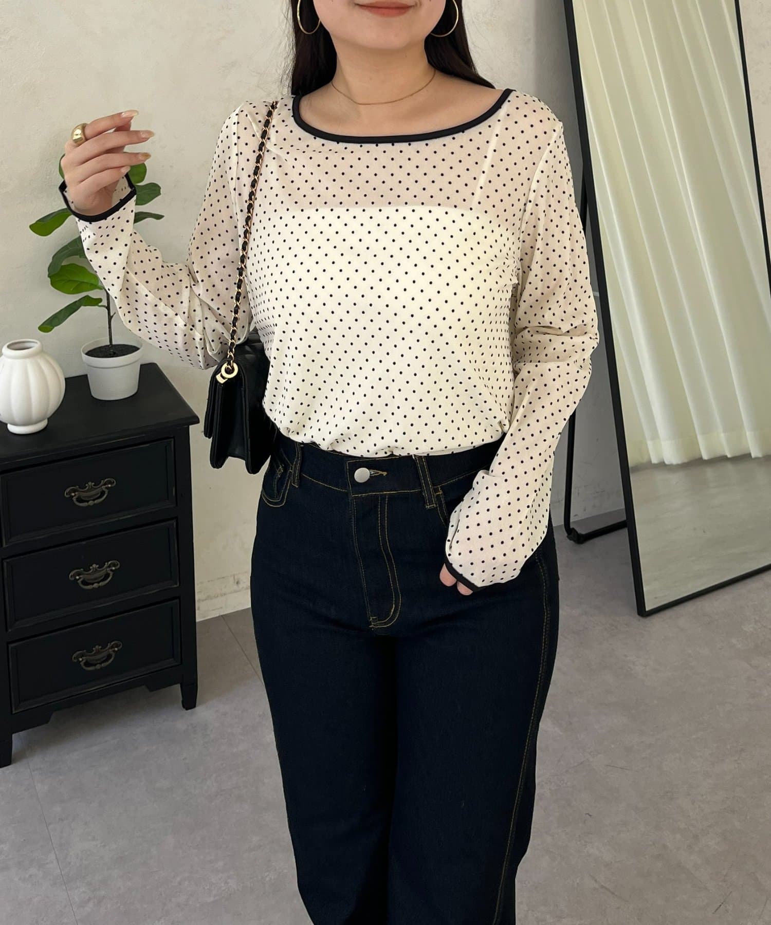 コーデのアクセントになるドットシアートップス