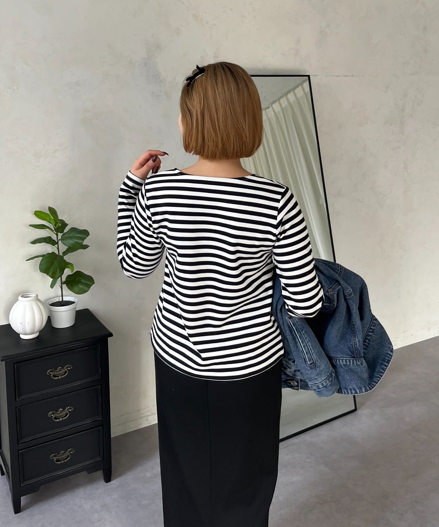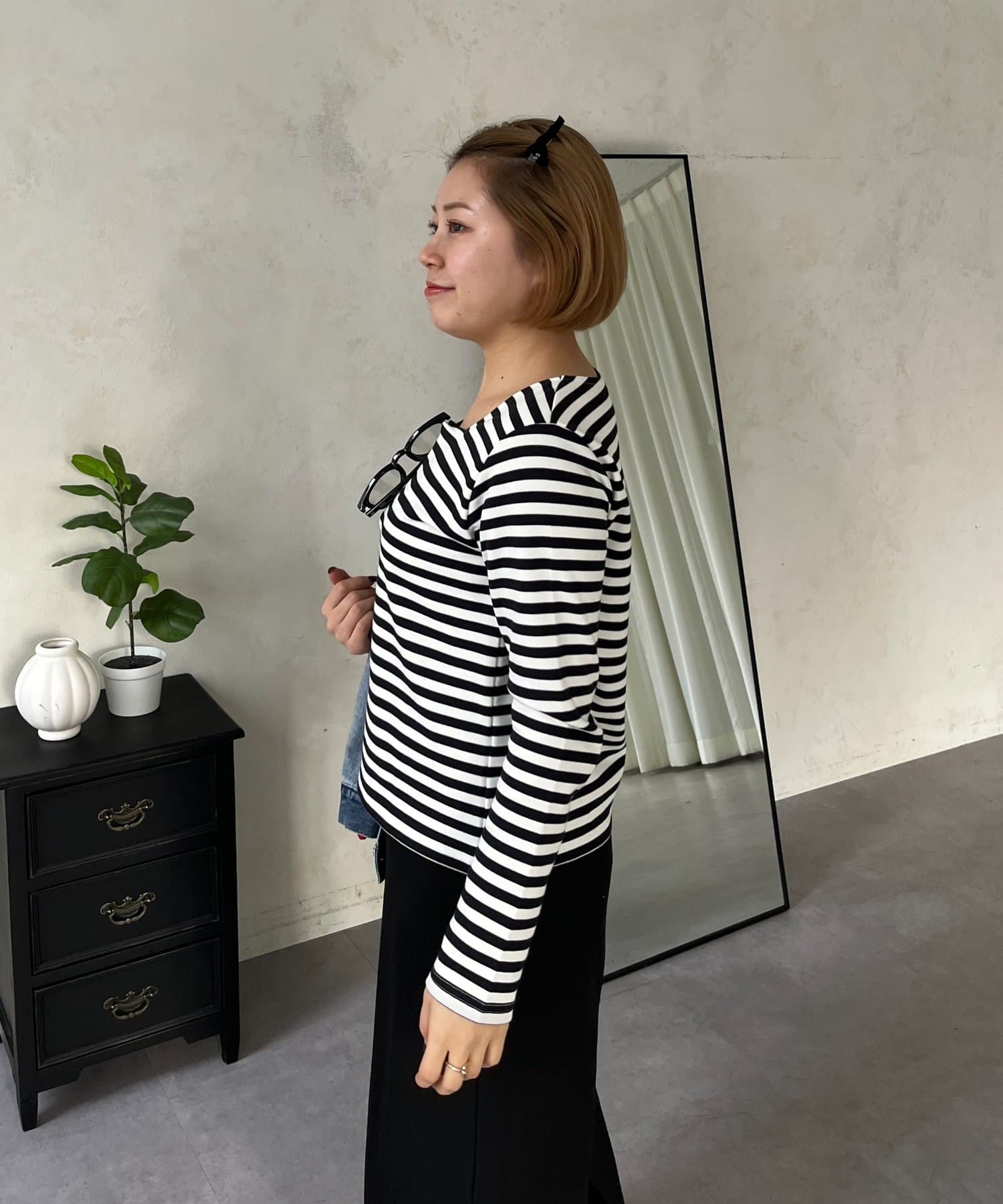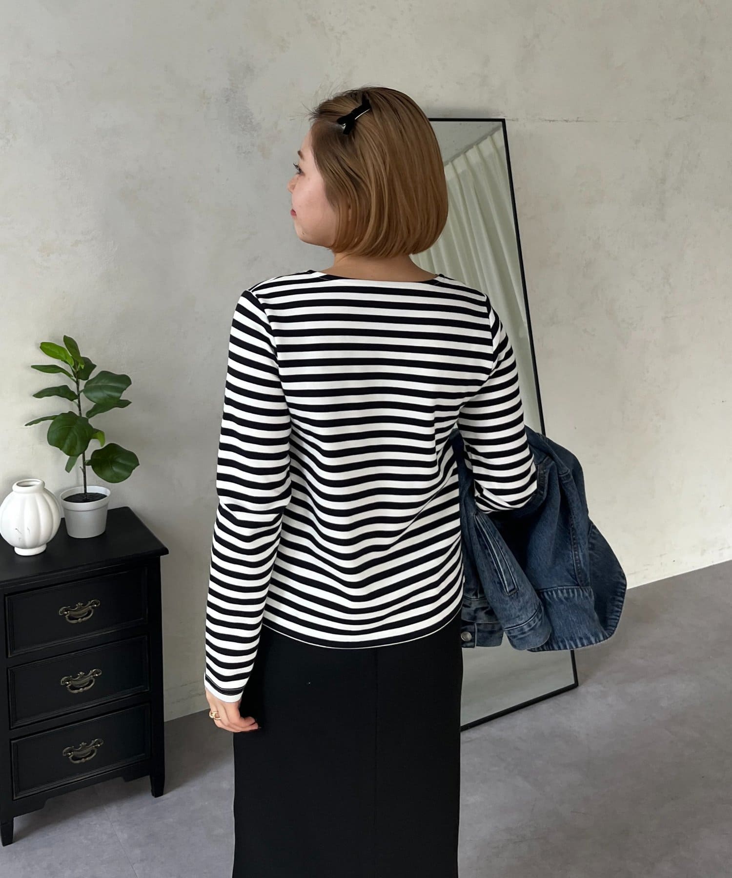 ●スクエアネックでベーシックになりがちなロンTも一気にこなれ感◎